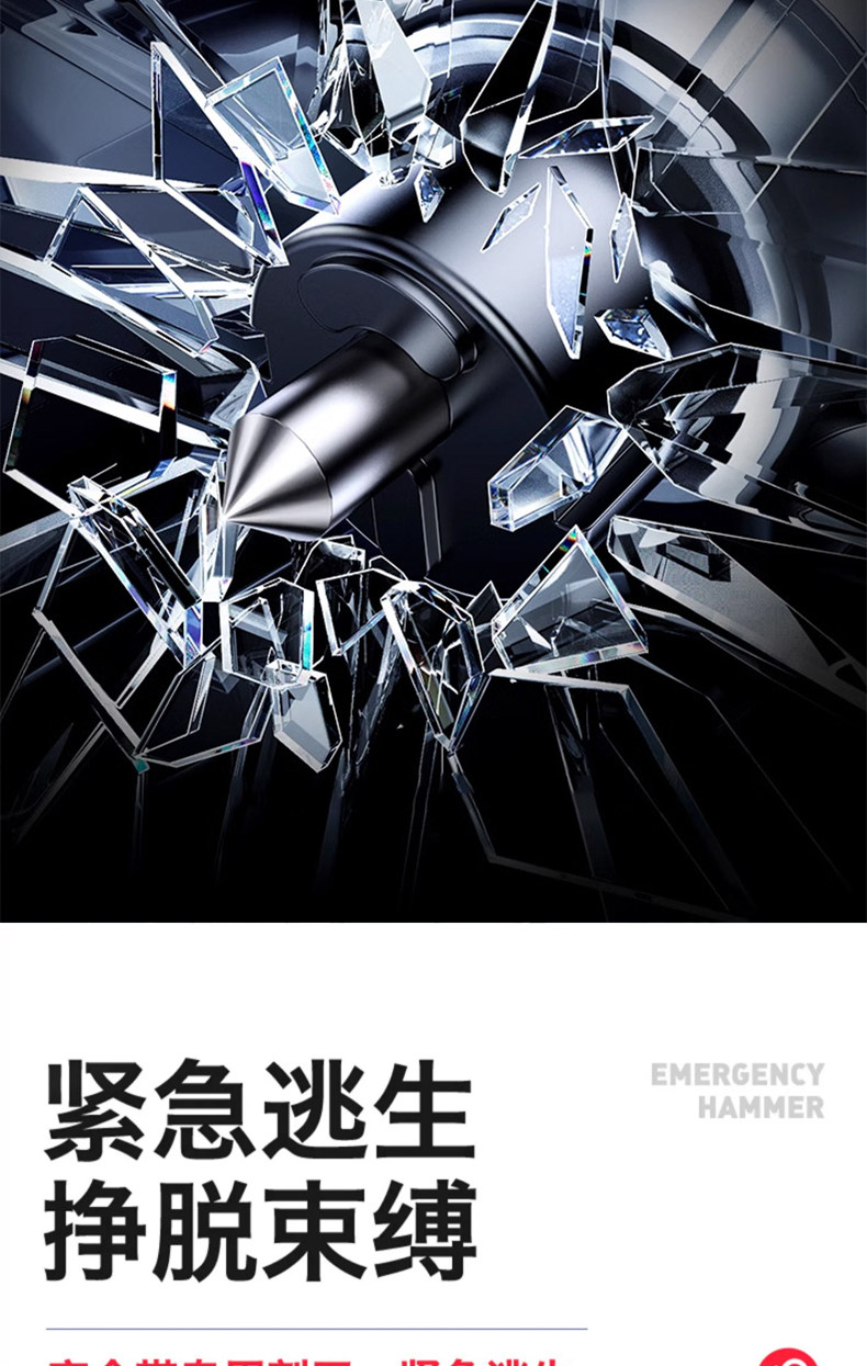 Rompeventanas de automóvil con cortador, vidrio de ventana de automóvil, rompeventanas de automóvil multifuncional con aro salvavidas después de caer al agua, martillo rompeventanas