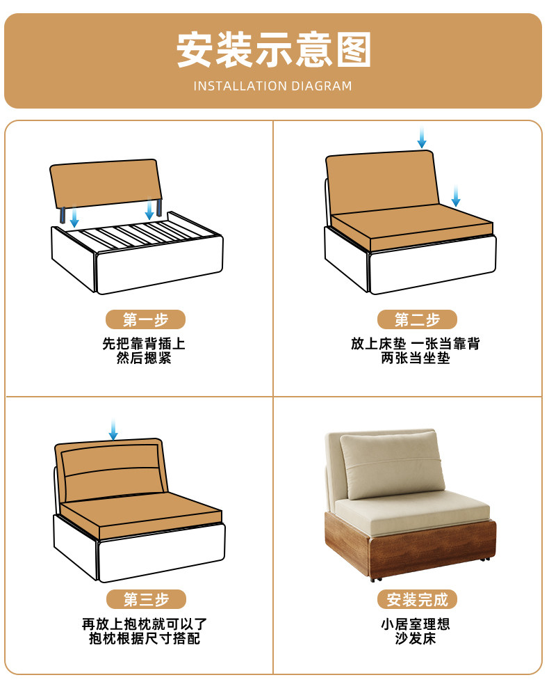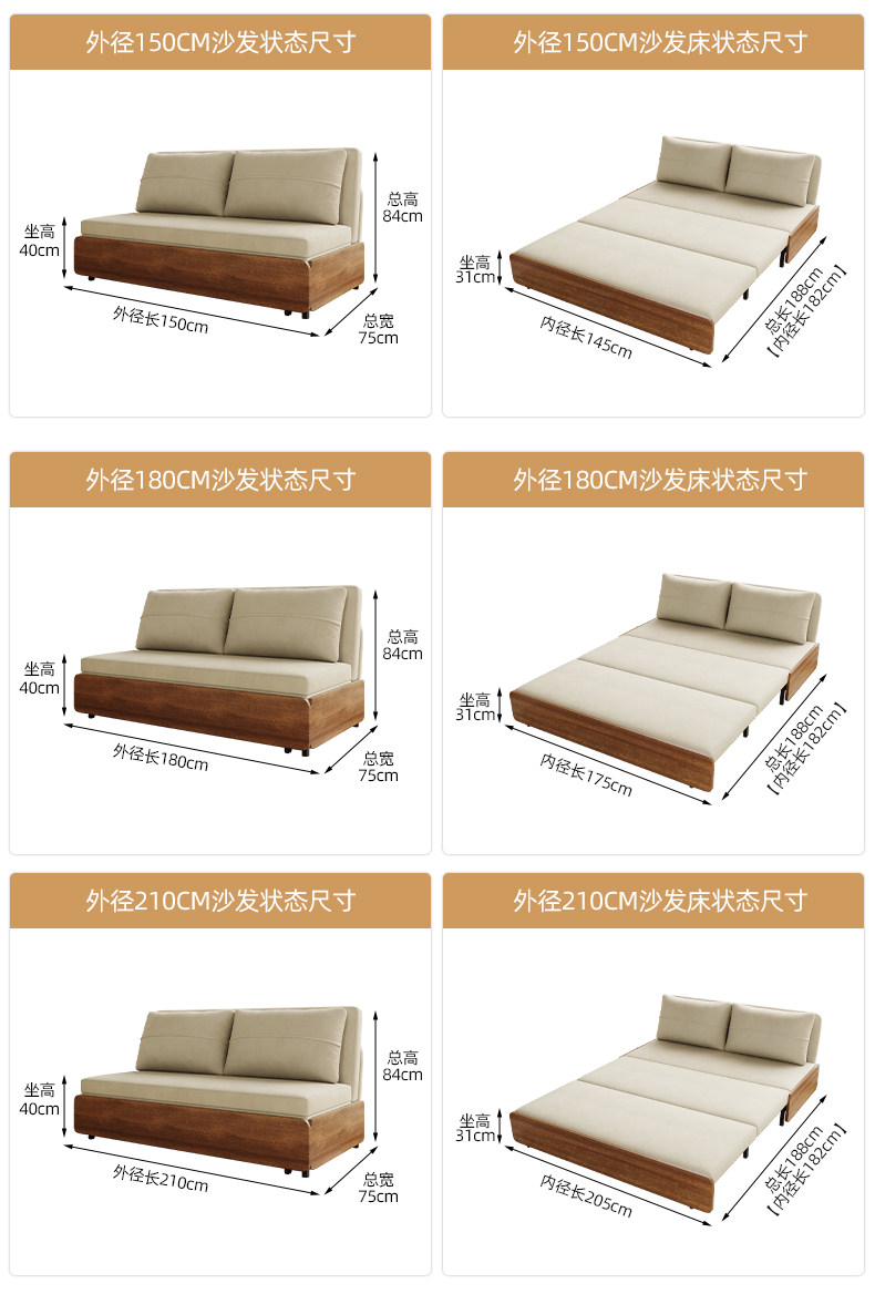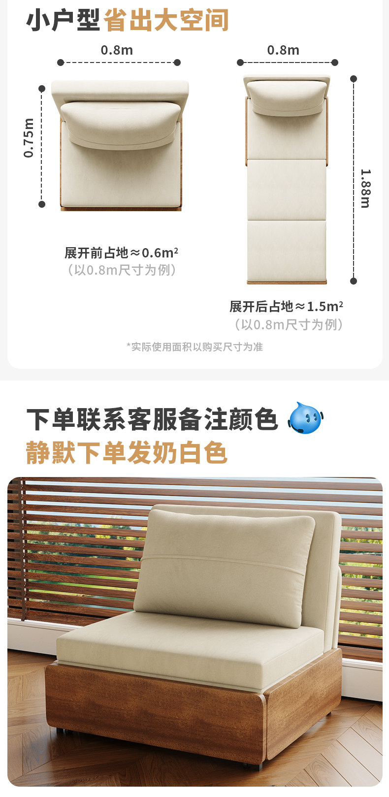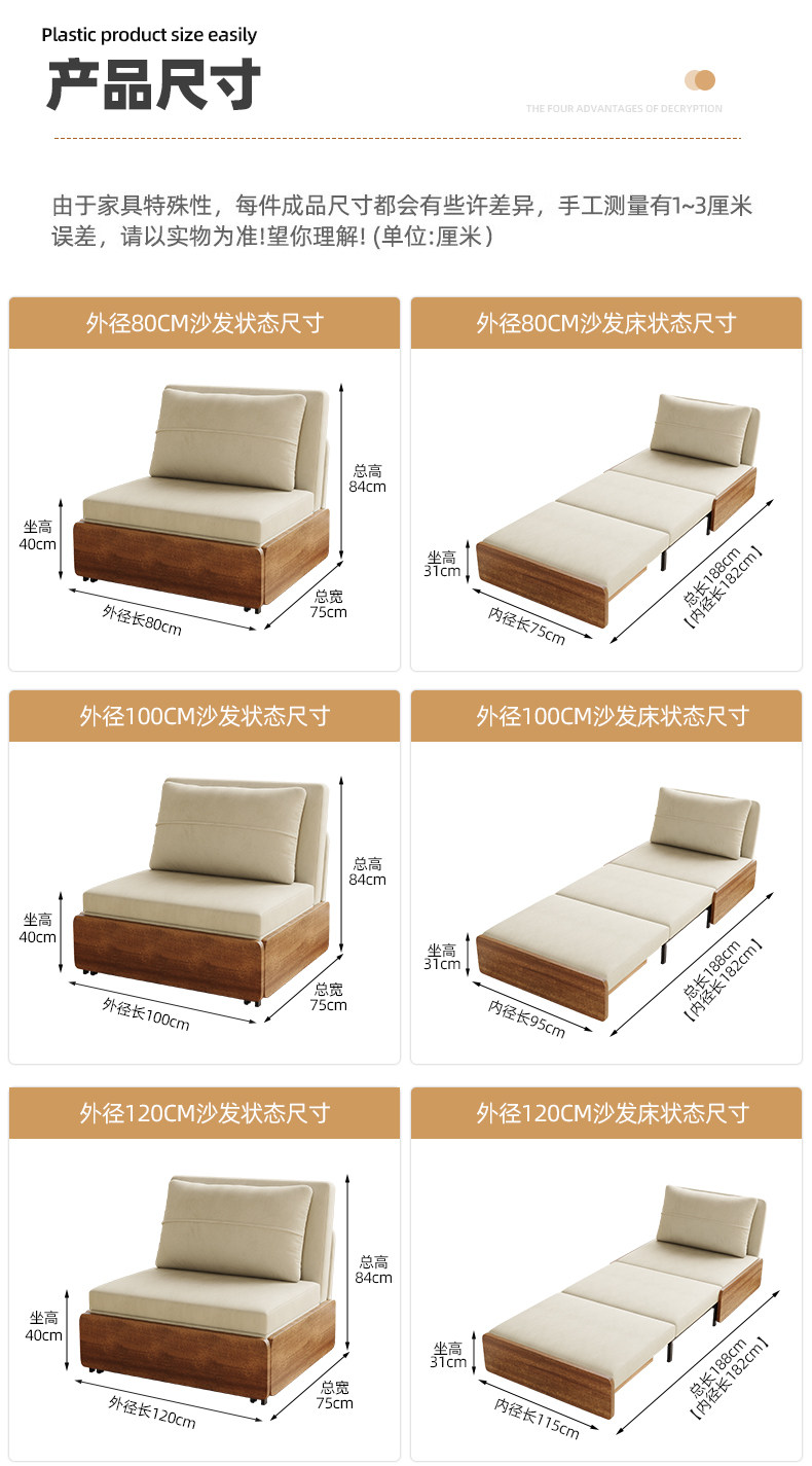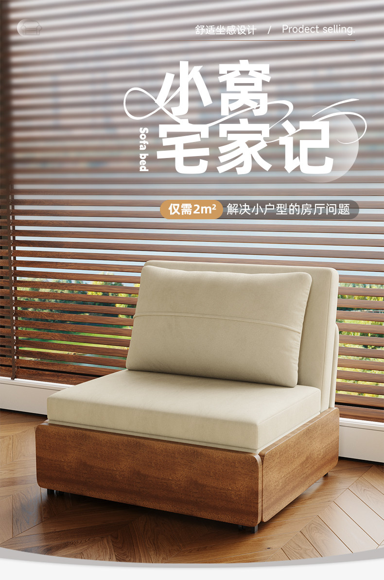 Kailaixing-sofá cama plegable individual, dos en uno, estilo antiguo, para sentarse y dormir, pequeño apartamento, sala de estar, deslizante