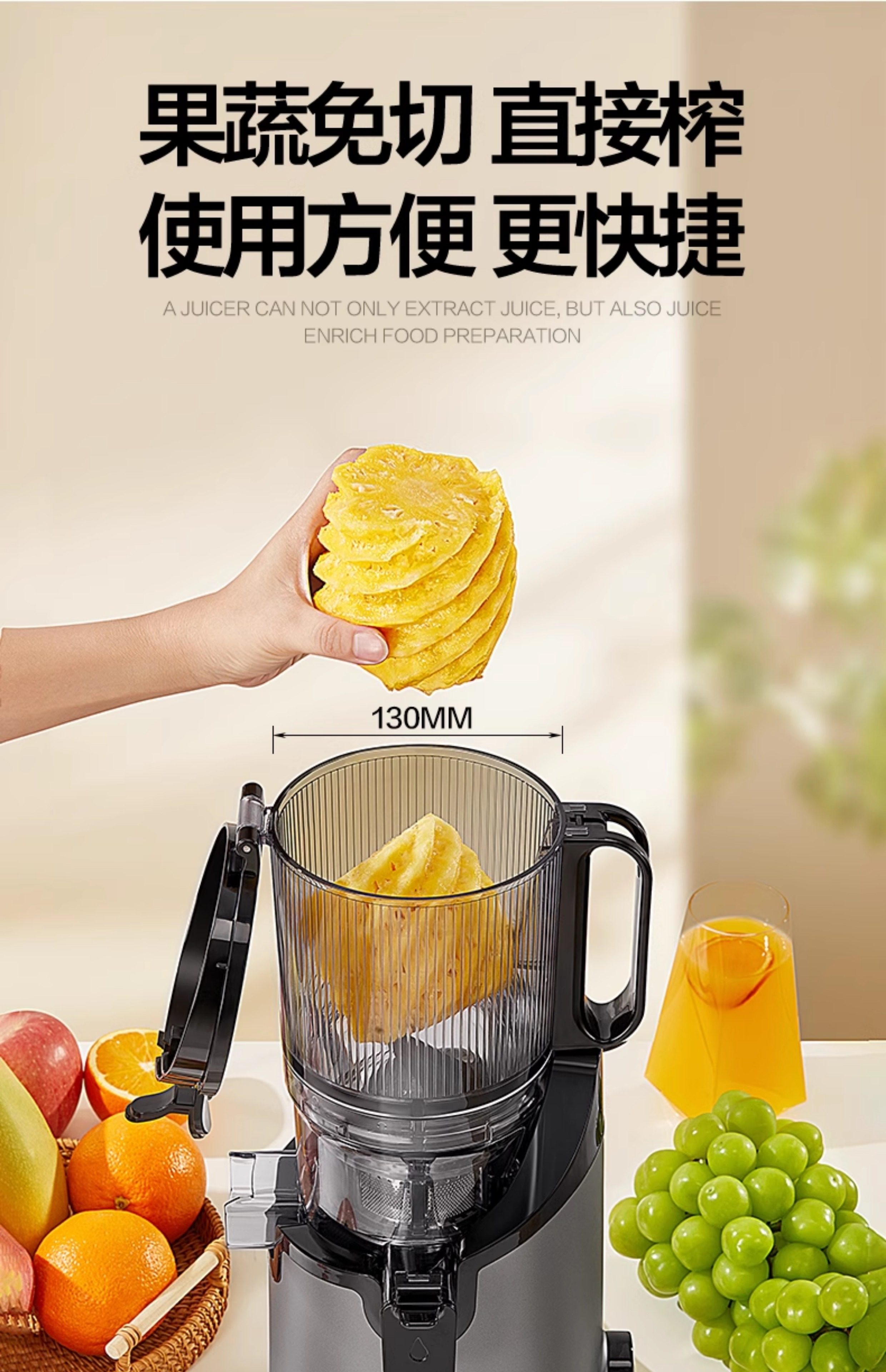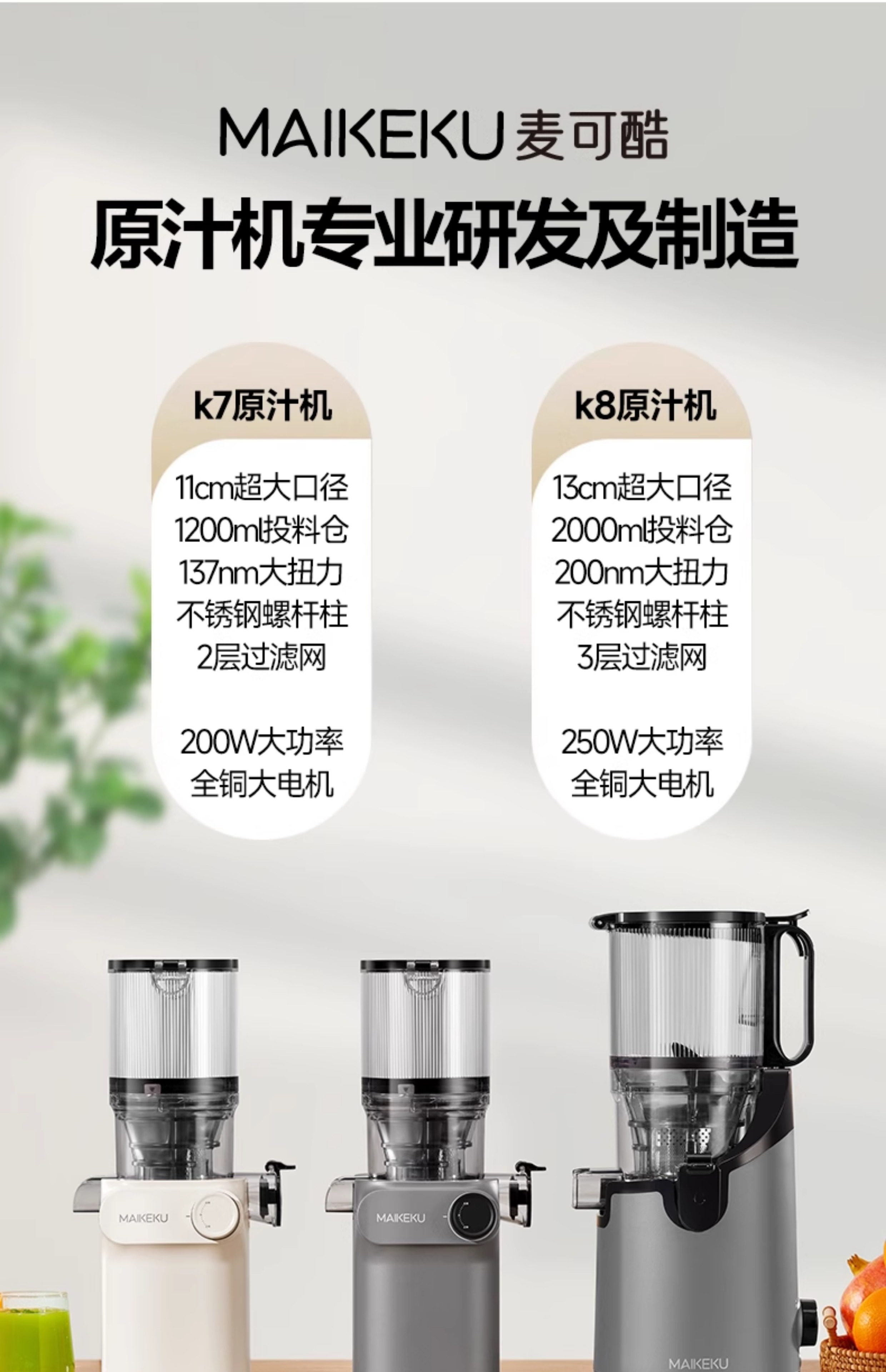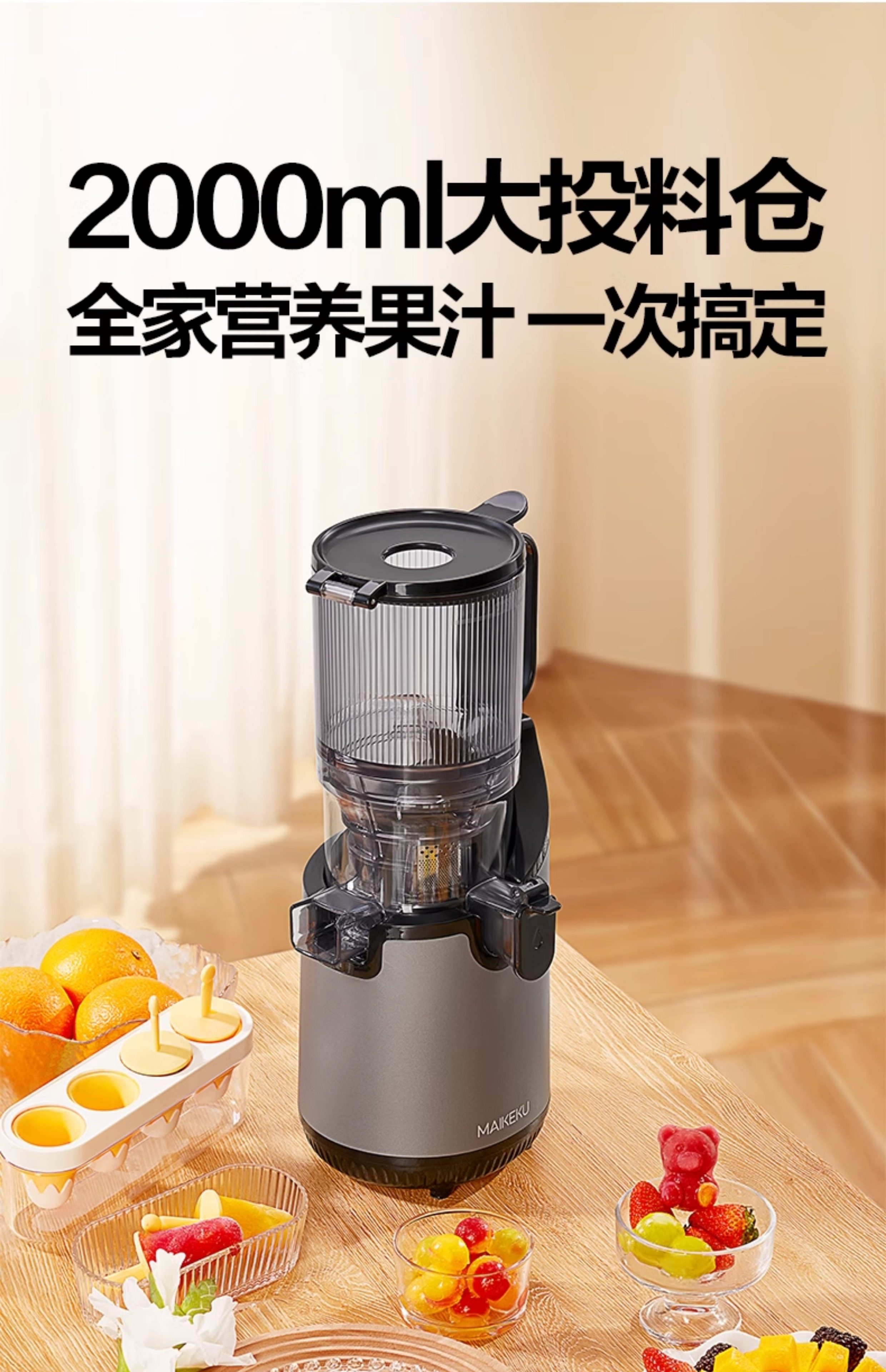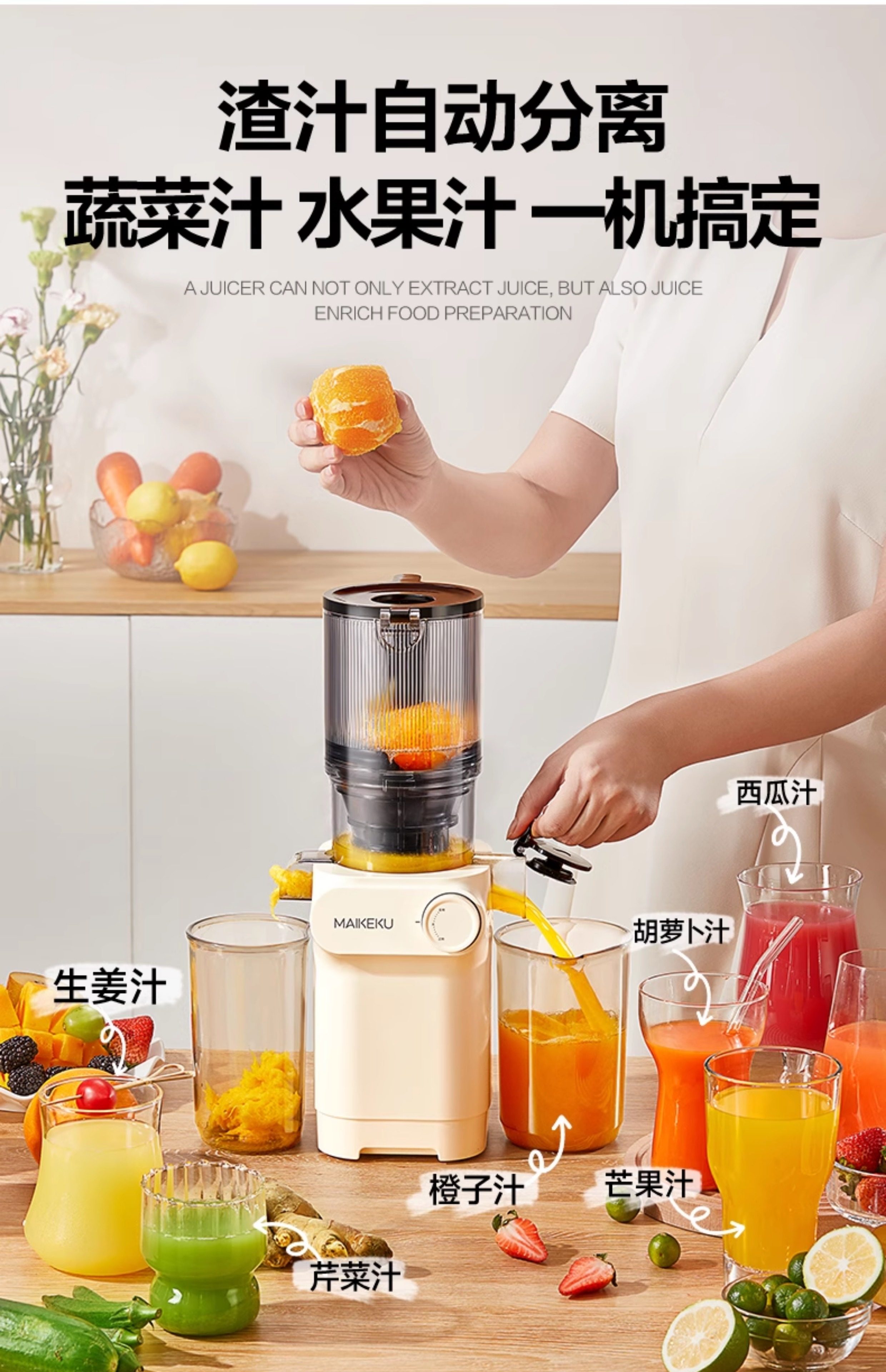 麦可酷榨汁机汁渣分离原汁机全自动家用渣汁大口径免切果汁榨英规