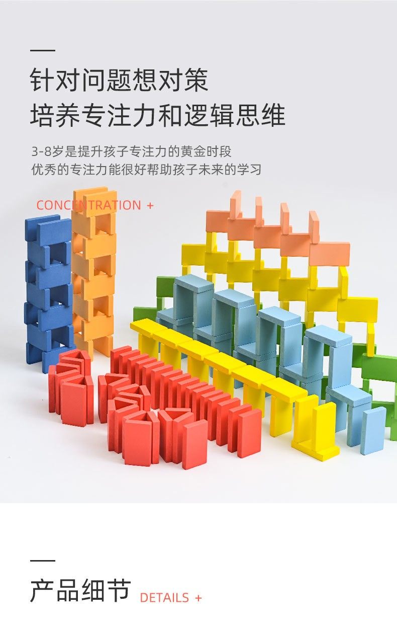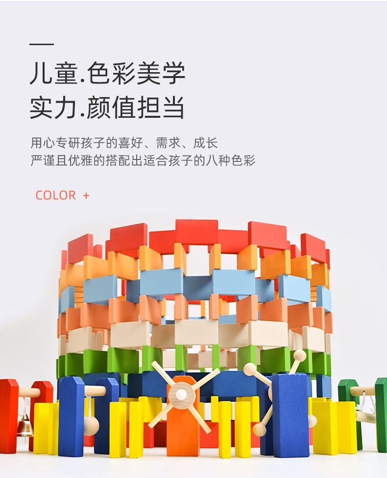 木质多米诺骨牌彩色积木比赛机关专注力训练早教儿童益智玩具批发