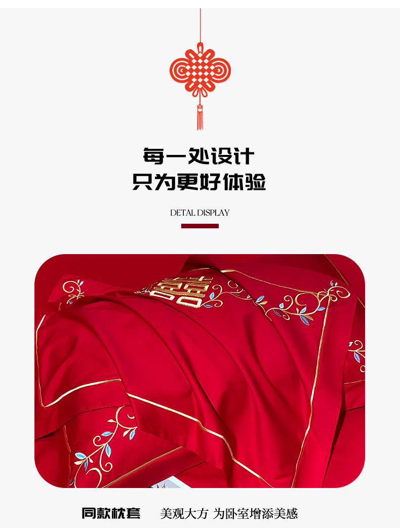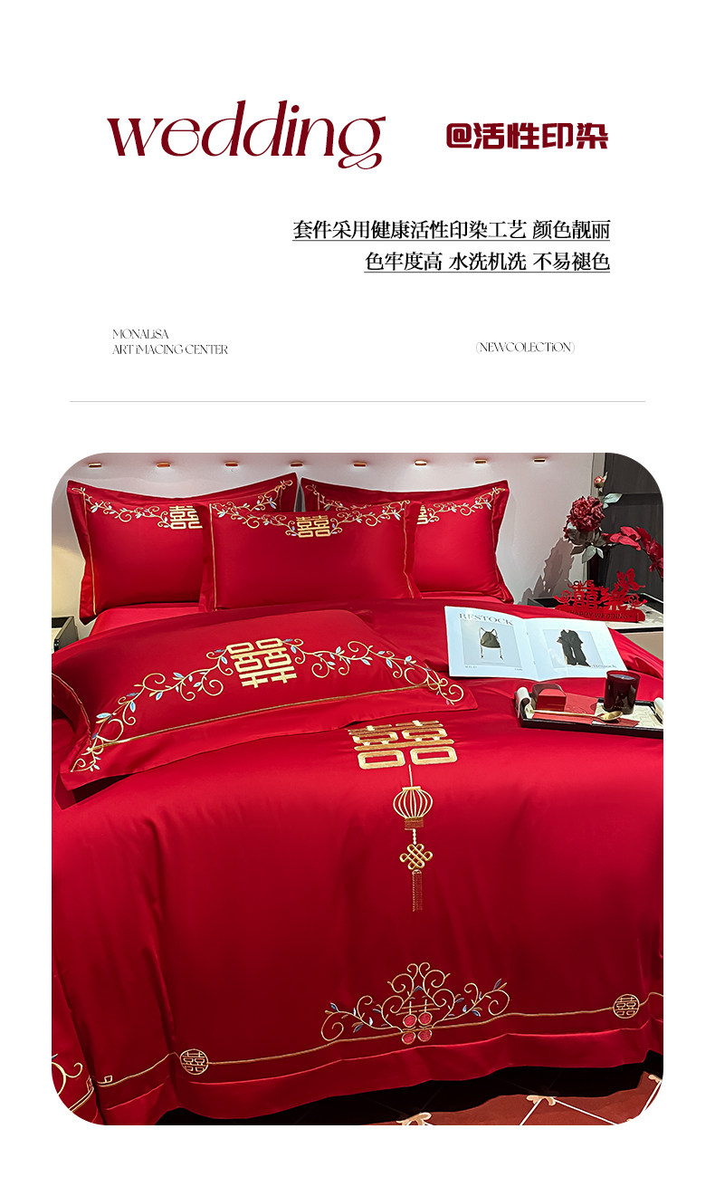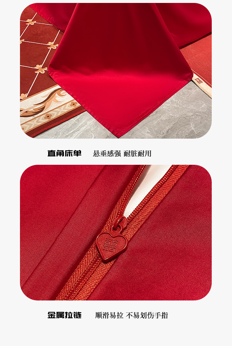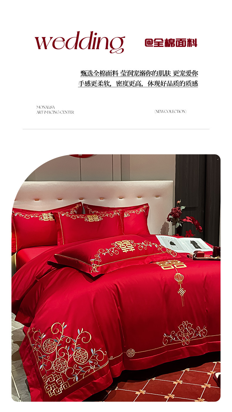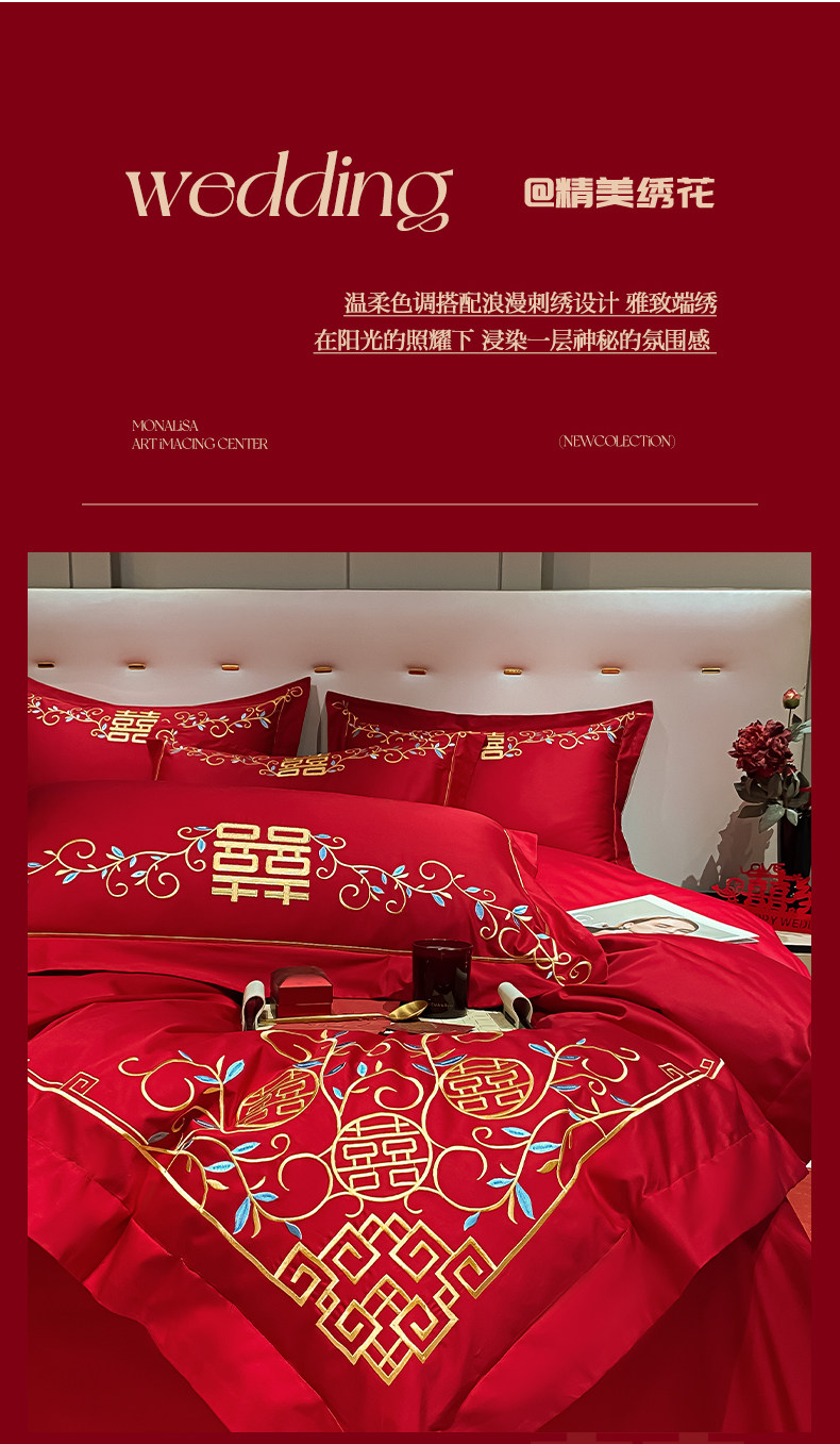 Juego de cuatro piezas de ropa de cama de algodón puro rojo para boda, edredón de boda de algodón de alta gama, sábanas de cubierta de edredón de boda