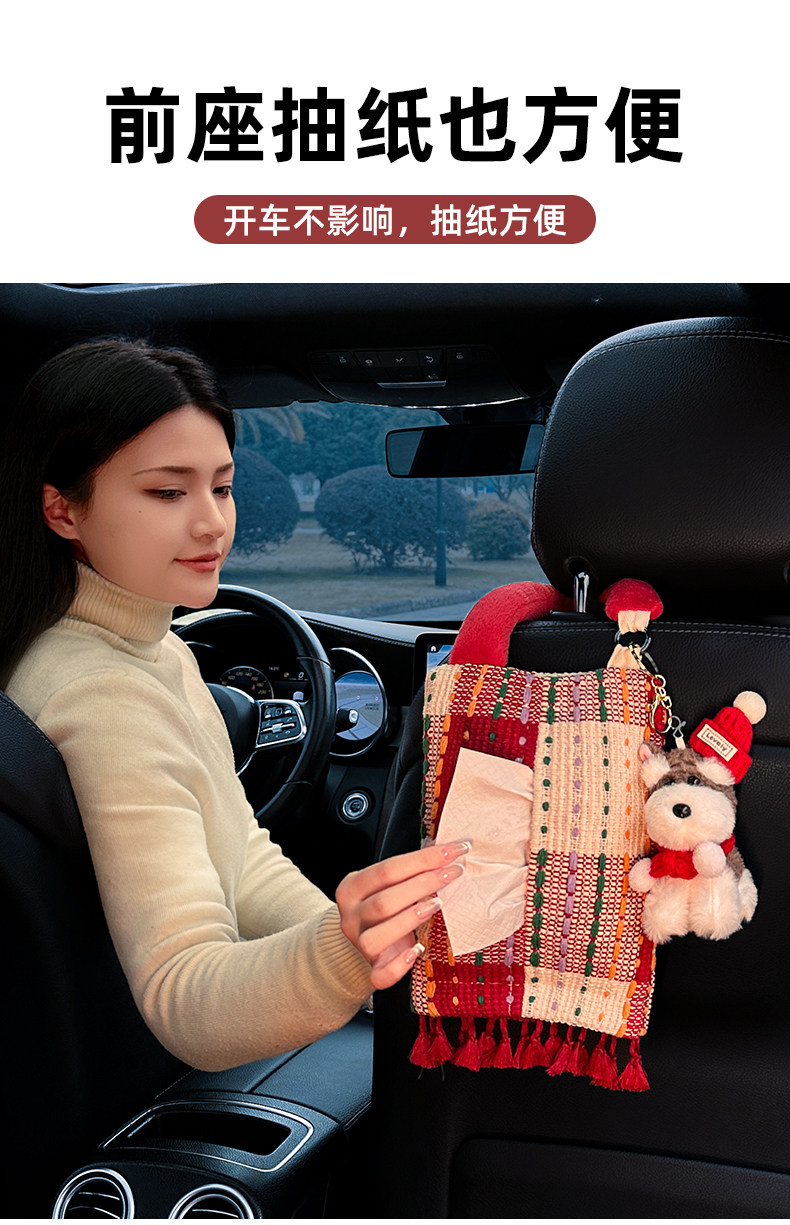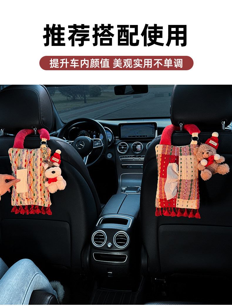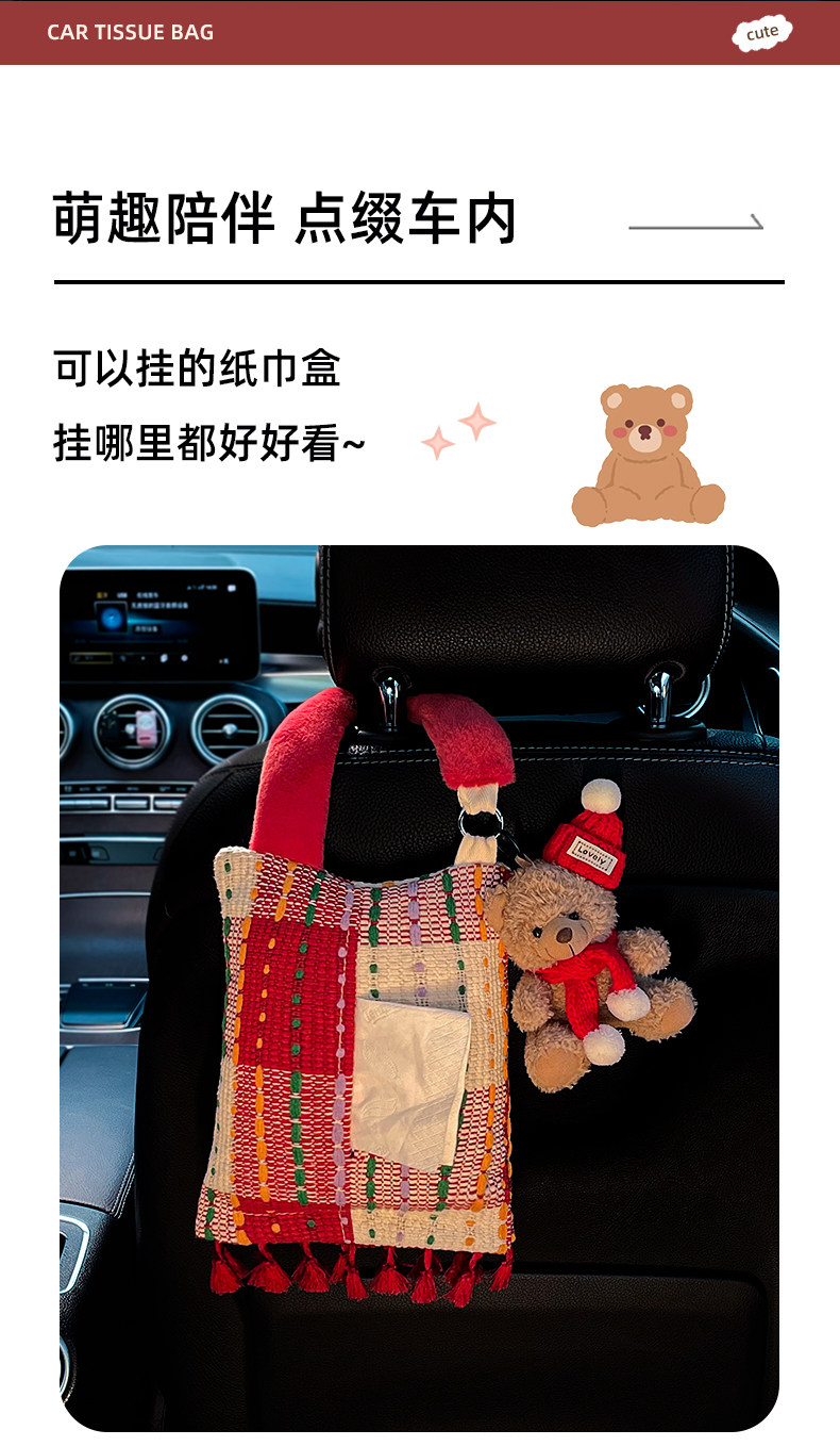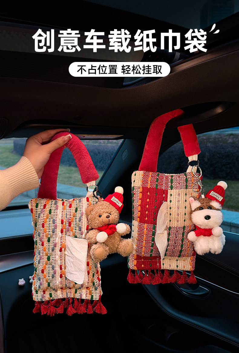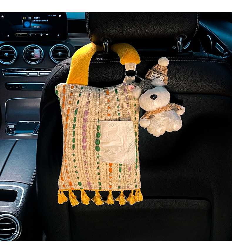 Creative Car Tissue Box, Hanging Tissue Box, High-End Car Tissue Hanging Bag, Cute Car Interior Decoration Ornaments