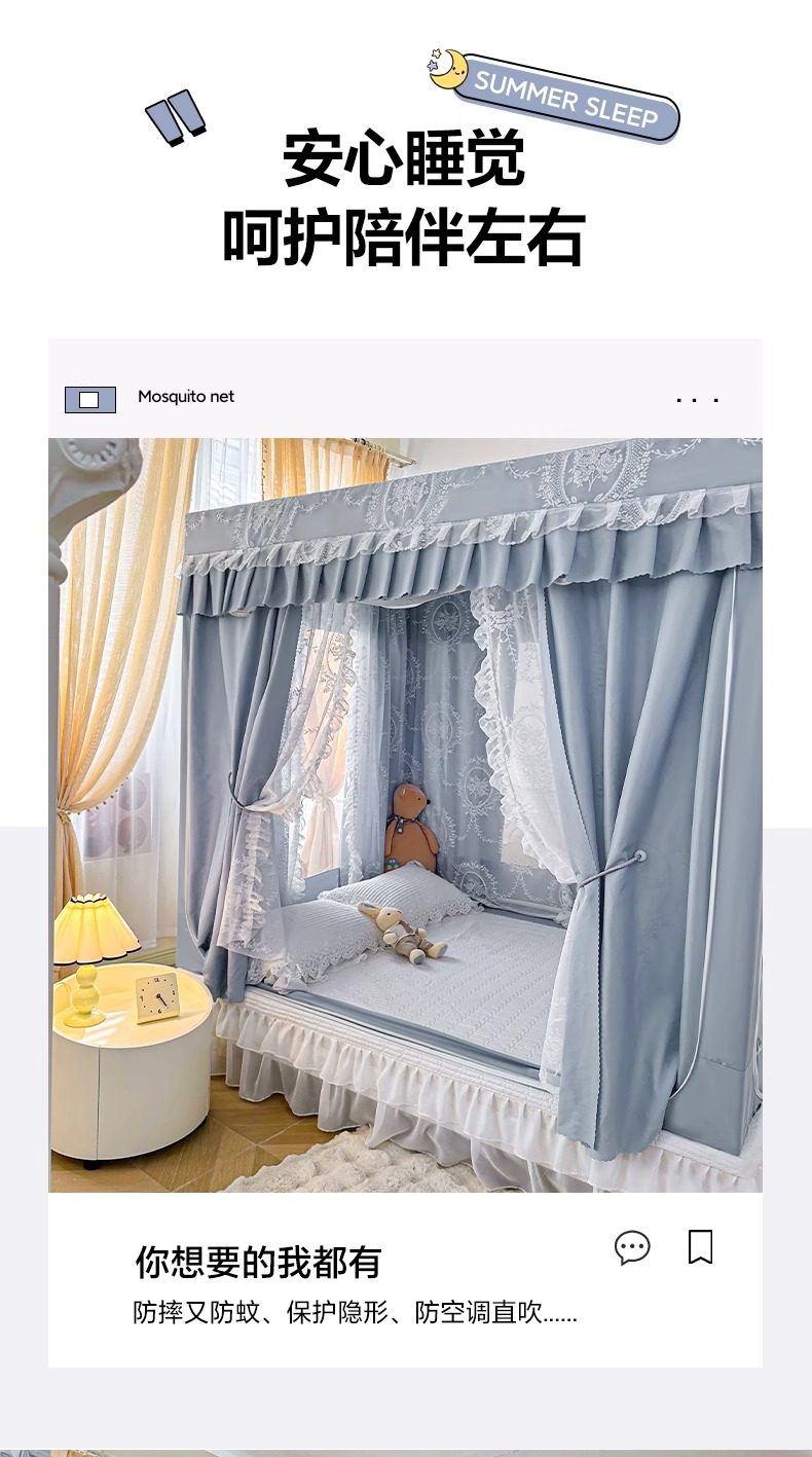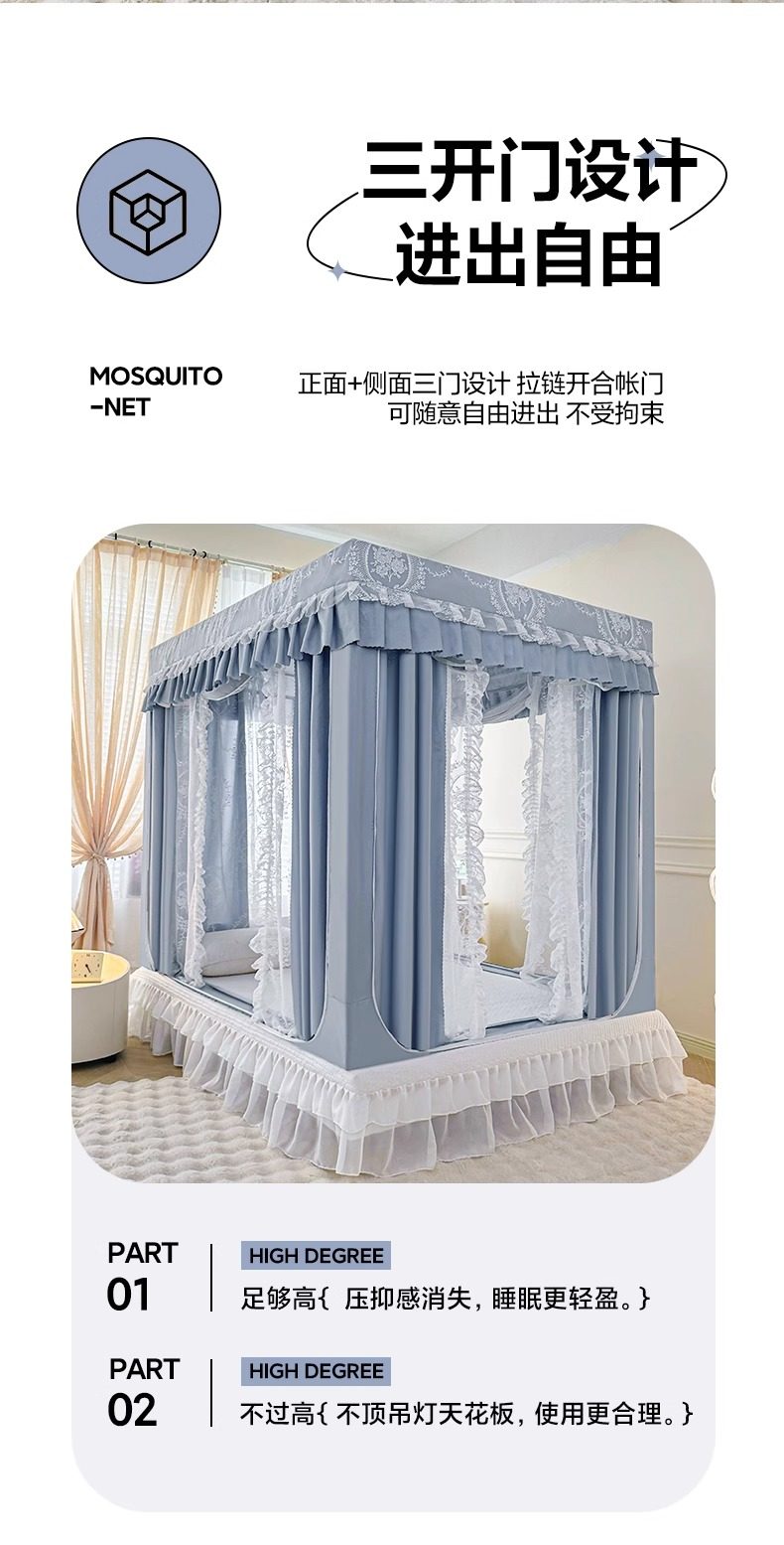Cat People's Light-Blocking Anti-Fall Mosquito Net 2025 New Model Bed Curtain for Home Bedroom Baby and Child Anti-Fall Bed French-Style Tent