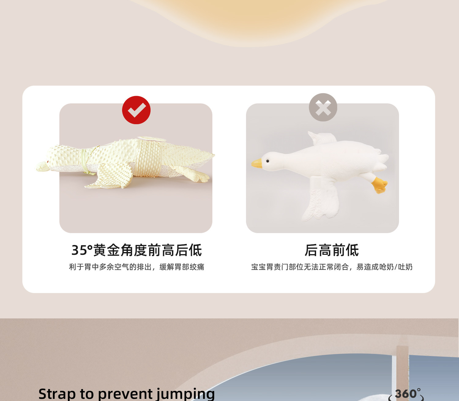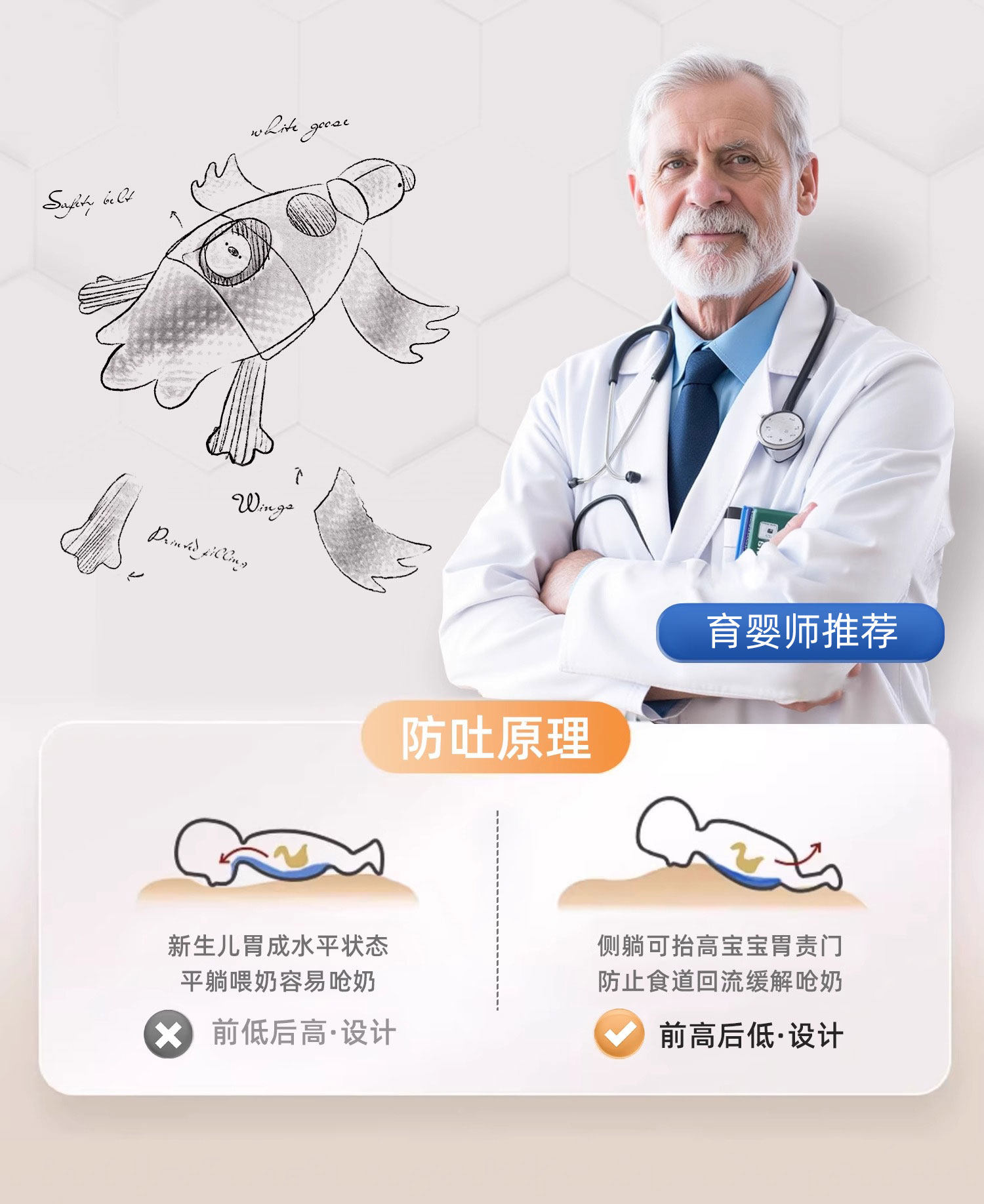 Big White Goose Baby Exhaust Pillow Soothes Newborn Baby Sleeping Pillow to Prevent Flatulence and Jumping in February