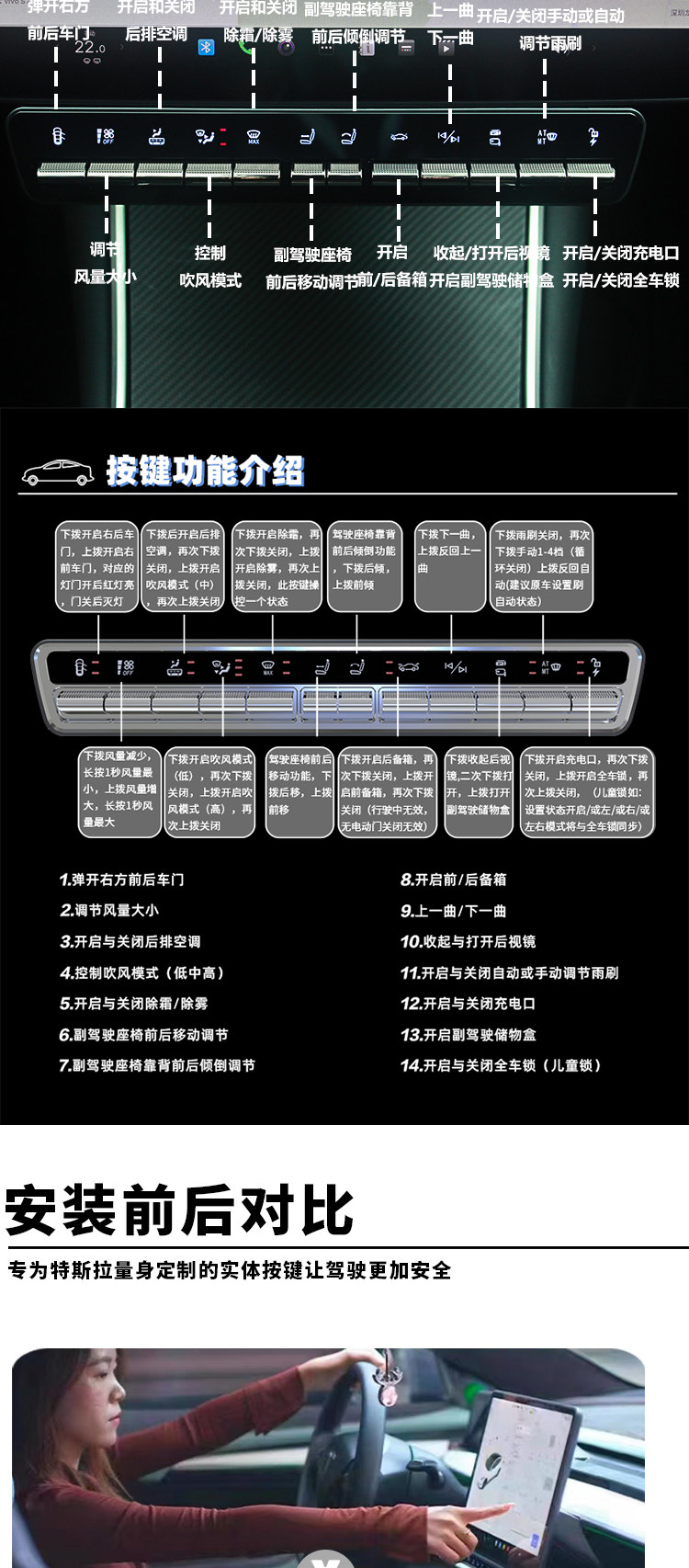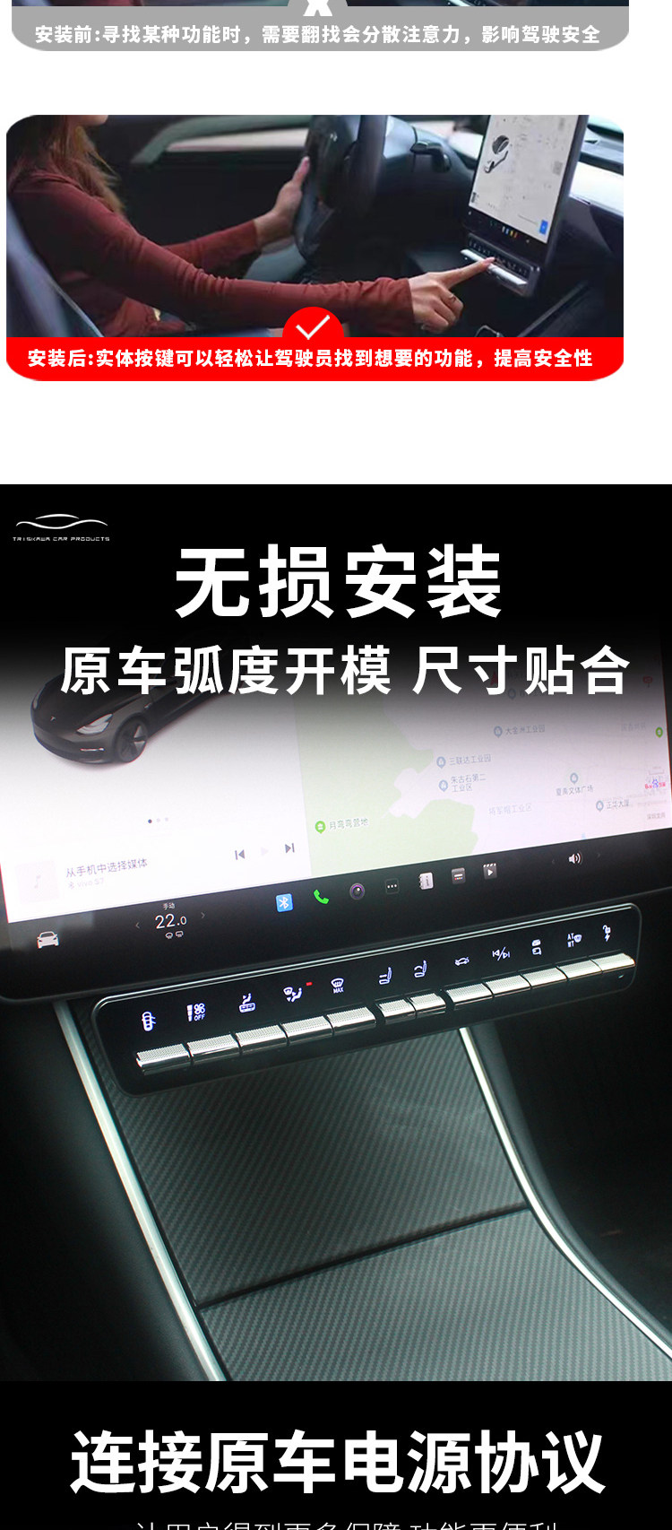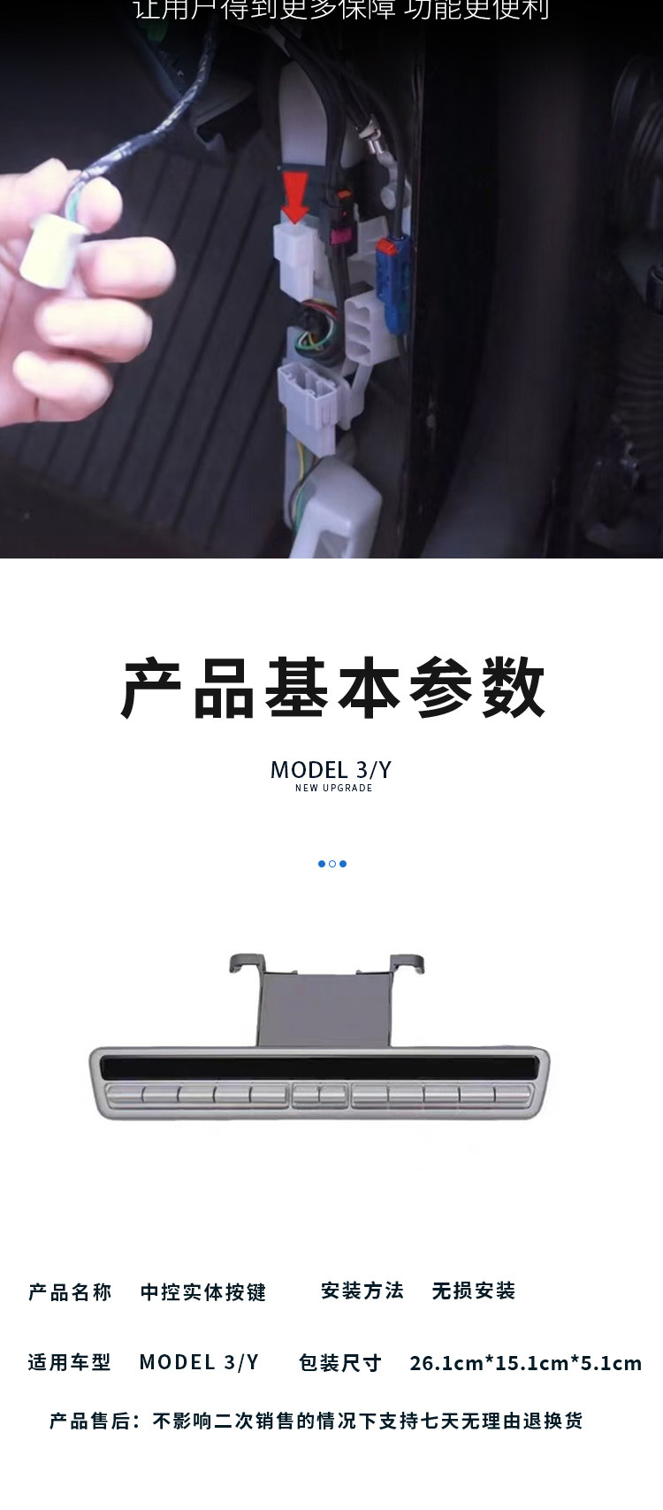 Adecuado para Tesla modelo 3/Y renovación de botón físico 3/Y botón físico de control central de actualización multifuncional modificado