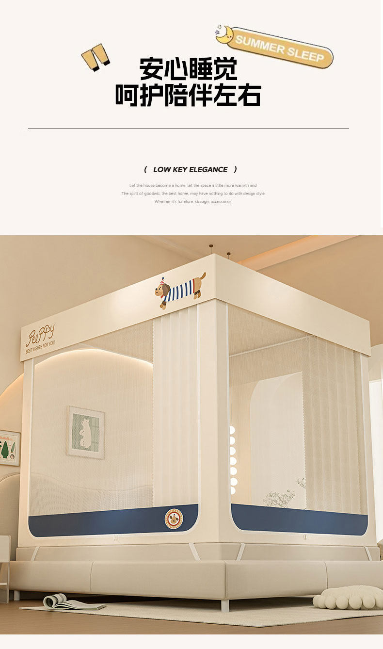 2025 New Anti-fall Mosquito Net for Home Bedroom Bracket-free Integrated Bed Curtain for Baby and Child Anti-Fall Bed Pattern Net