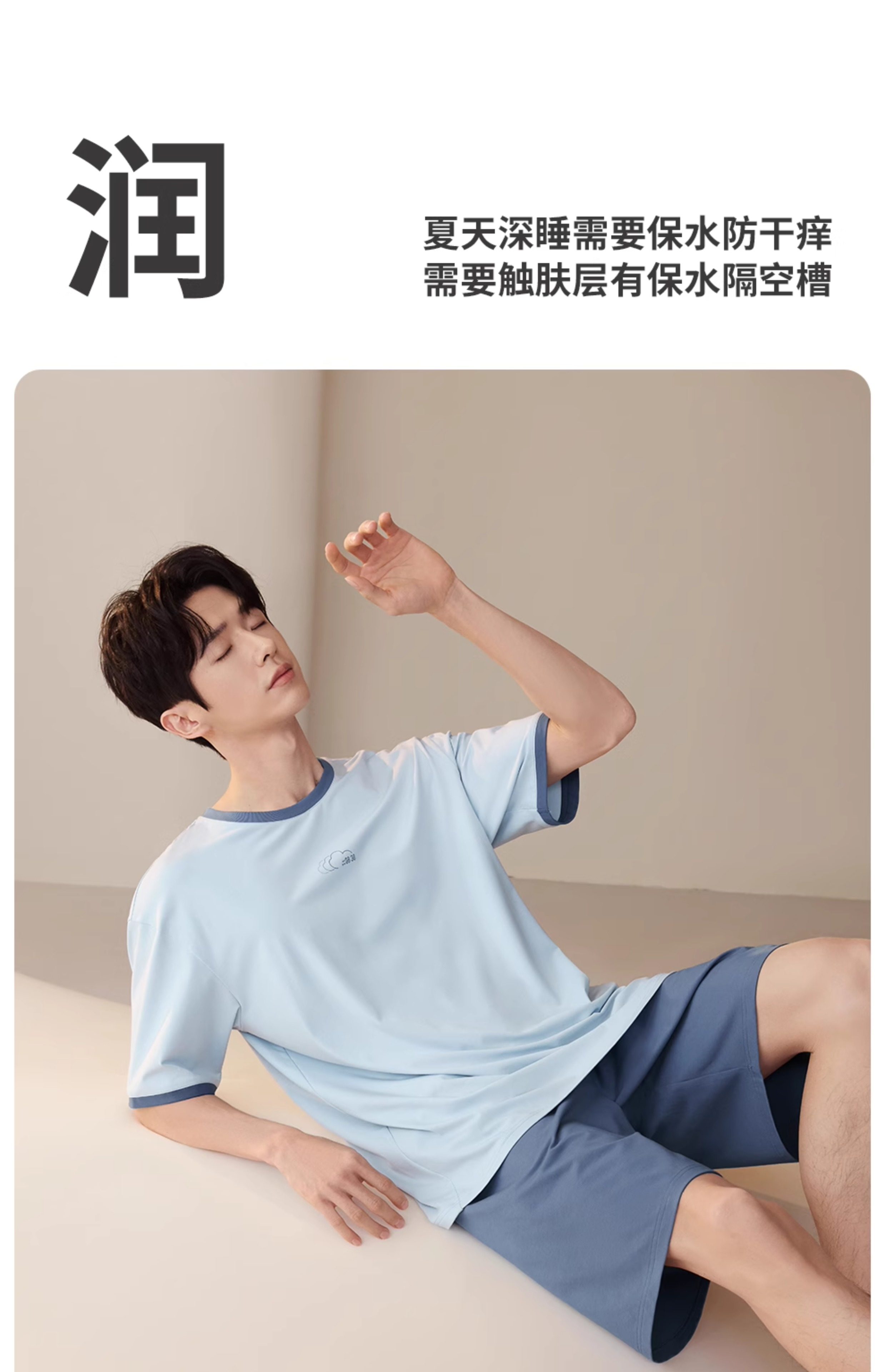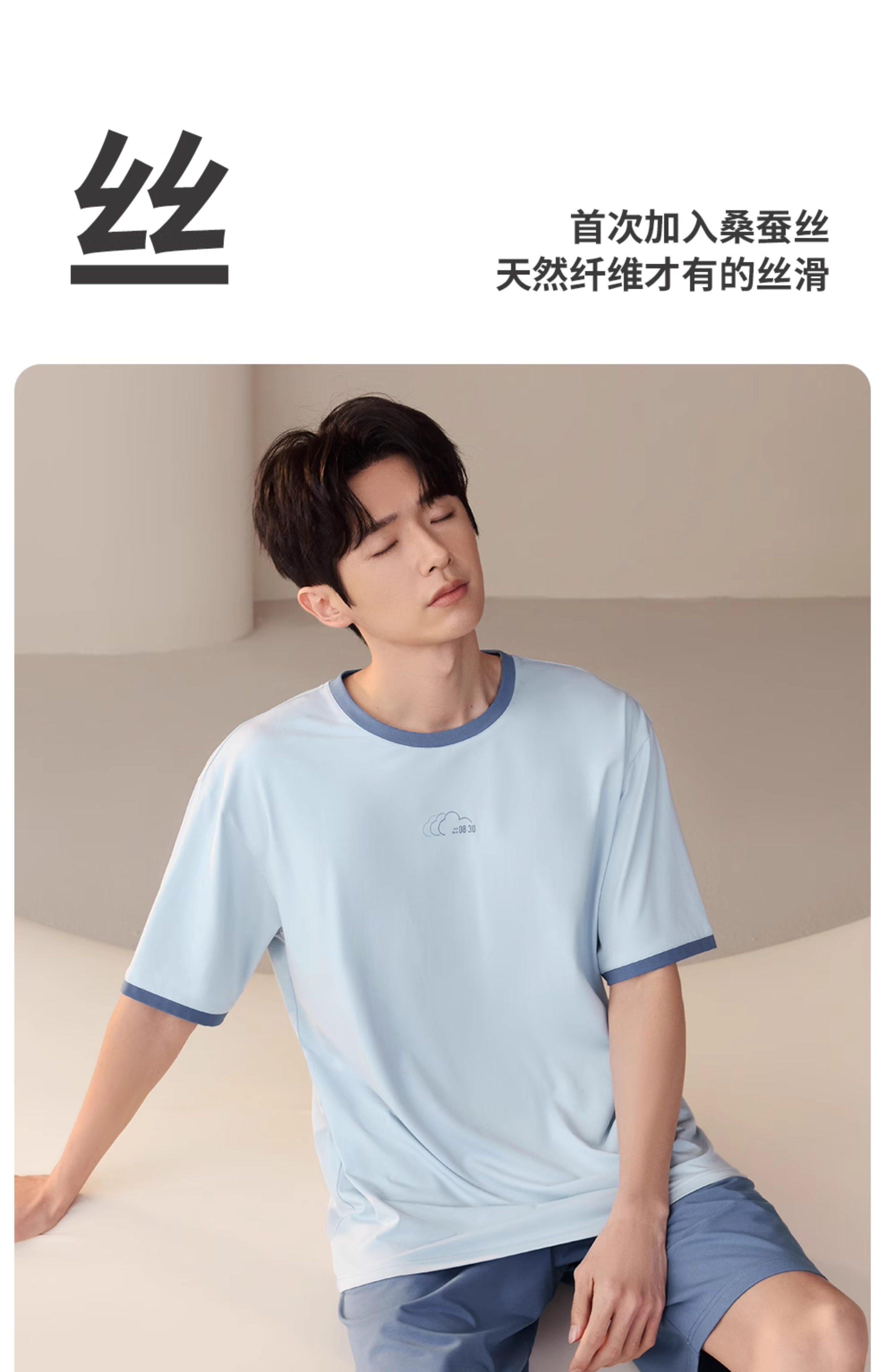 Jingyun [Cool Feeling Deep Sleepwear 80] Ultra-Soft Short-Sleeved Pajamas for Men in Summer, Containing Mulberry Silk and Anti-Mite Home Wear