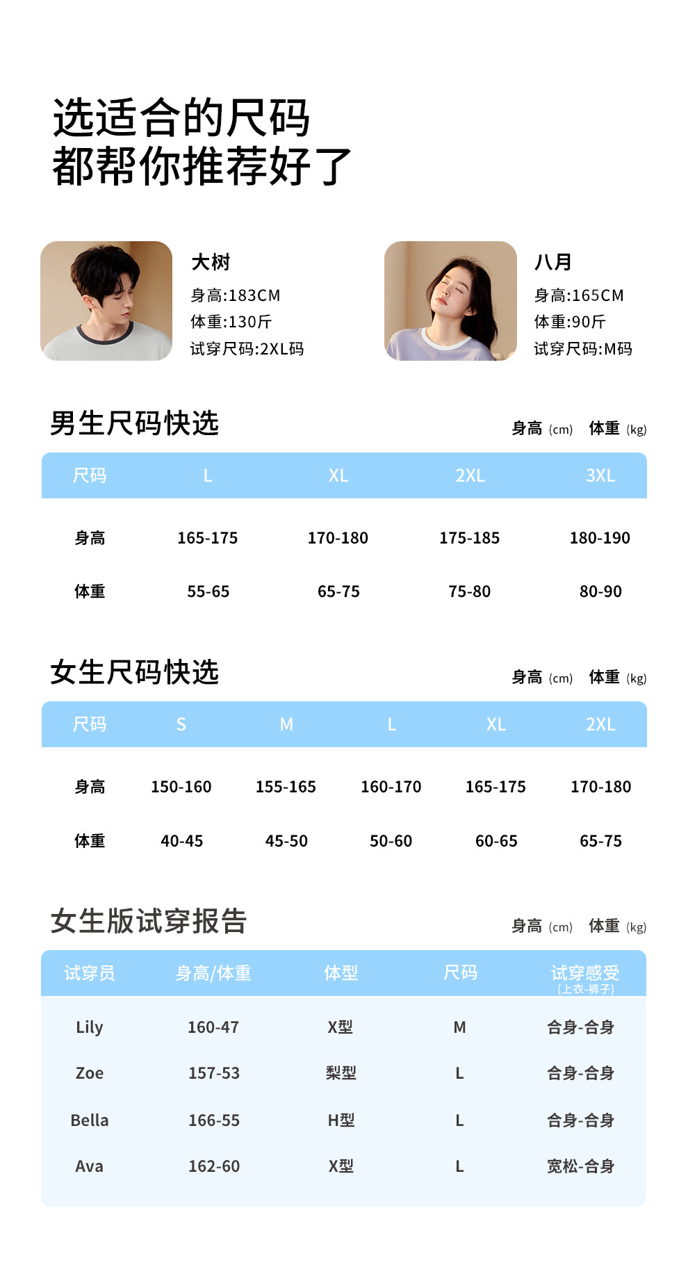 China (cm) 160-165/84-86 165-170 / 88-90 167-172 / 92-96 168-173 / 98-102 170-176 / 106-110