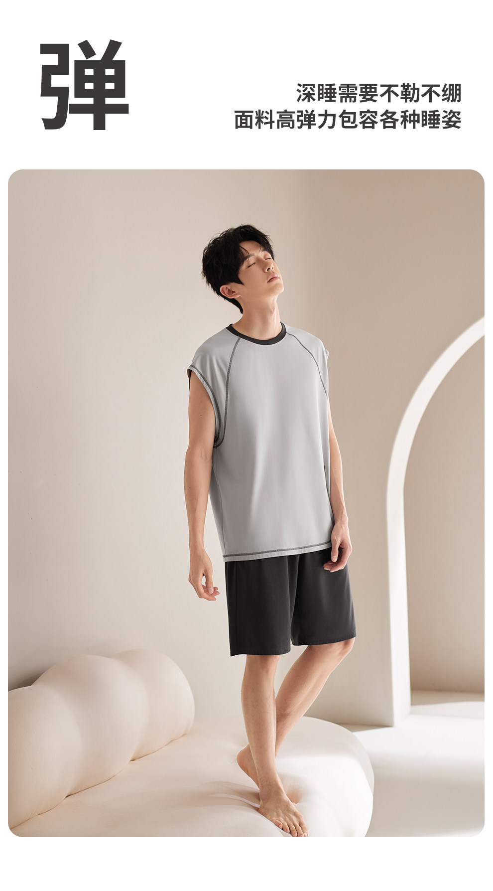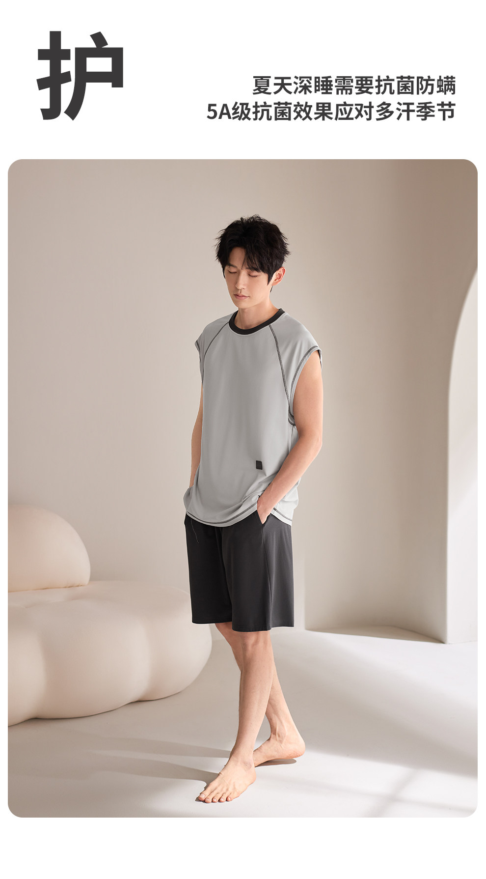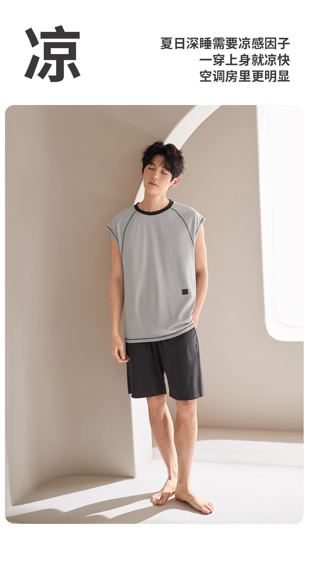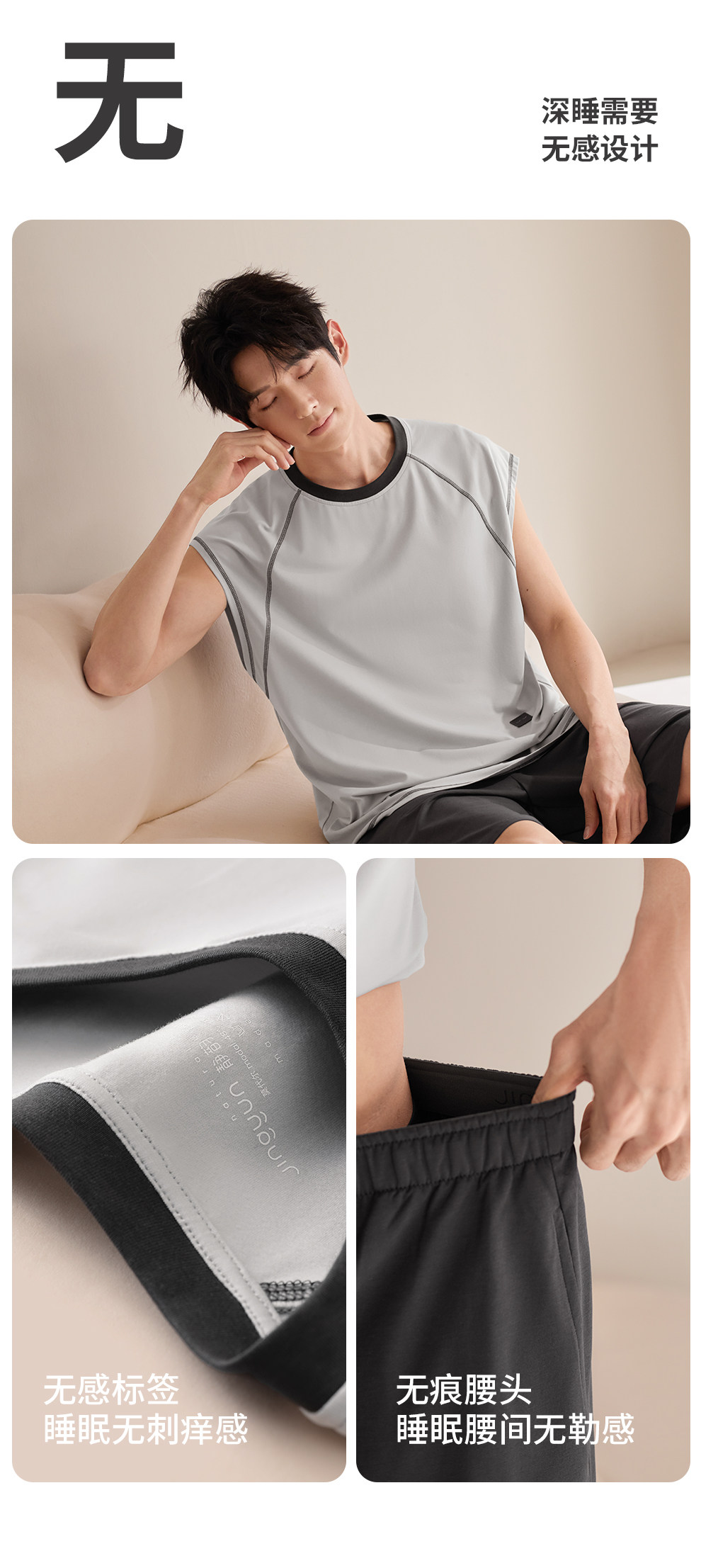 Jingyun [Cool Feeling Deep Sleepwear 70] Ultra-Soft Anti-Mite Pajamas Men's Summer Vest Homewear Set Can Be Worn Outside