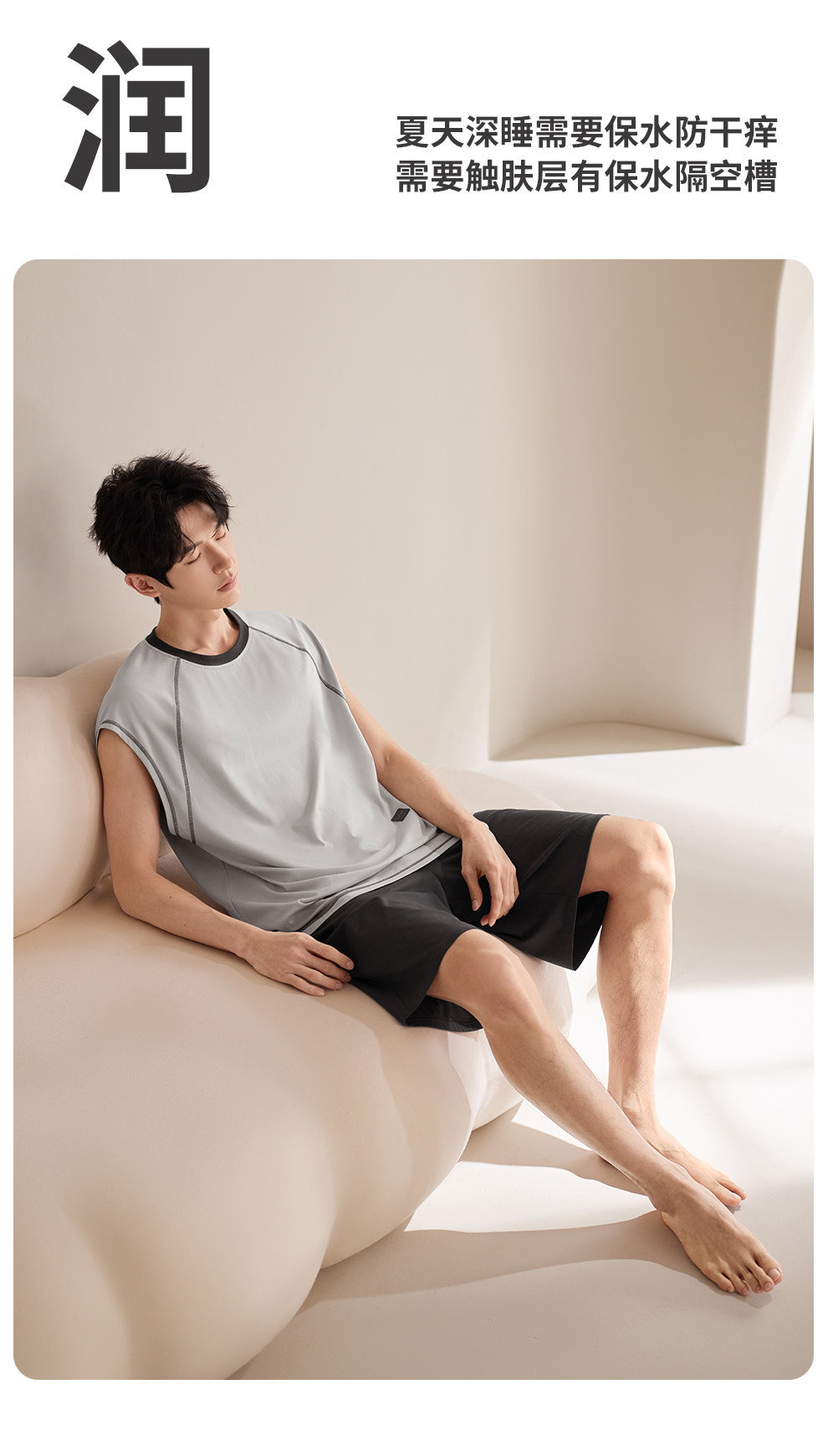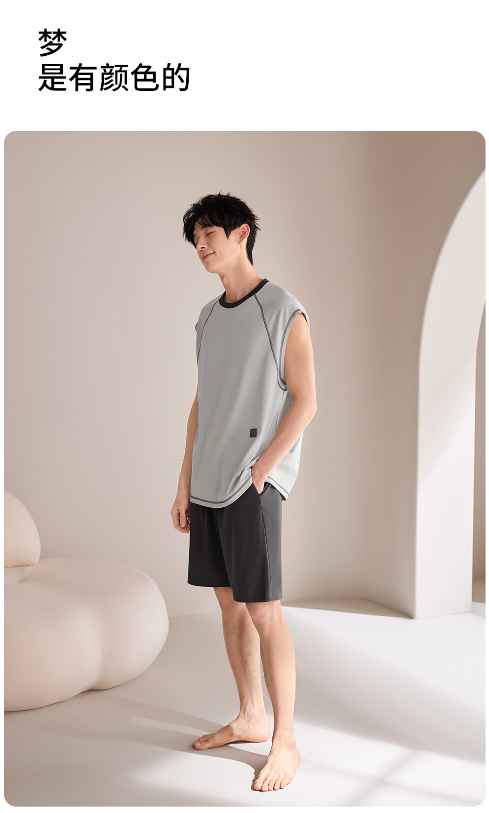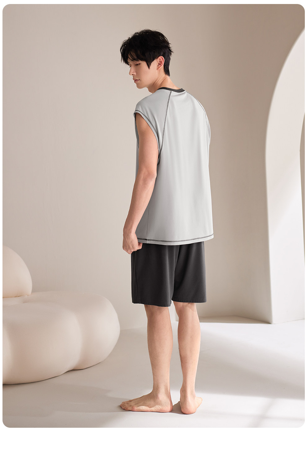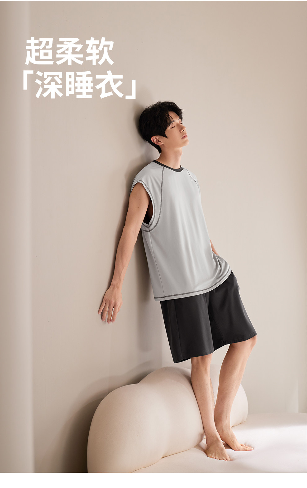Jingyun [Cool Feeling Deep Sleepwear 70] Ultra-Soft Anti-Mite Pajamas Men's Summer Vest Homewear Set Can Be Worn Outside