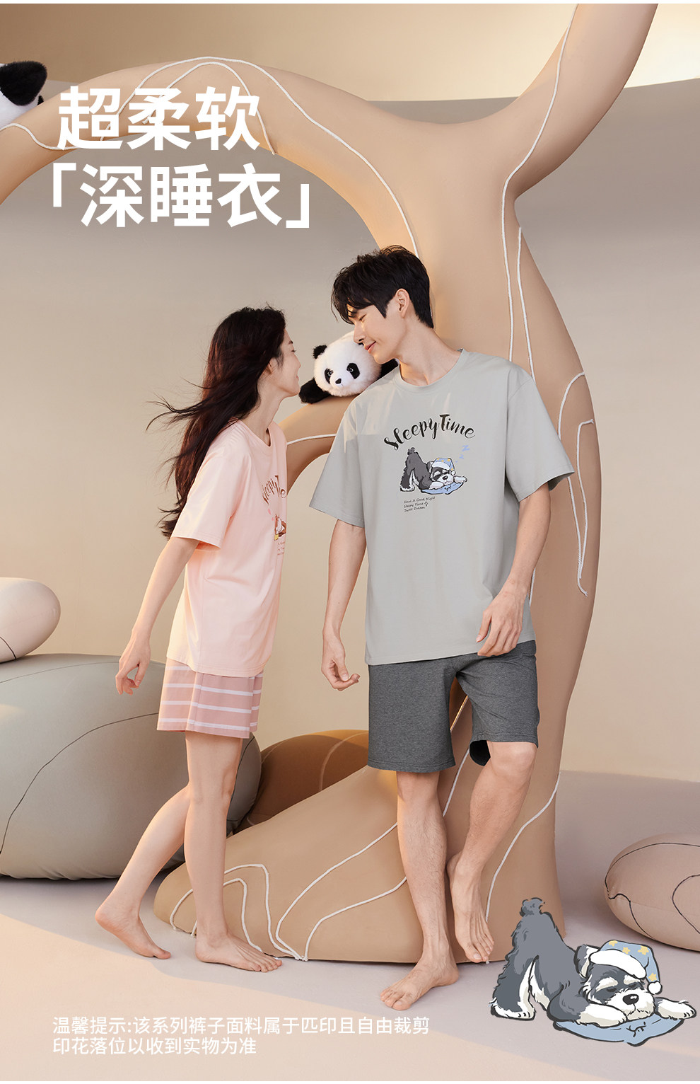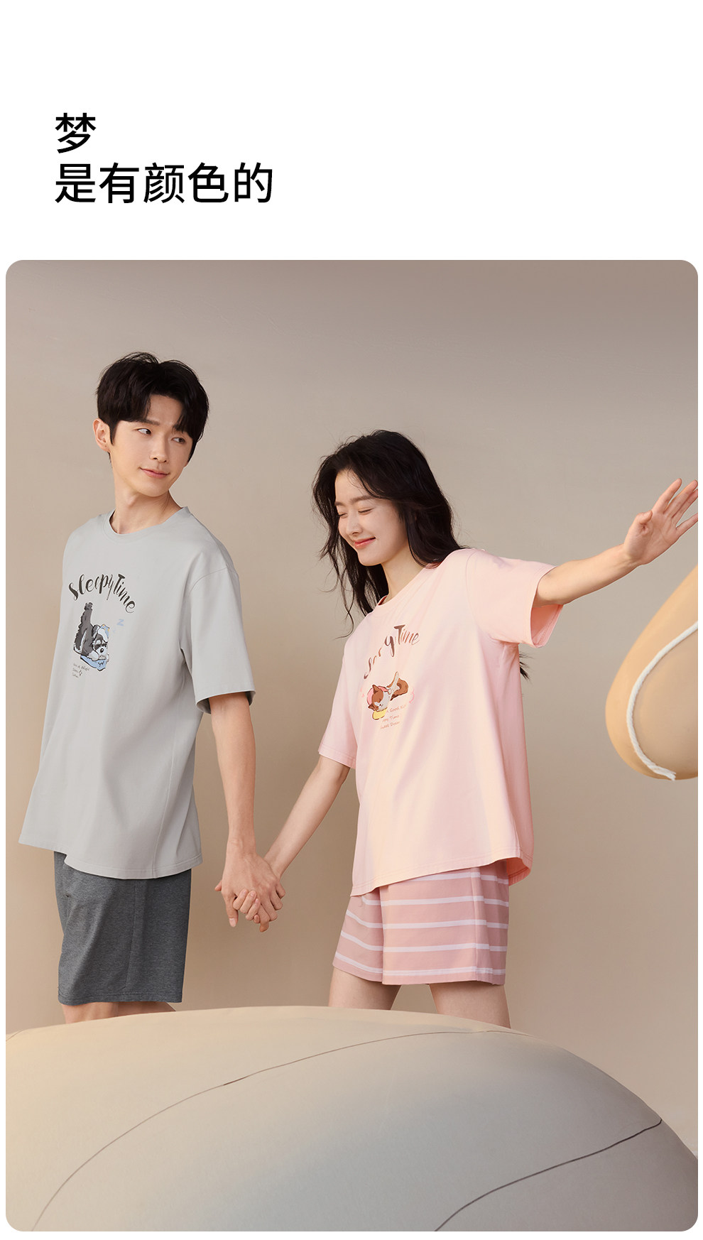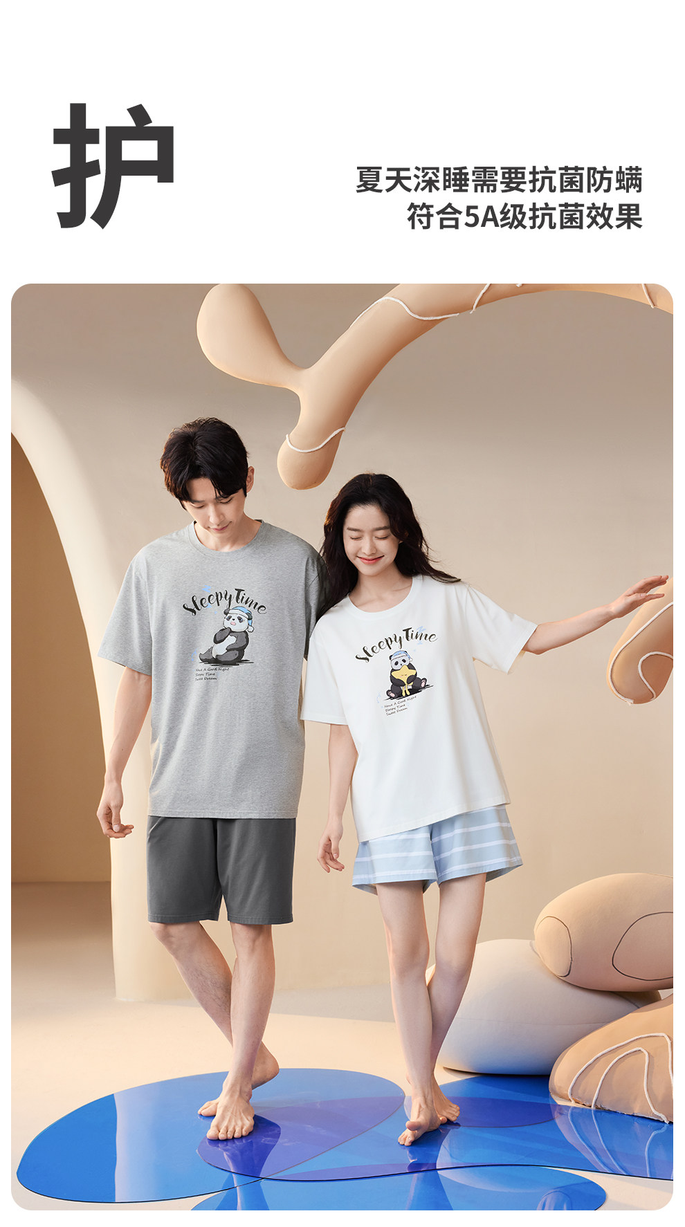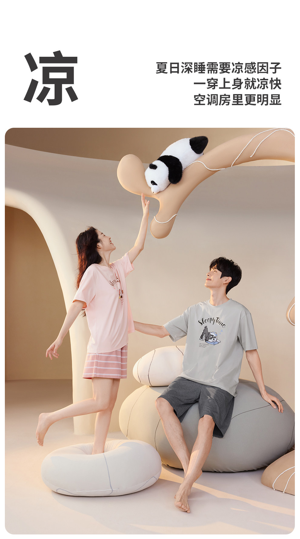 静韵【凉感深睡衣70】超柔软短袖睡衣女夏季情侣家居服男款可外穿