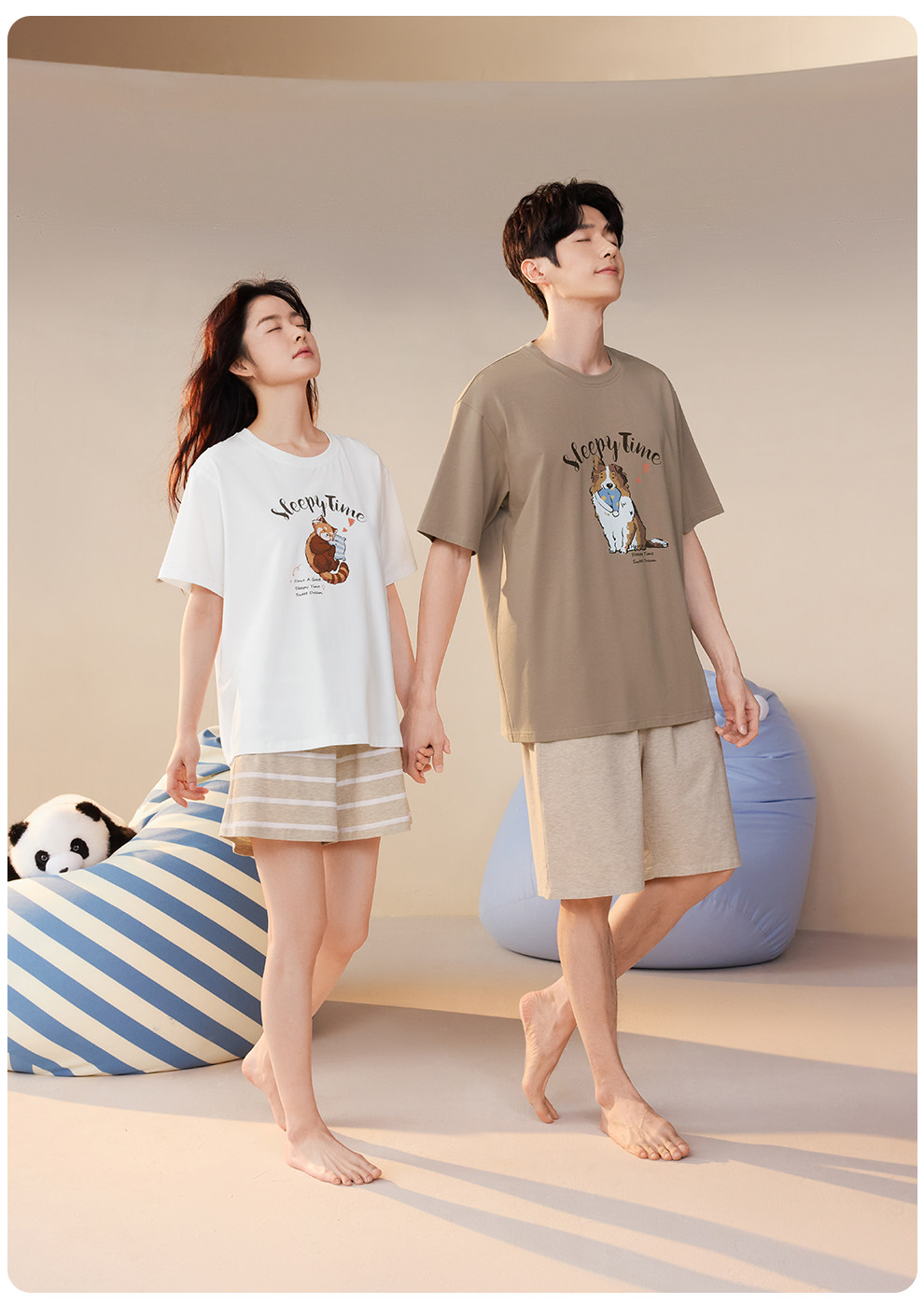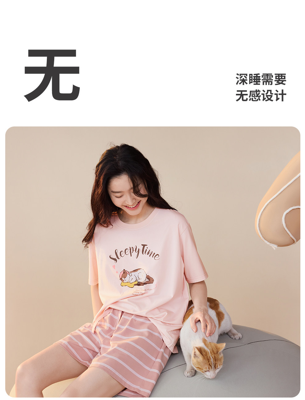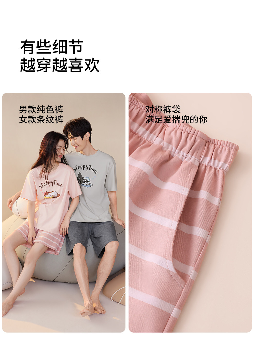 静韵【凉感深睡衣70】超柔软短袖睡衣女夏季情侣家居服男款可外穿