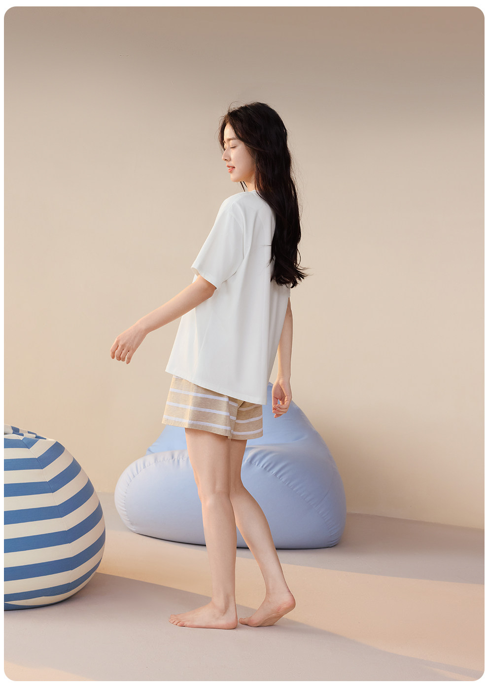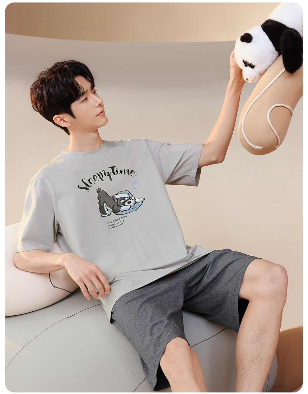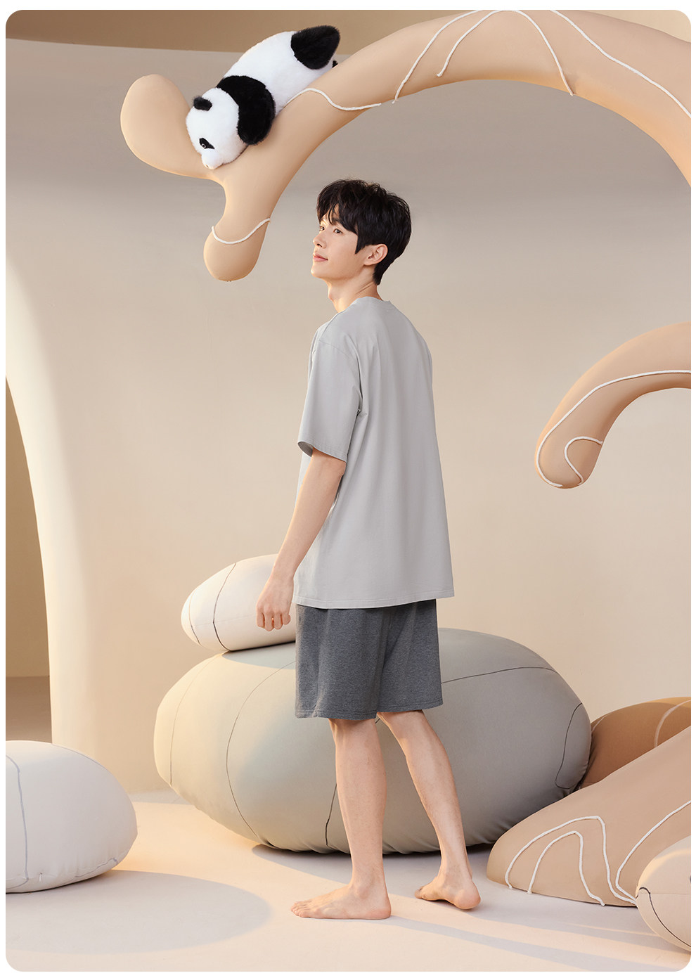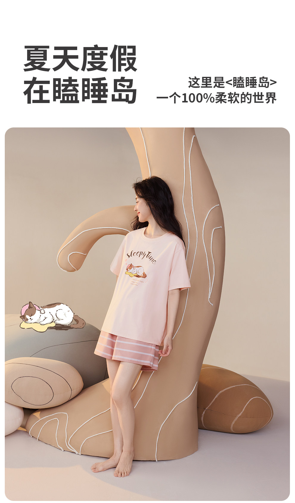 静韵【凉感深睡衣70】超柔软短袖睡衣女夏季情侣家居服男款可外穿