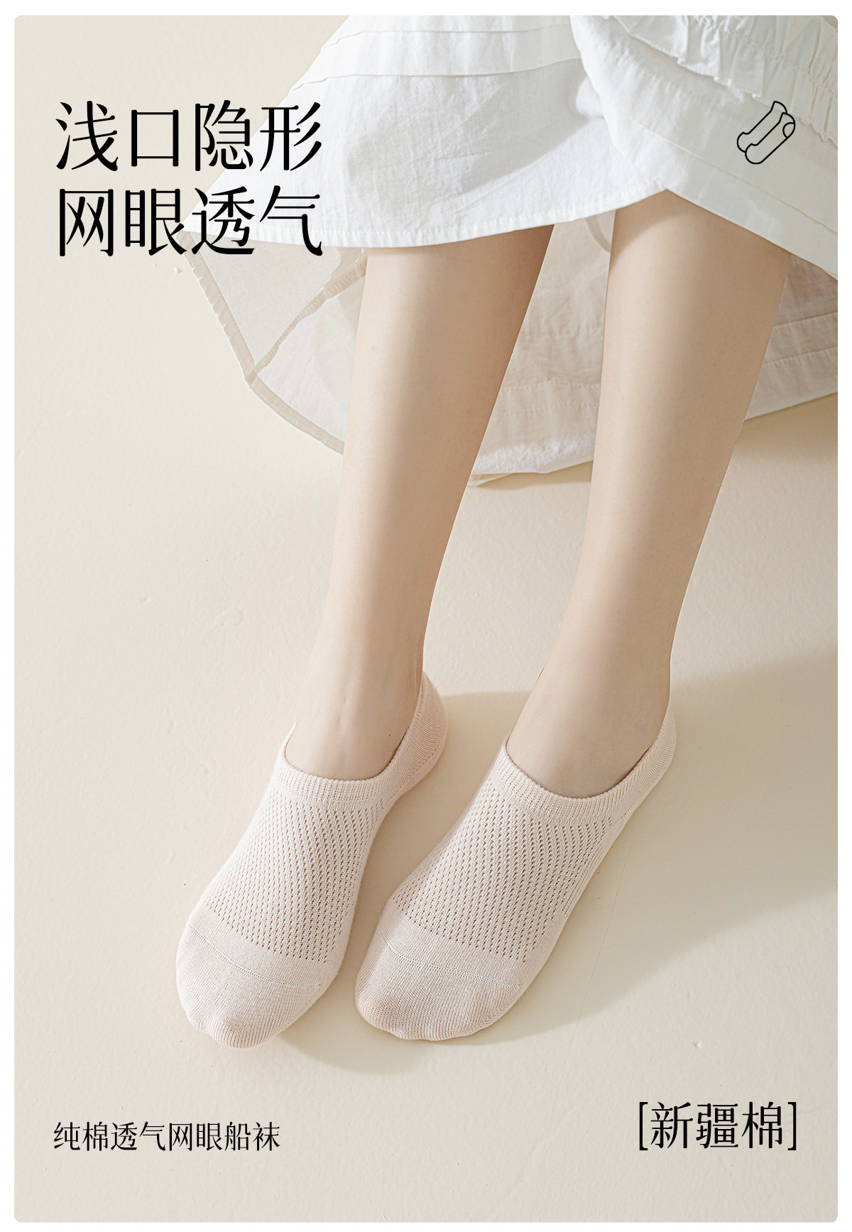 Bootssocken für Damen, Sommer, dünn, flacher Mund, unsichtbar, rutschfest, nicht fallend, aus reiner Baumwolle, antibakterielles Netz, atmungsaktive Damensocken