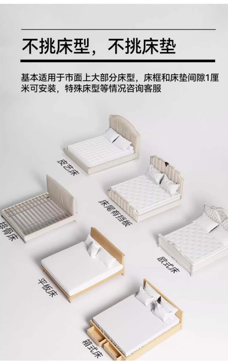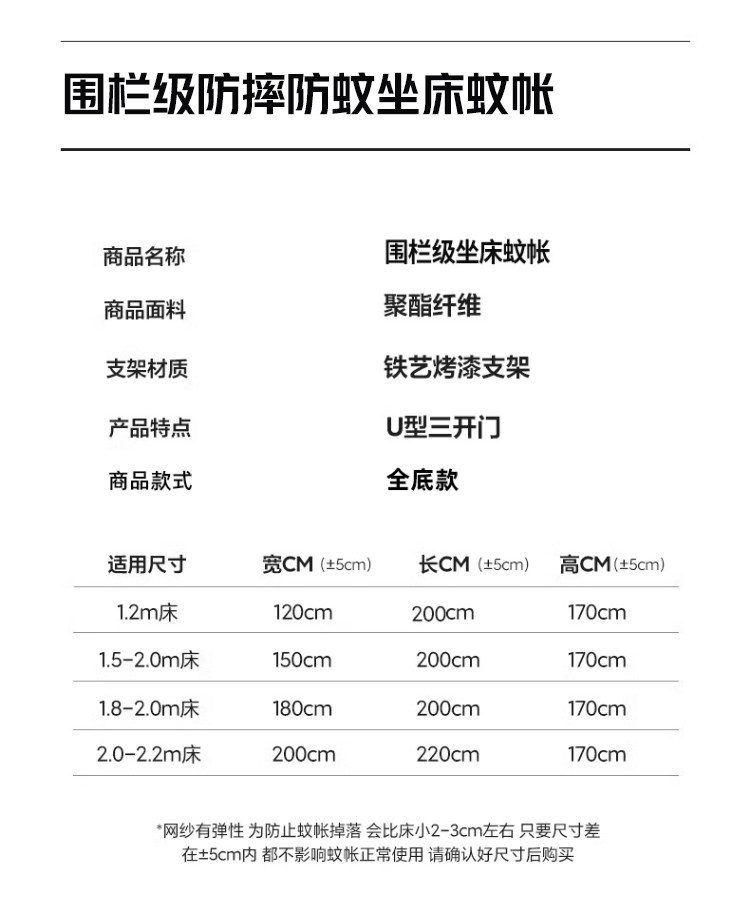 适用床尺寸 适用1.2m床-宽120*长200*高170【加粗加厚16mm免安装圆管弹珠支架】,适用1.5m床-宽150*长200*高170【加粗加厚16mm免安装圆管弹珠支架】,适用1.8m床-宽180*长200*高170【加粗加厚16mm免安装圆管弹珠支架】,适用2.0m床-宽200*长220*高170【加粗加厚16mm免安装圆管弹珠支架】