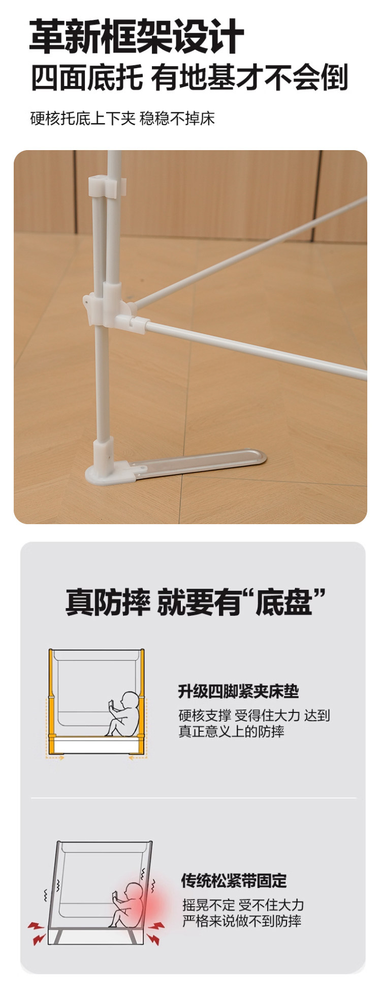 防摔蚊帐2025新款家用卧室免安装婴儿童防掉床围栏全底蒙古包纹帐