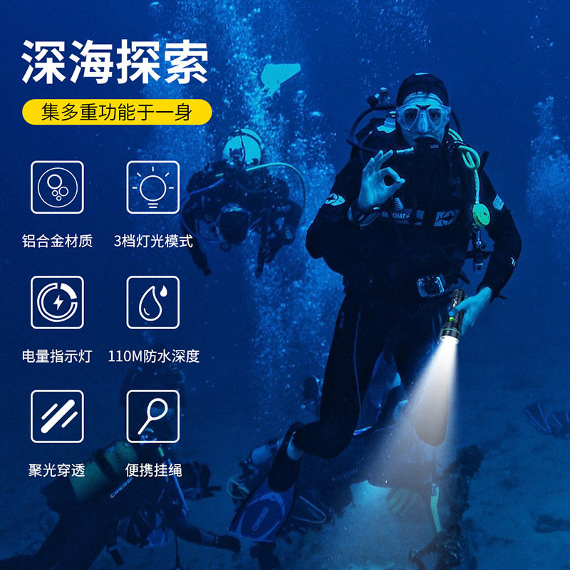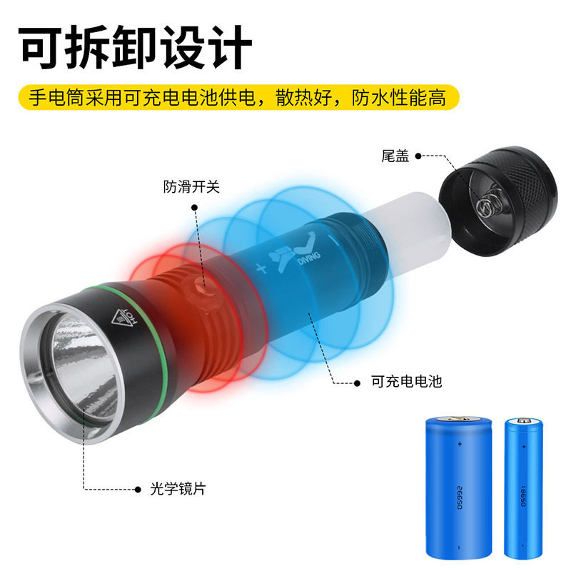 Diving Flashlight 2000 Lumens for Deep Diving and Night Diving, Specialized Underwater Lighting 110m Waterproof Fill Light for Sea Exploration