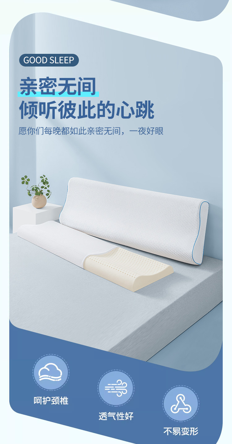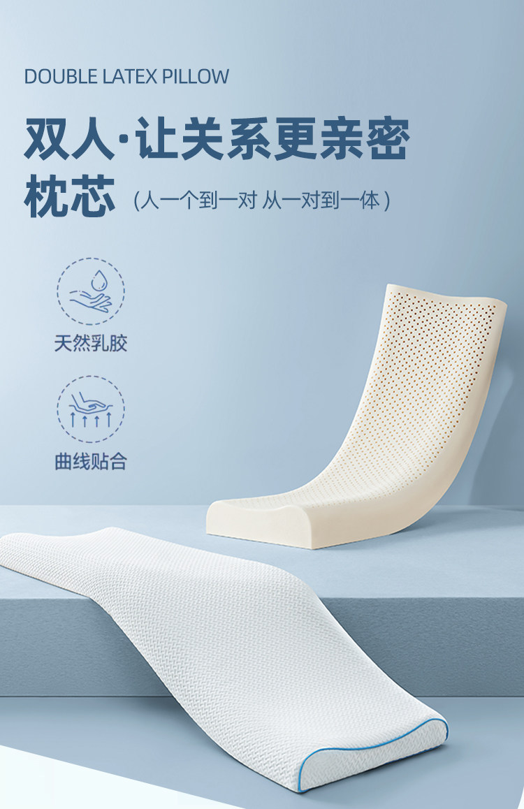 猫人双人乳胶长枕头情侣枕橡胶长款颈椎夫妻一体枕芯1.5米1.8m1.2