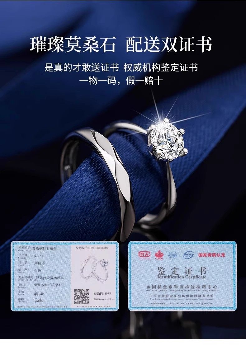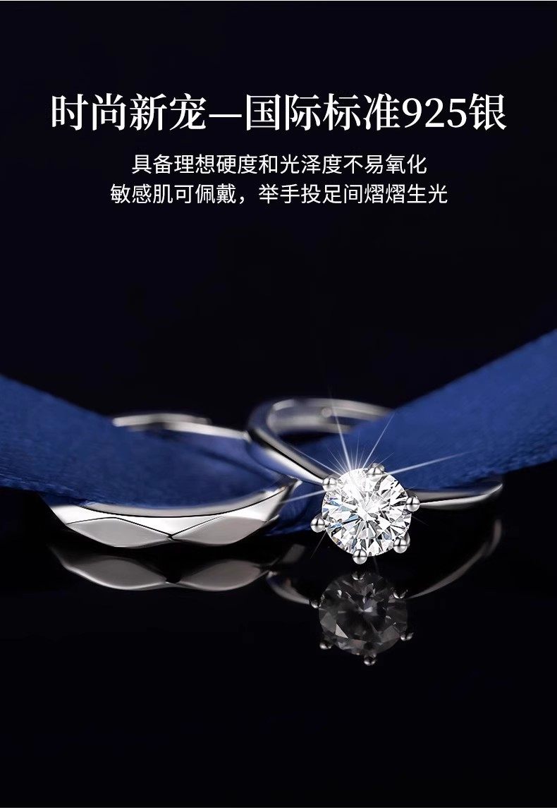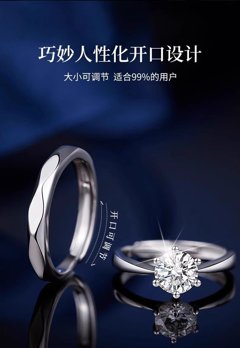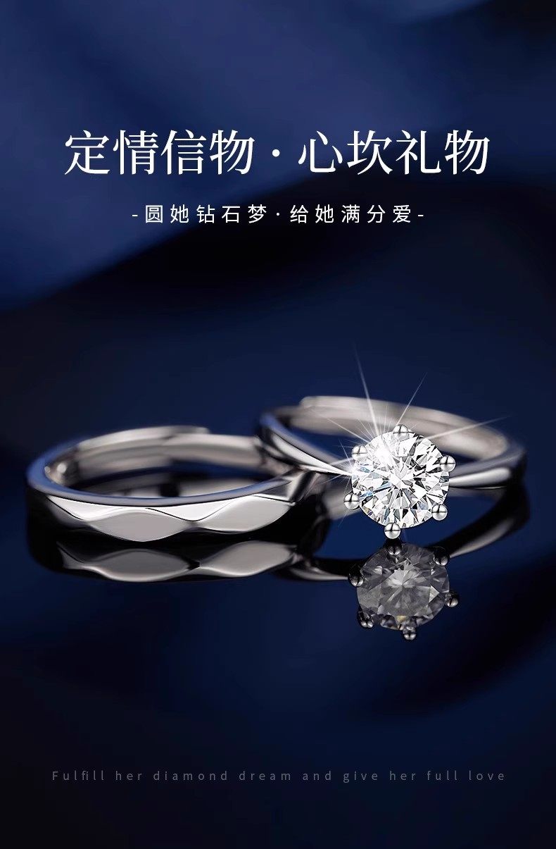 Moissanite Couple Sterling Silver Diamond Ring Pair Niche Design Wedding Proposal Confession Ring Birthday Gift for Girlfriend