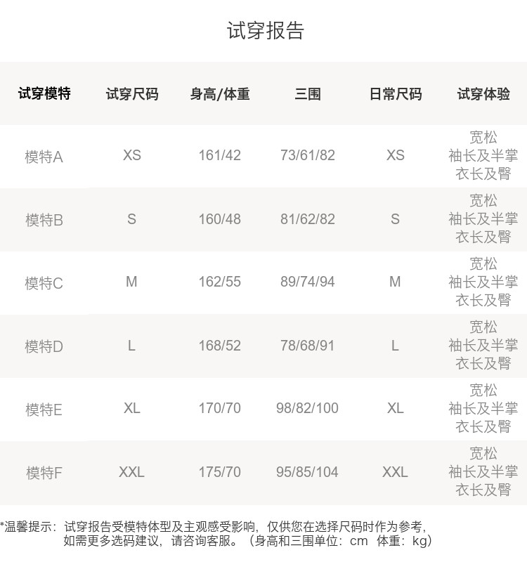 China (cm) 160-165/84-86 165-170 / 88-90 167-172 / 92-96 168-173 / 98-102 170-176 / 106-110