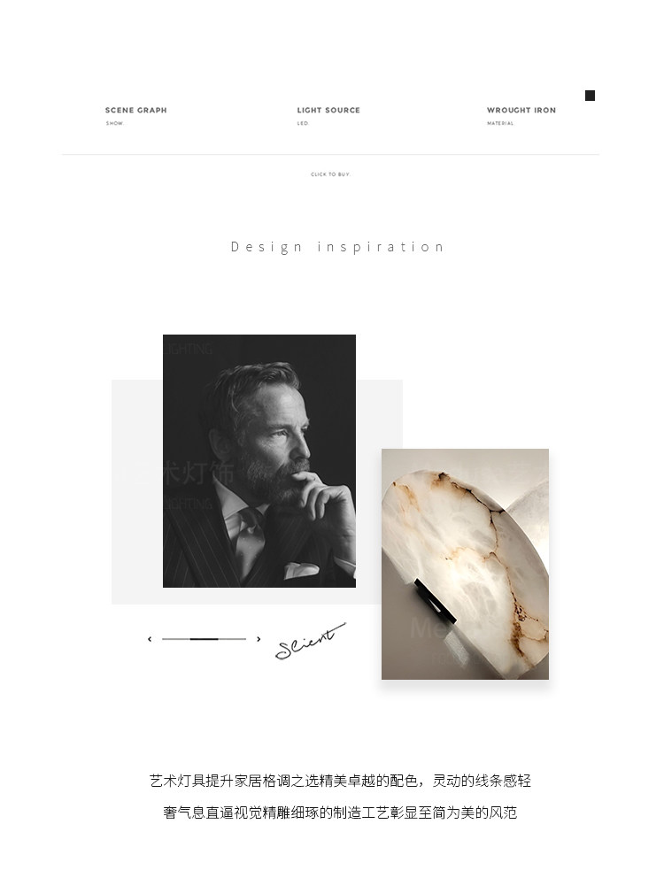 Frenchpierre Chareau Spanish Marble Wall Lamp French Art Hotel Corridor Staircase Background Wall Lamp