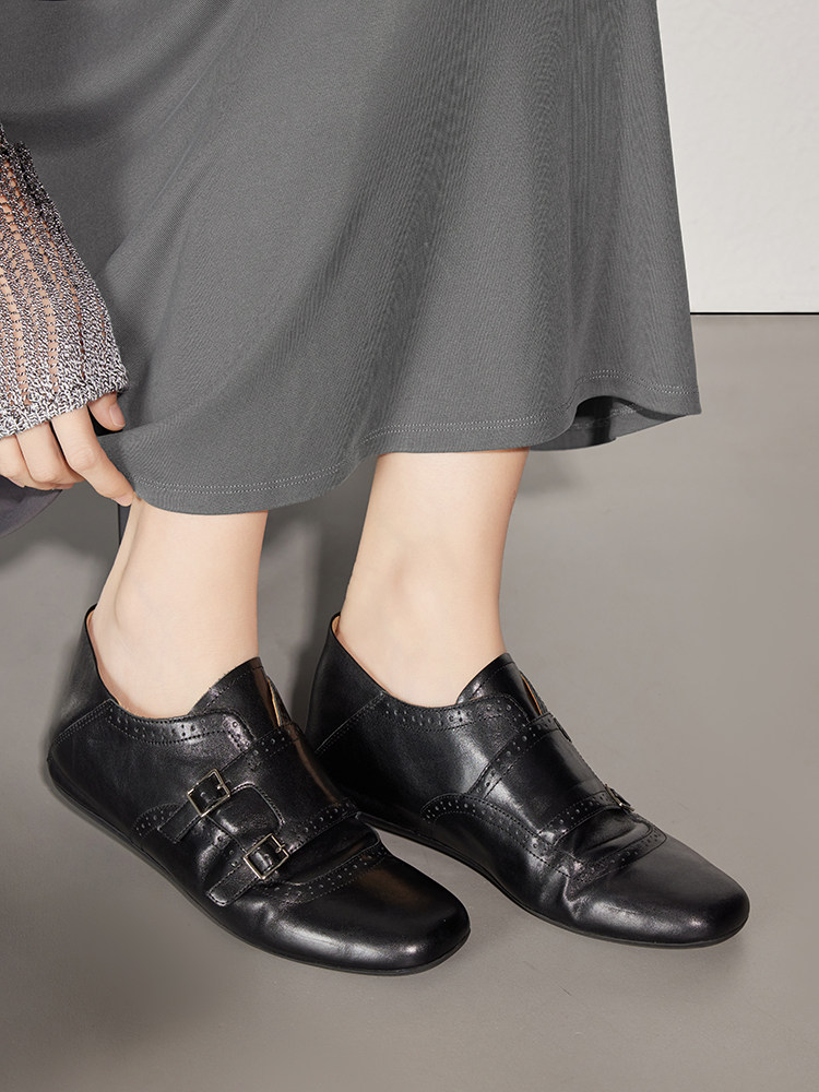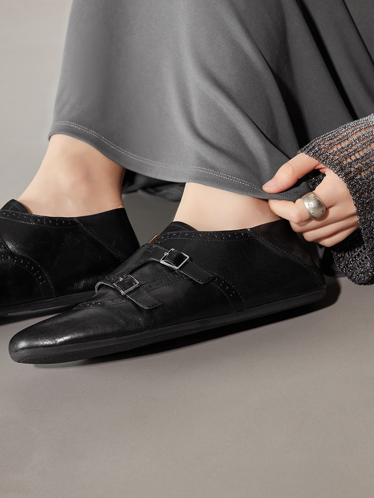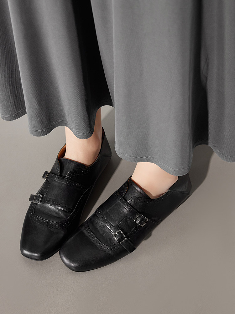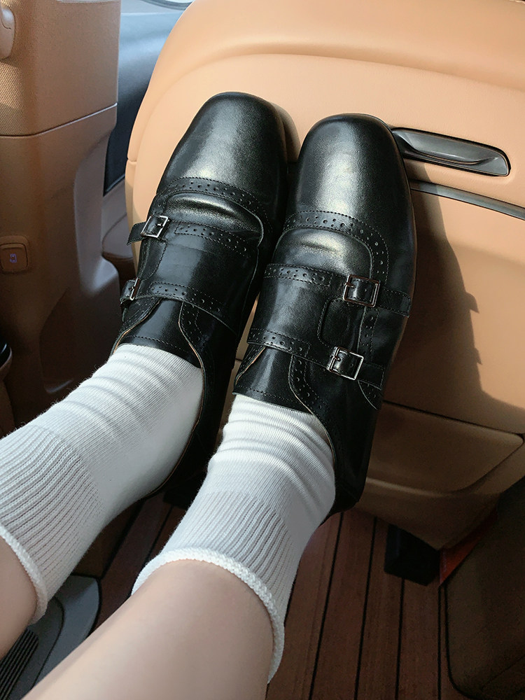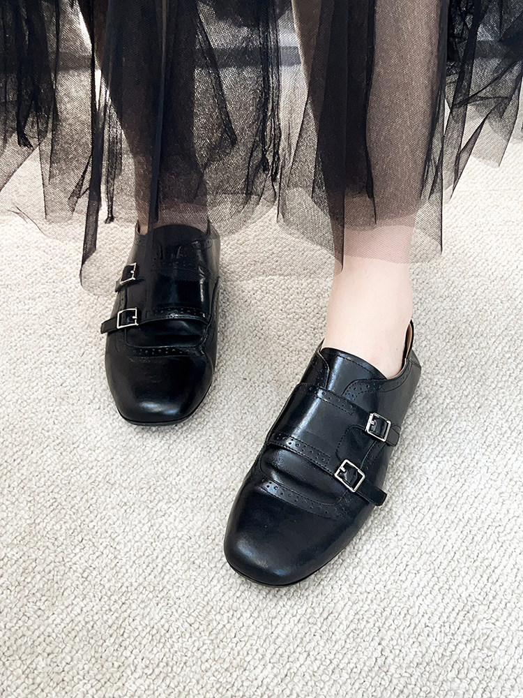 MEIYANG Spot Lolita Loafers Kuhleder Square Toe Monk Shoes-Donnerstag