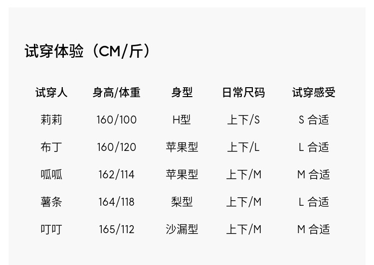 China (cm) 160-165/84-86 165-170 / 88-90 167-172 / 92-96 168-173 / 98-102 170-176 / 106-110