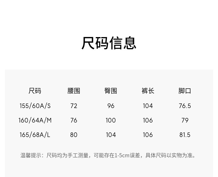 Outseam (cm) 99 cm 101.5 cm 104 cm 106.5 cm 109 cm