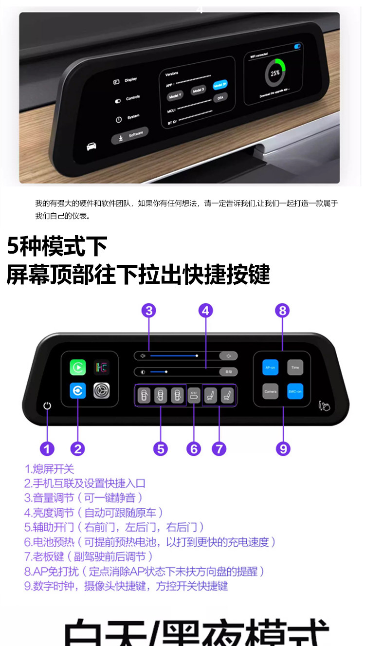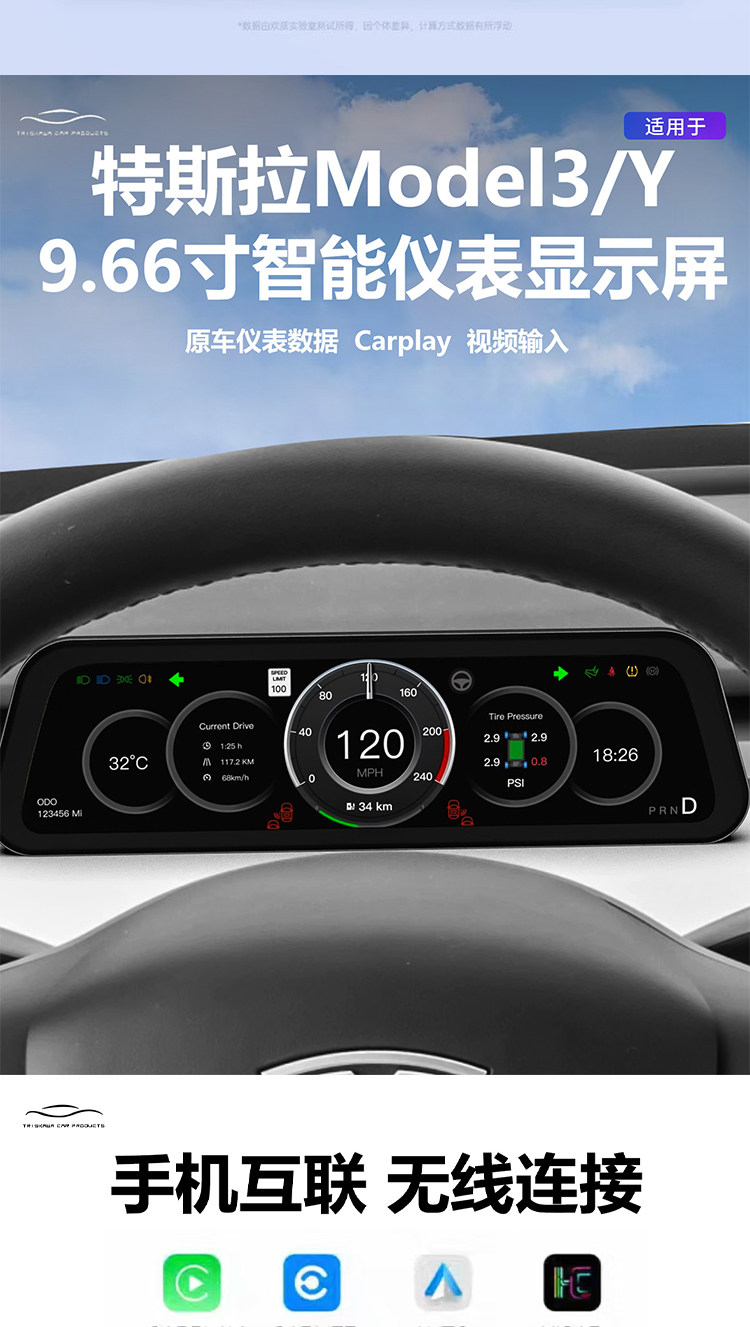 Suitable for Tesla's New Model 3/Y Lcd 9.6inch Instrument Panel Modification and Upgrade to Carplay Original Factory Version