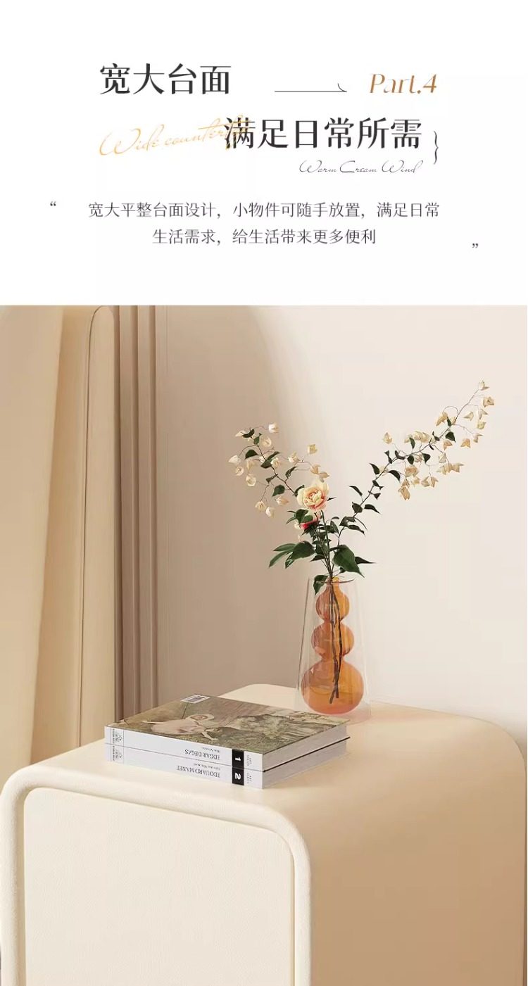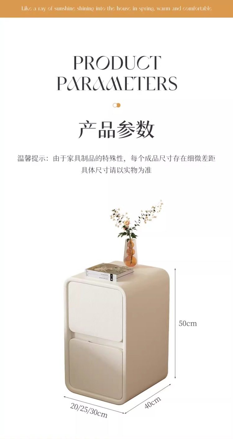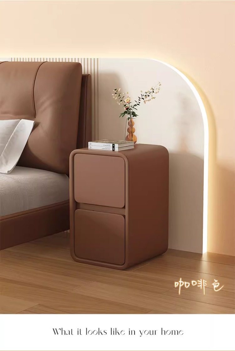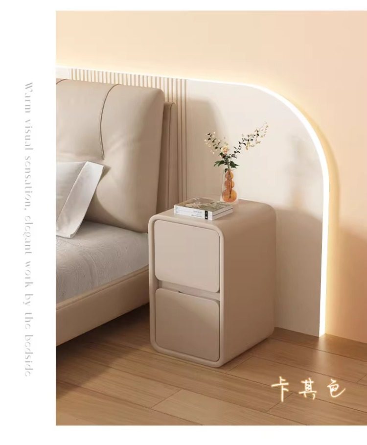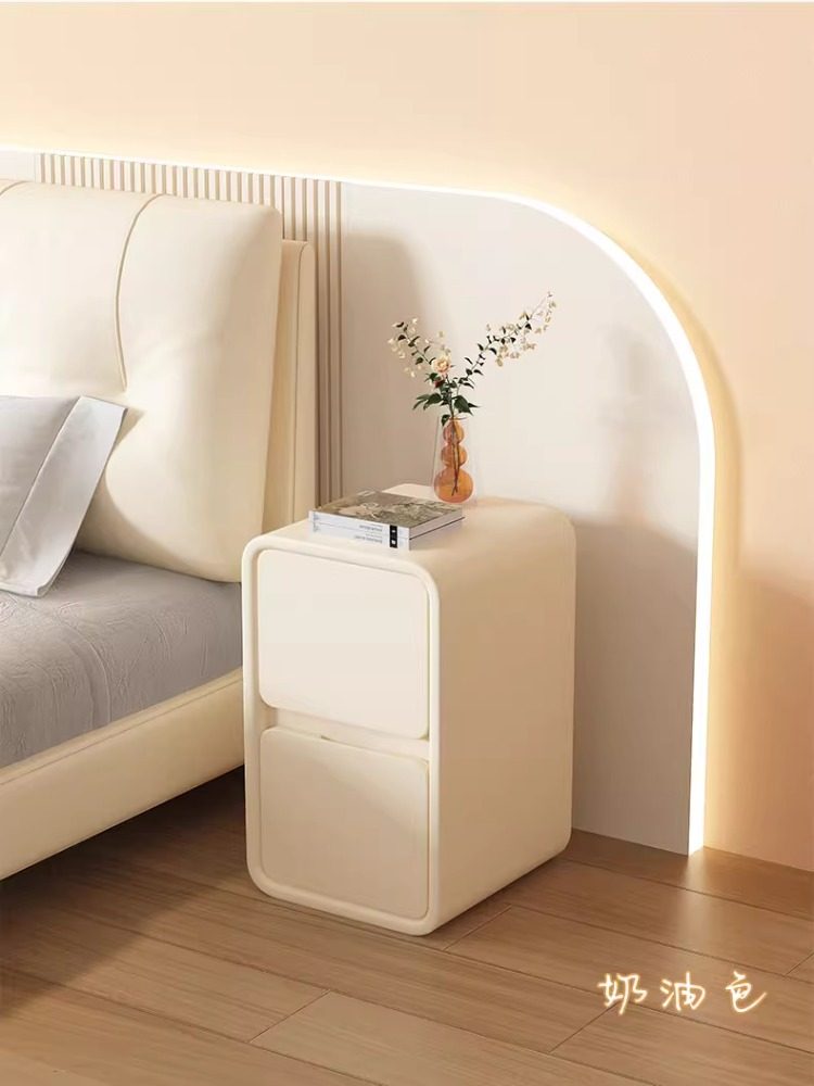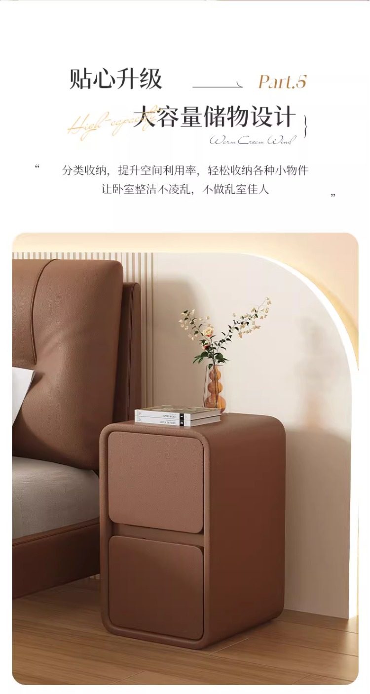 Прикроватная тумбочка Baishi Yi Cream Style, простая современная тумбочка из массива дерева с кожаной отделкой, ультраузкая 20 см, минималистичная, миниатюрная.