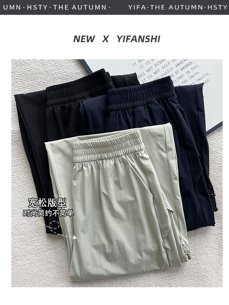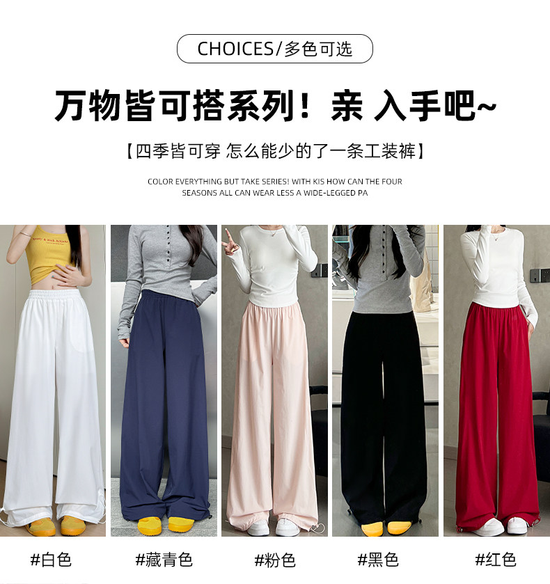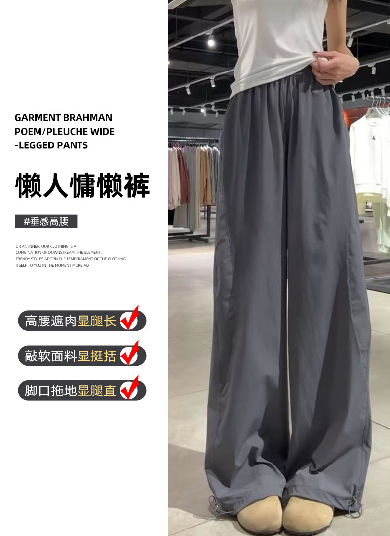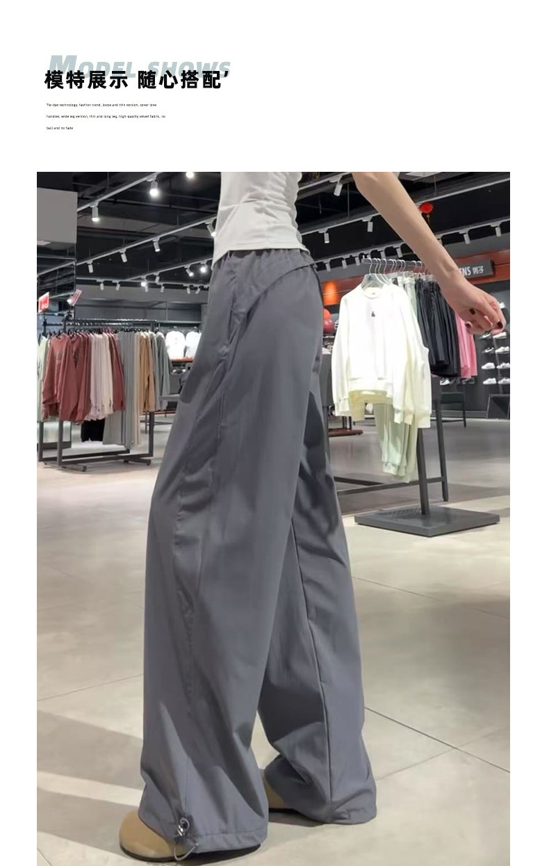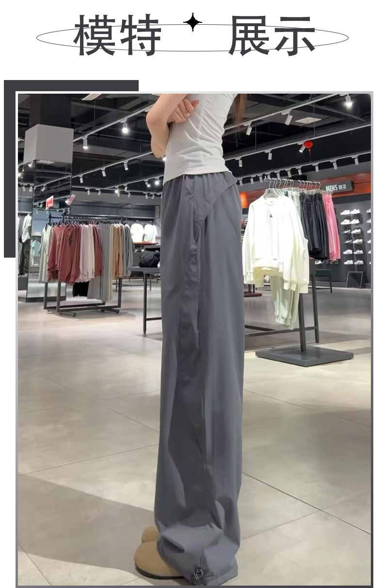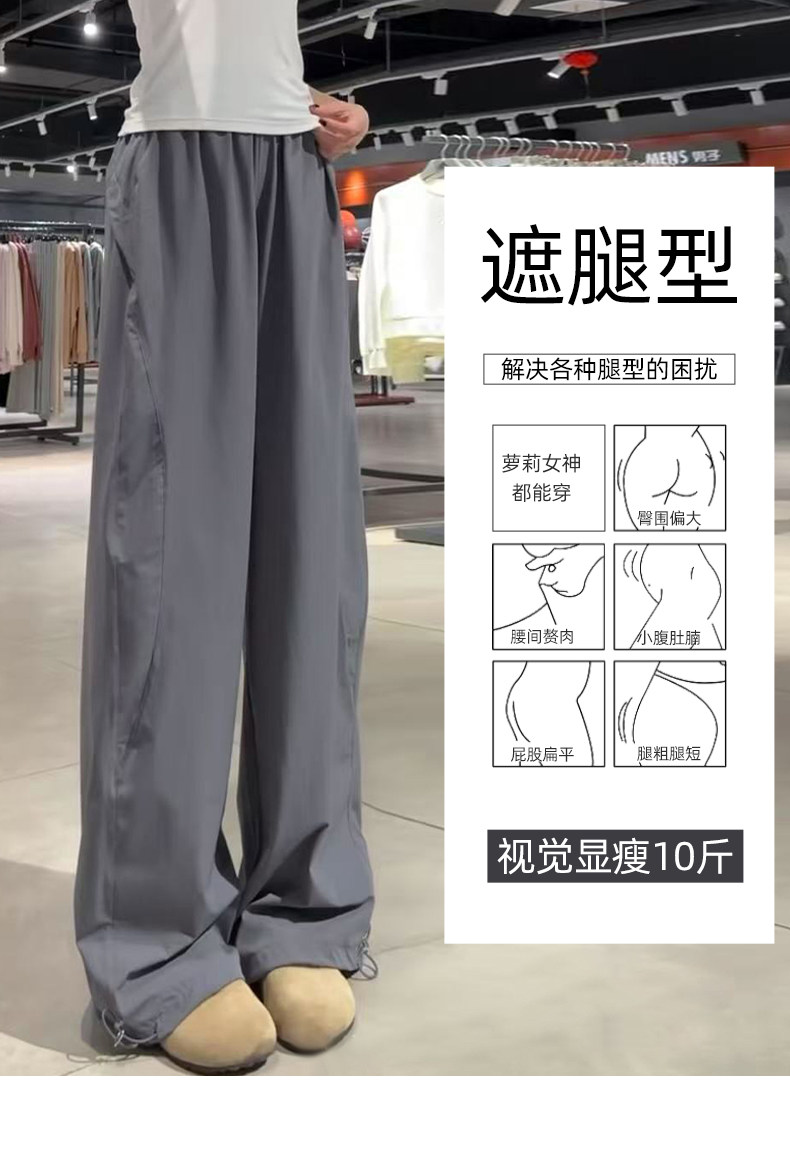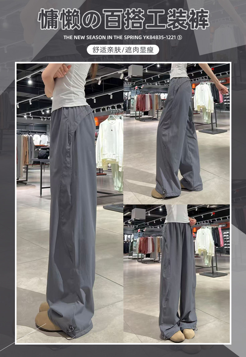 深灰色美式速干工装裤女夏2025新款宽松休闲直筒小个子阔腿运动裤