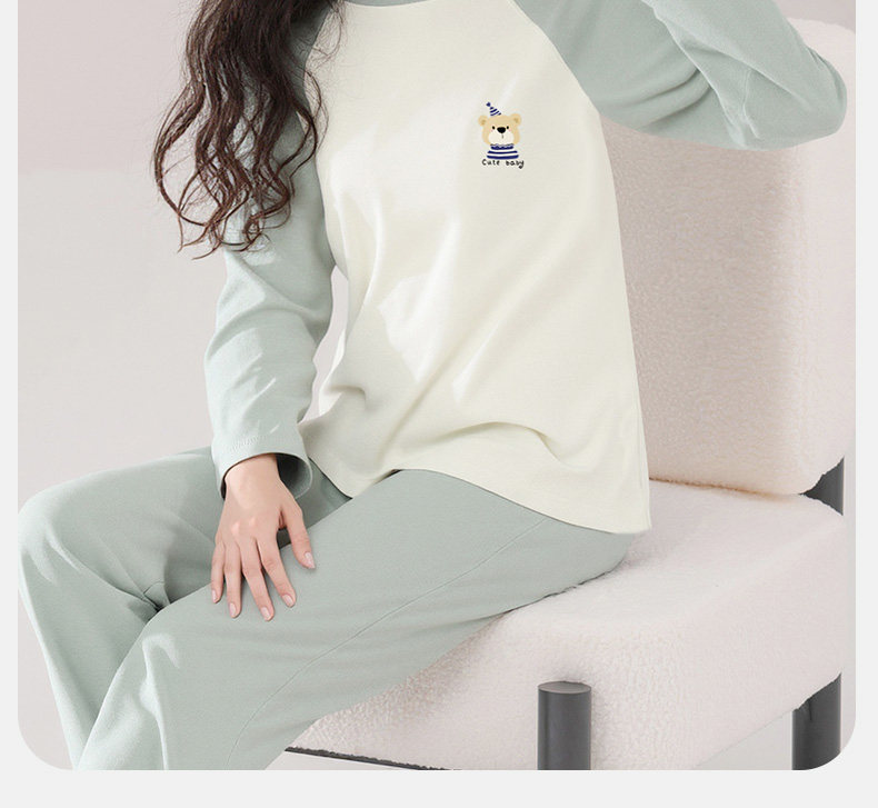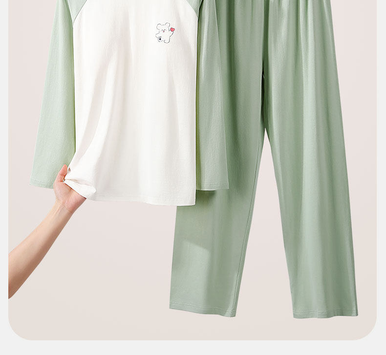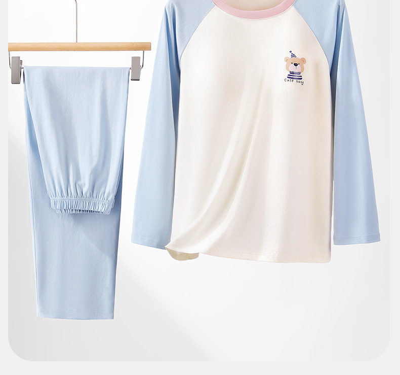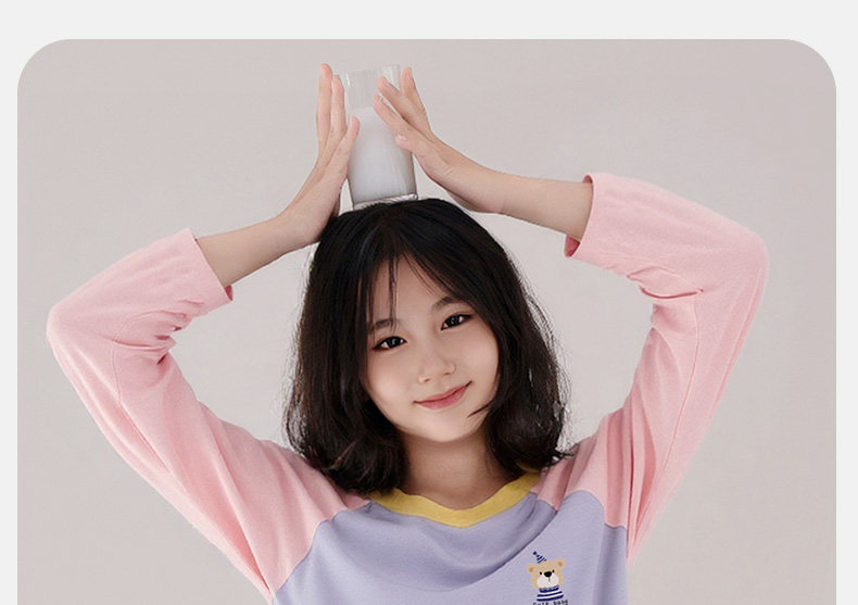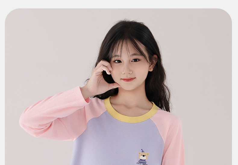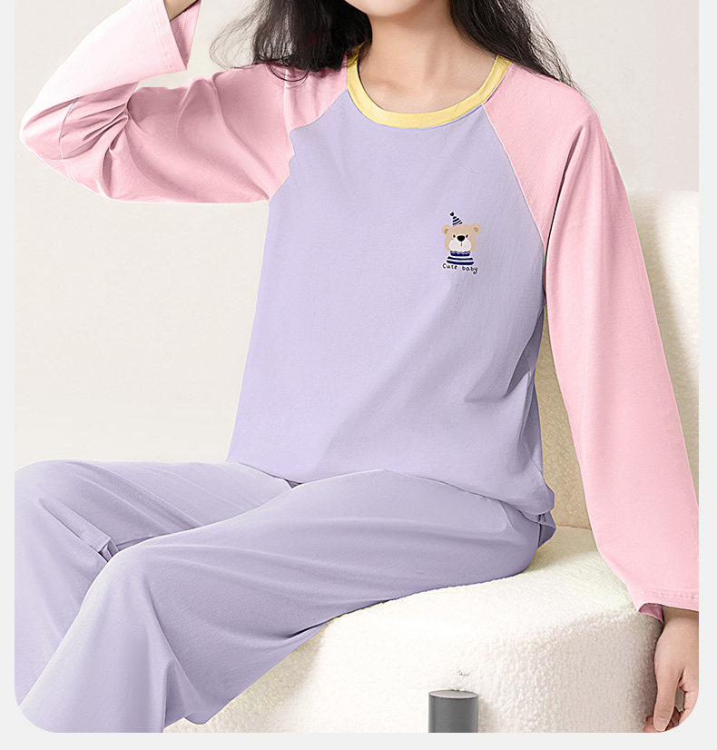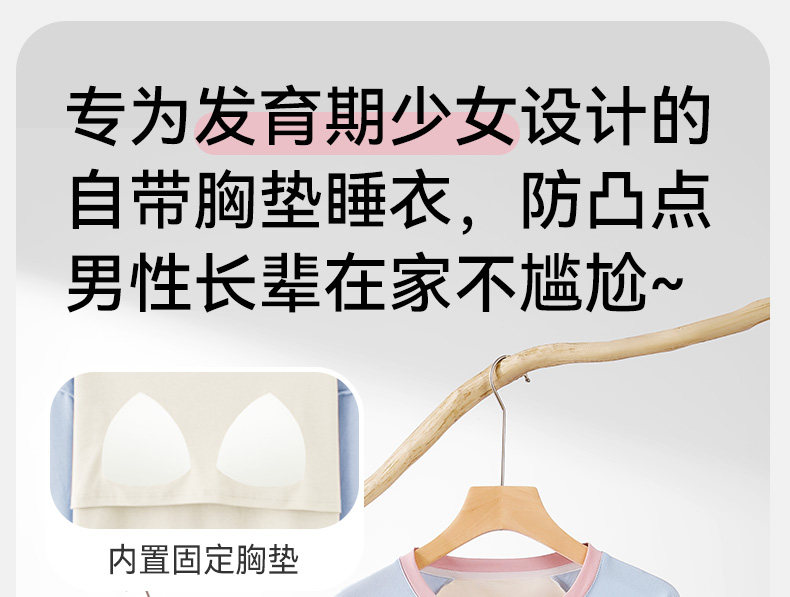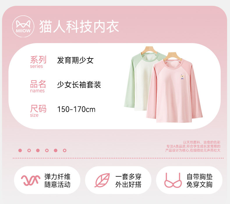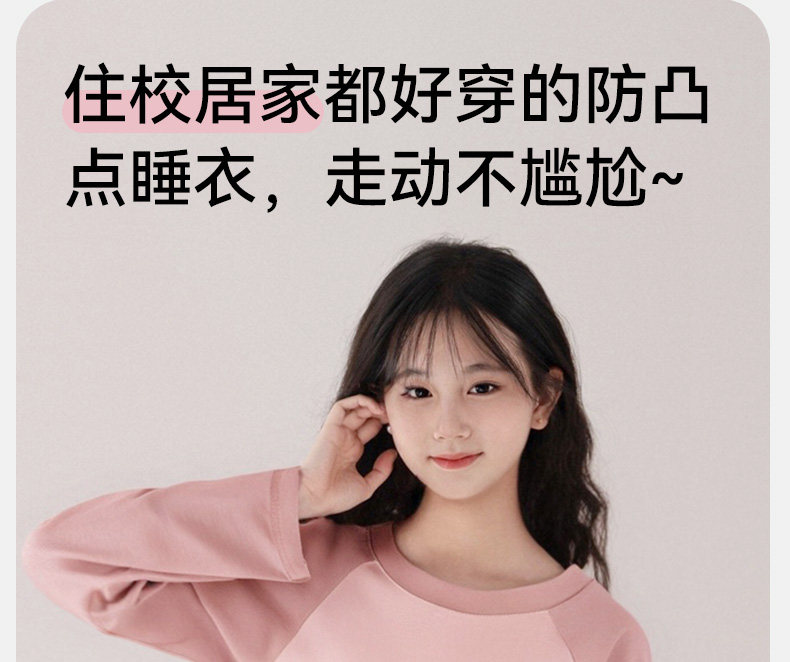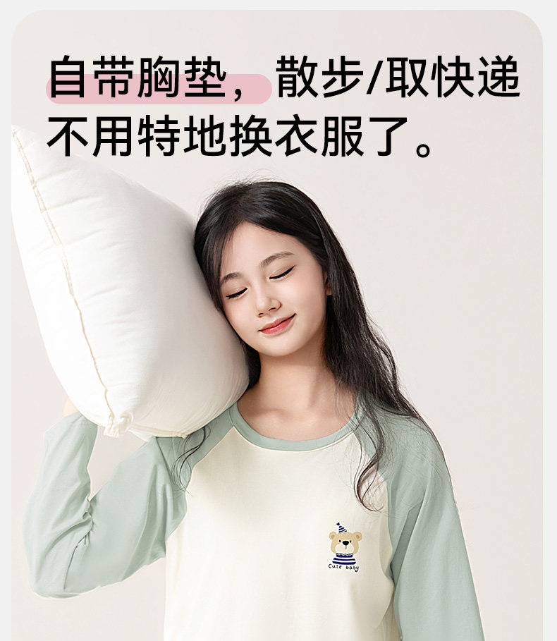猫人睡衣女孩初中学生纯棉春秋长袖家居服100全棉a类带胸垫防凸点