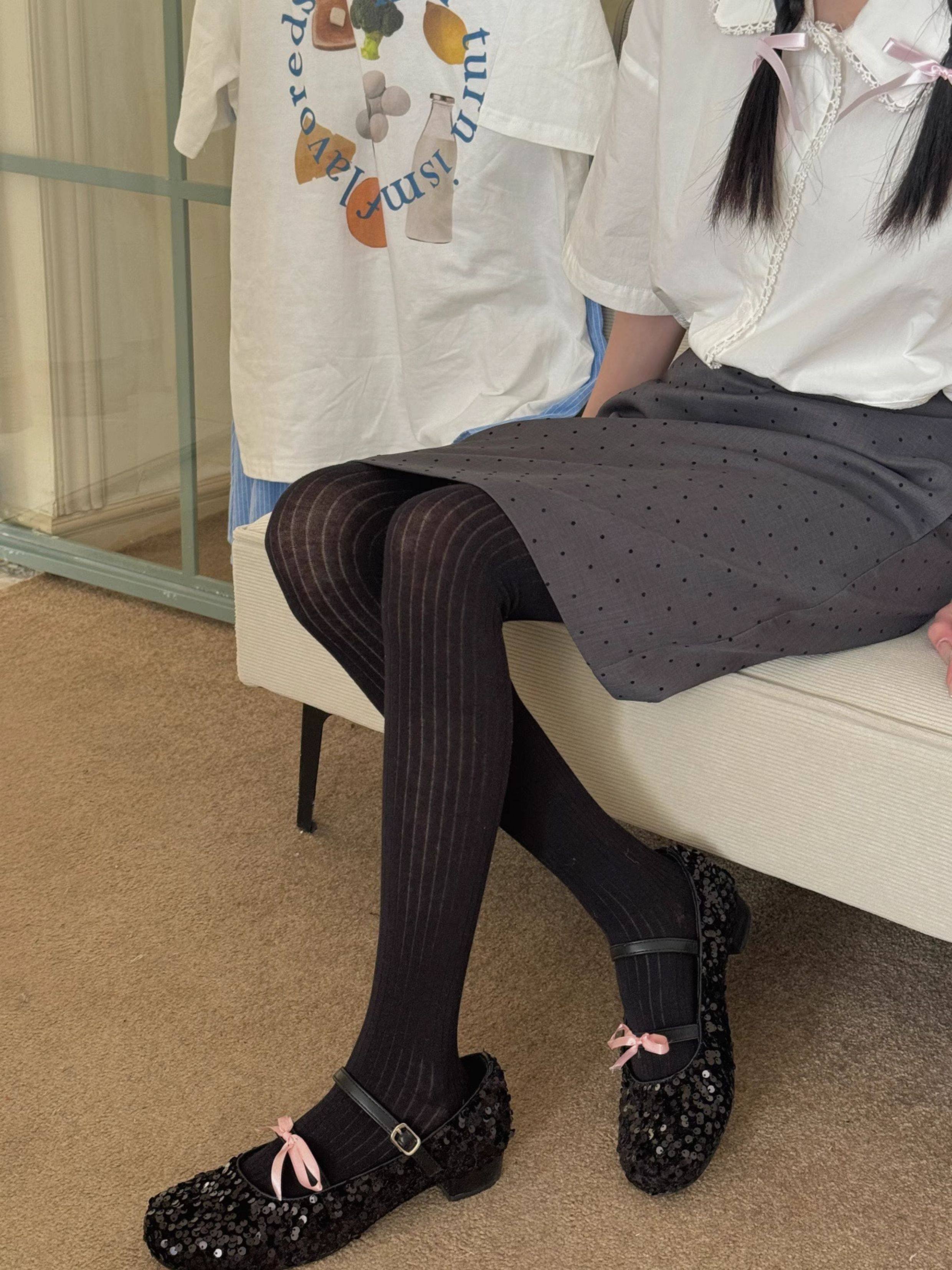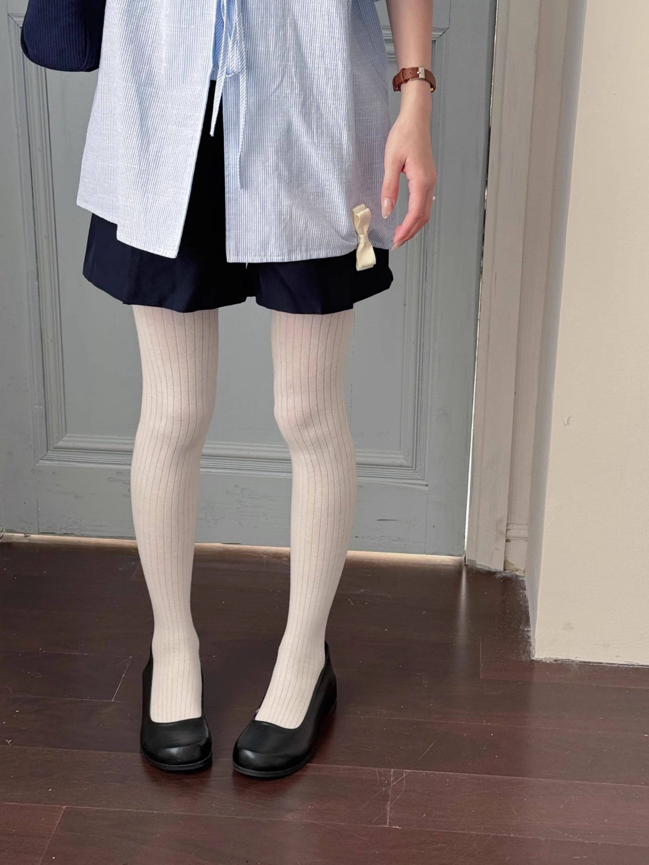 Miu Series Women's Anti-Snagging, Slight Compression, Slimming, Non-Slip, Slightly Sheer Pantyhose, Spring and Autumn Style, Vertical Striped Tights