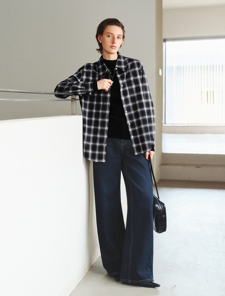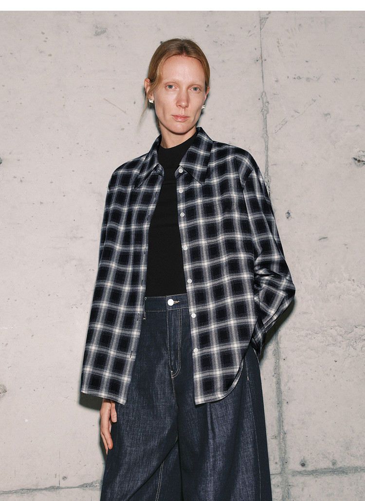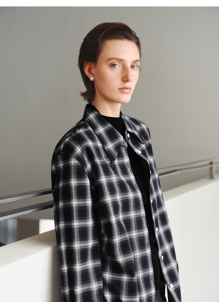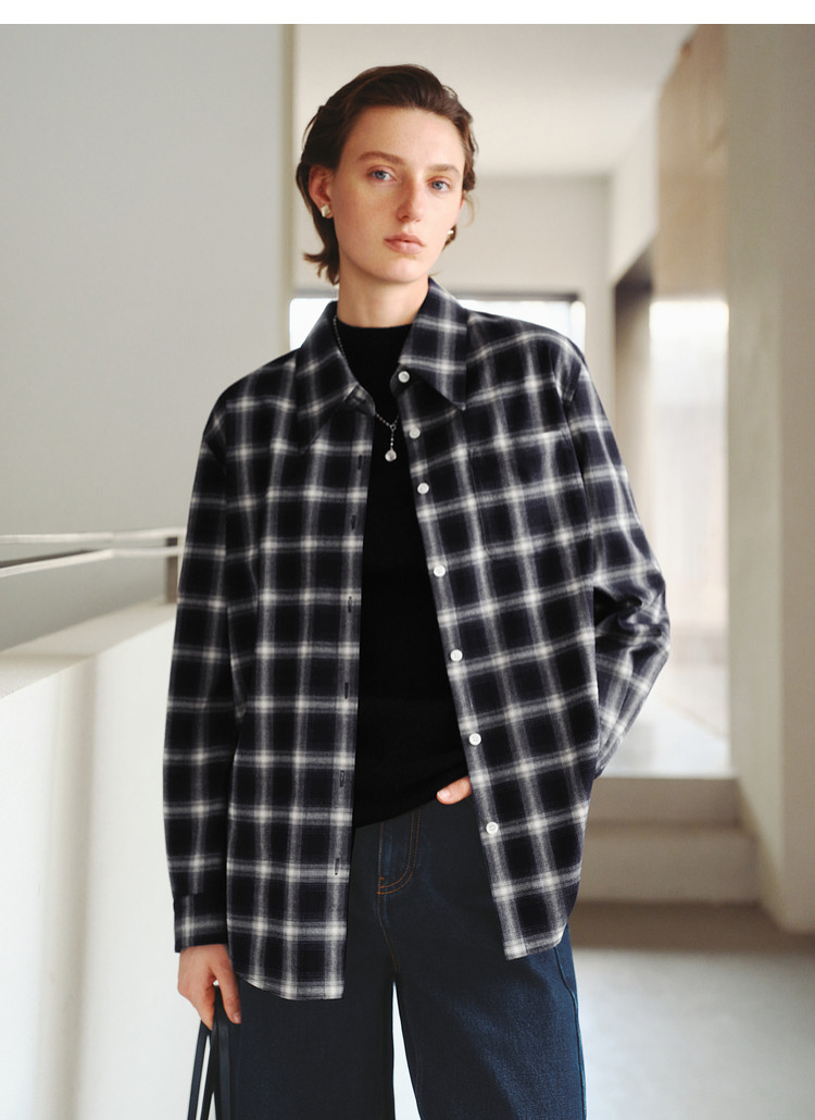 Mm Lemon Plaid Versatile Layered Shirt Top, Same Style as in Shopping Malls, 25 Autumn/Winter New Model 5Ga123021