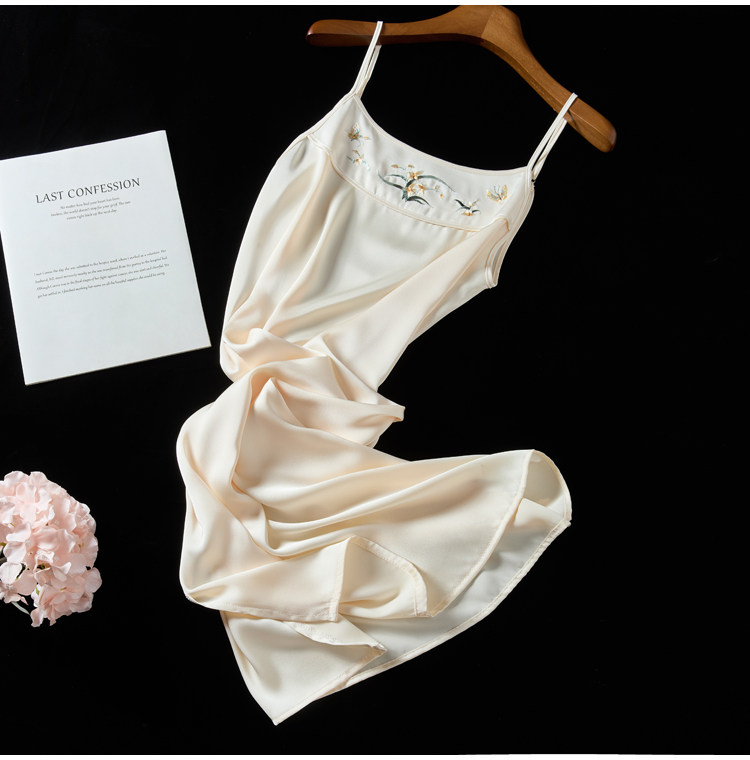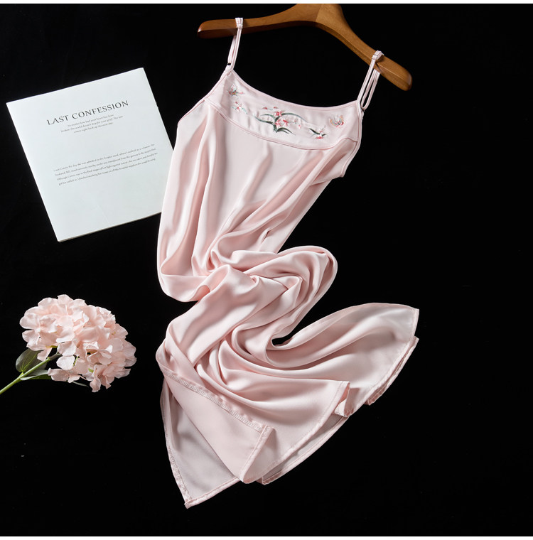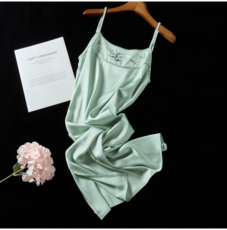苏绣睡衣睡裙女绣花家居服醋酸缎丝绸刺绣连衣裙中国风可外穿吊带
