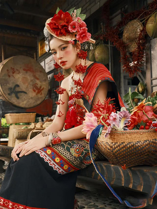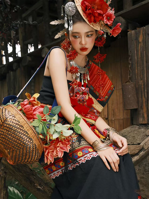【夏日新品】布朗族服饰西双版纳重工刺绣少数民族特色贵州旅拍