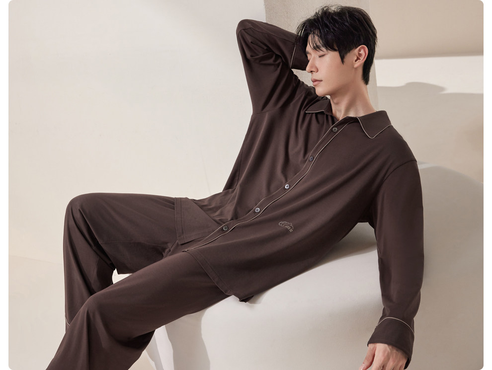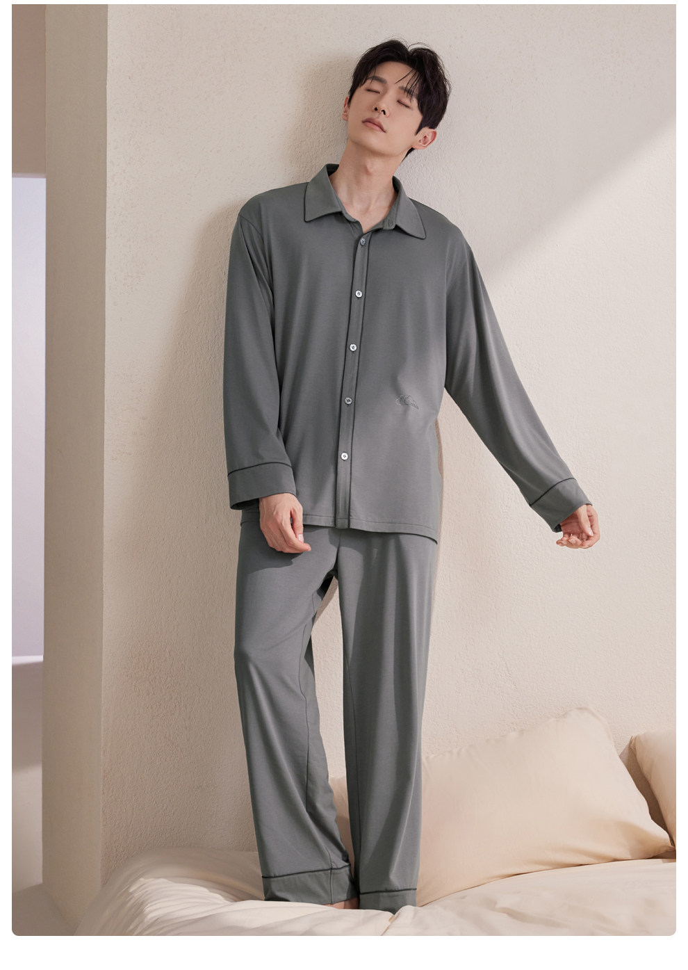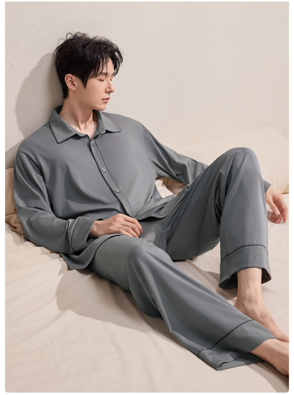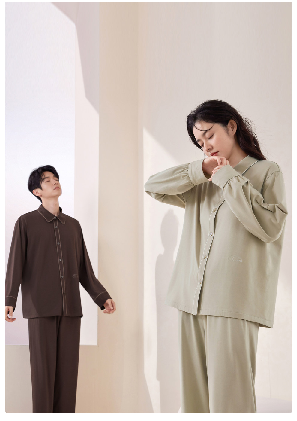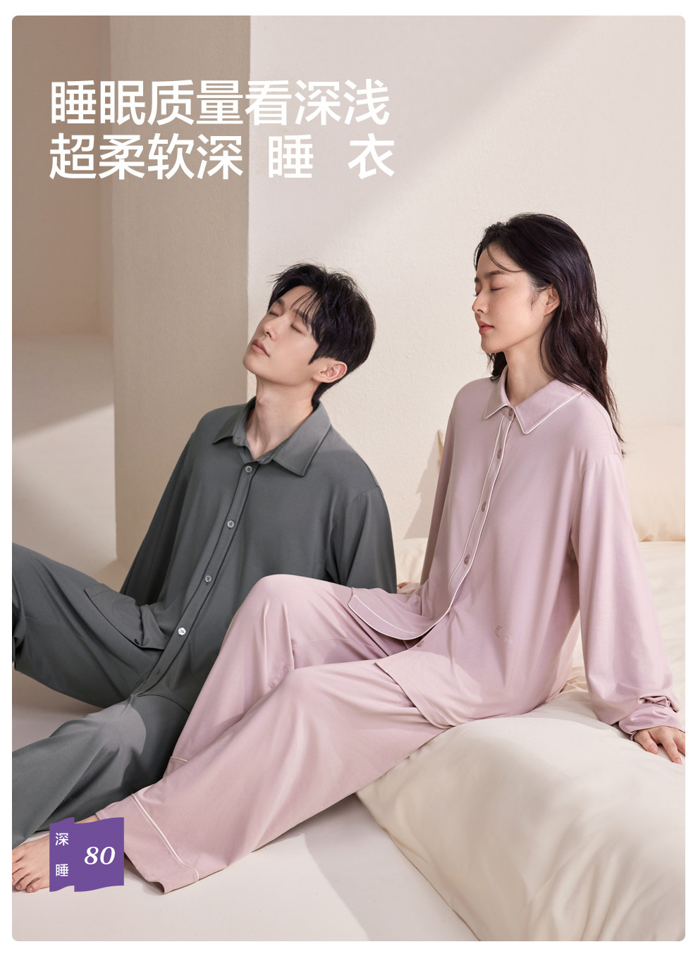 Jingyun [Deep Sleepwear 80] Ultra-Soft Silk-Cotton Couple Pajamas for Women, Spring and Autumn Anti-Mite Loungewear for Men
