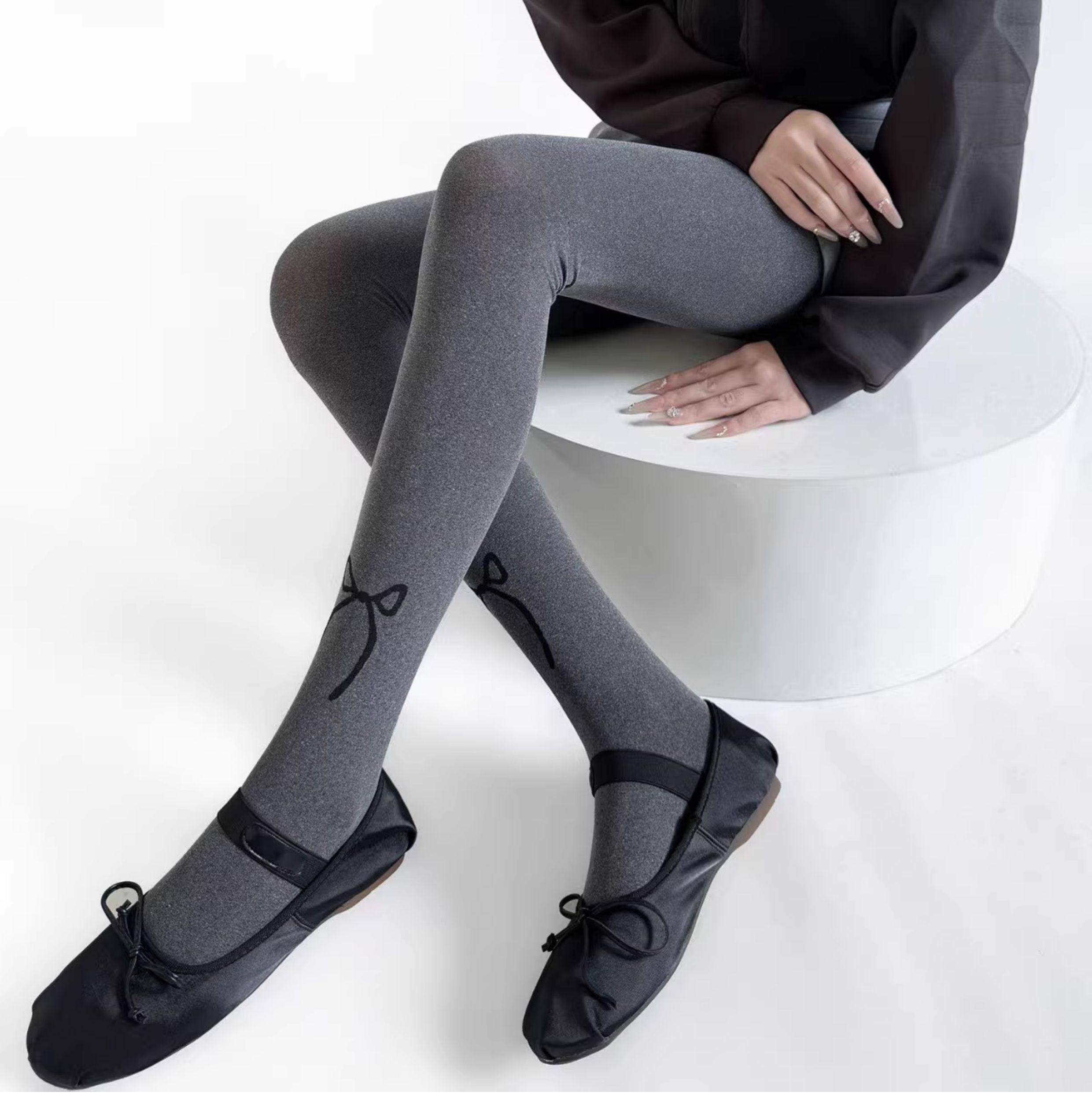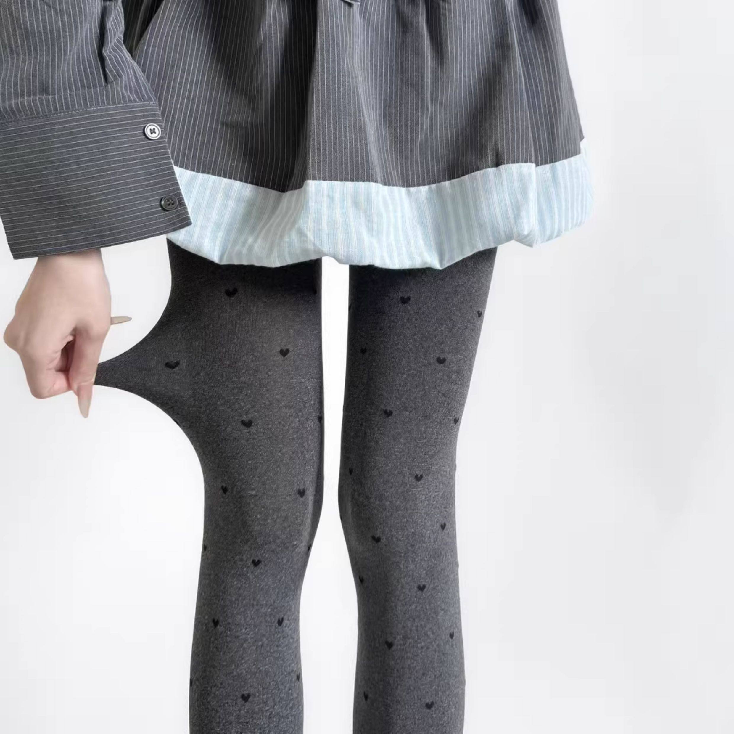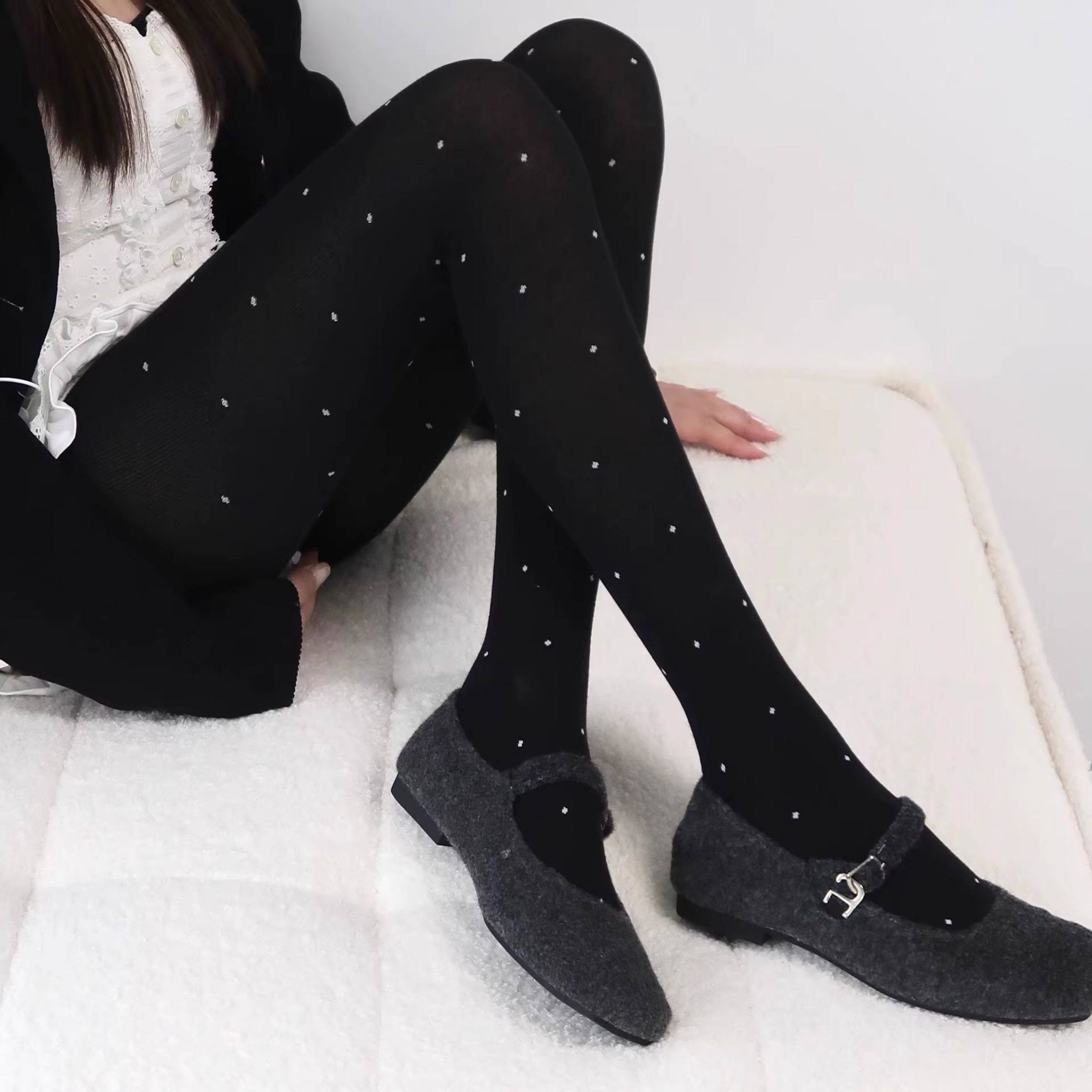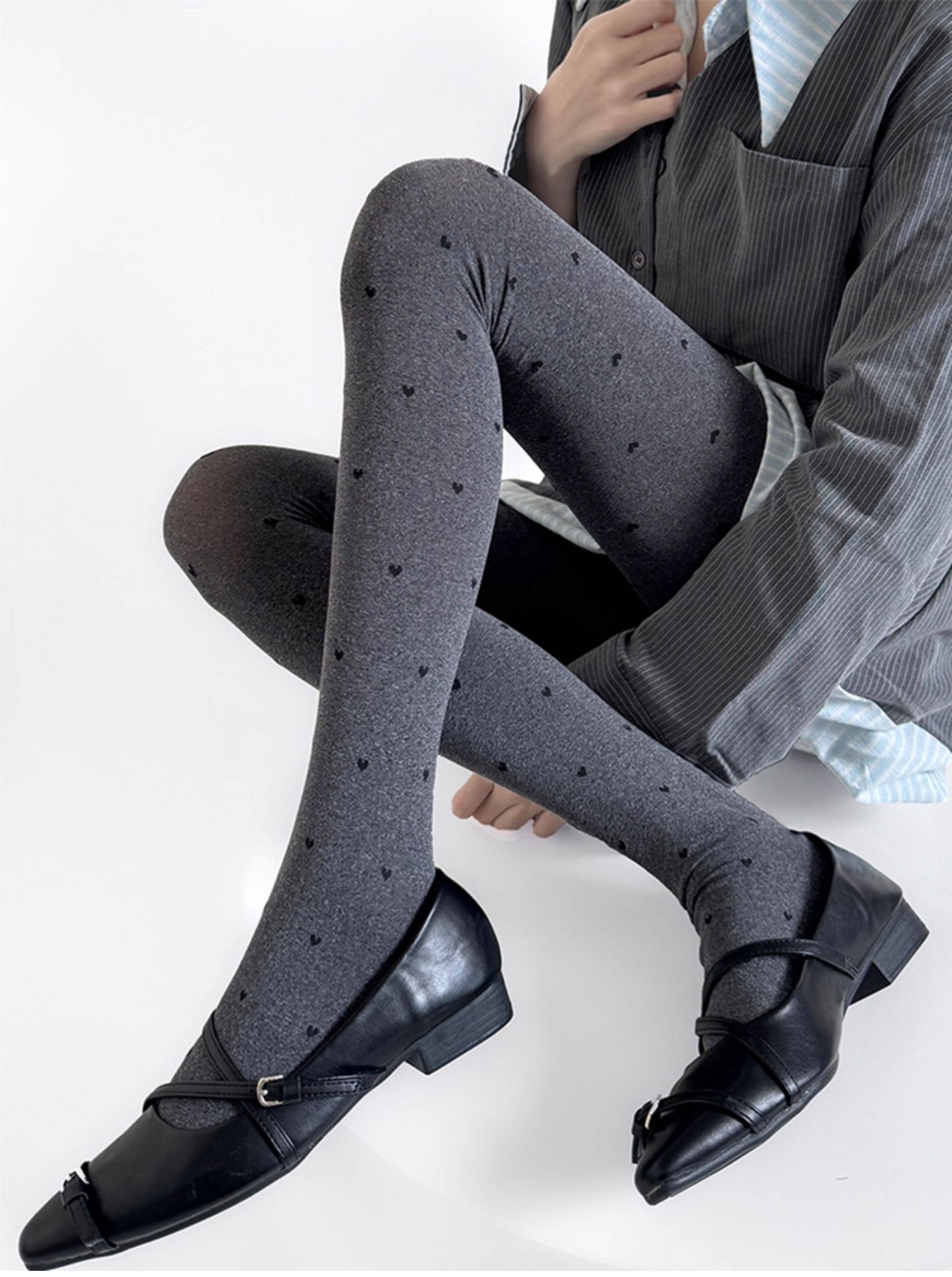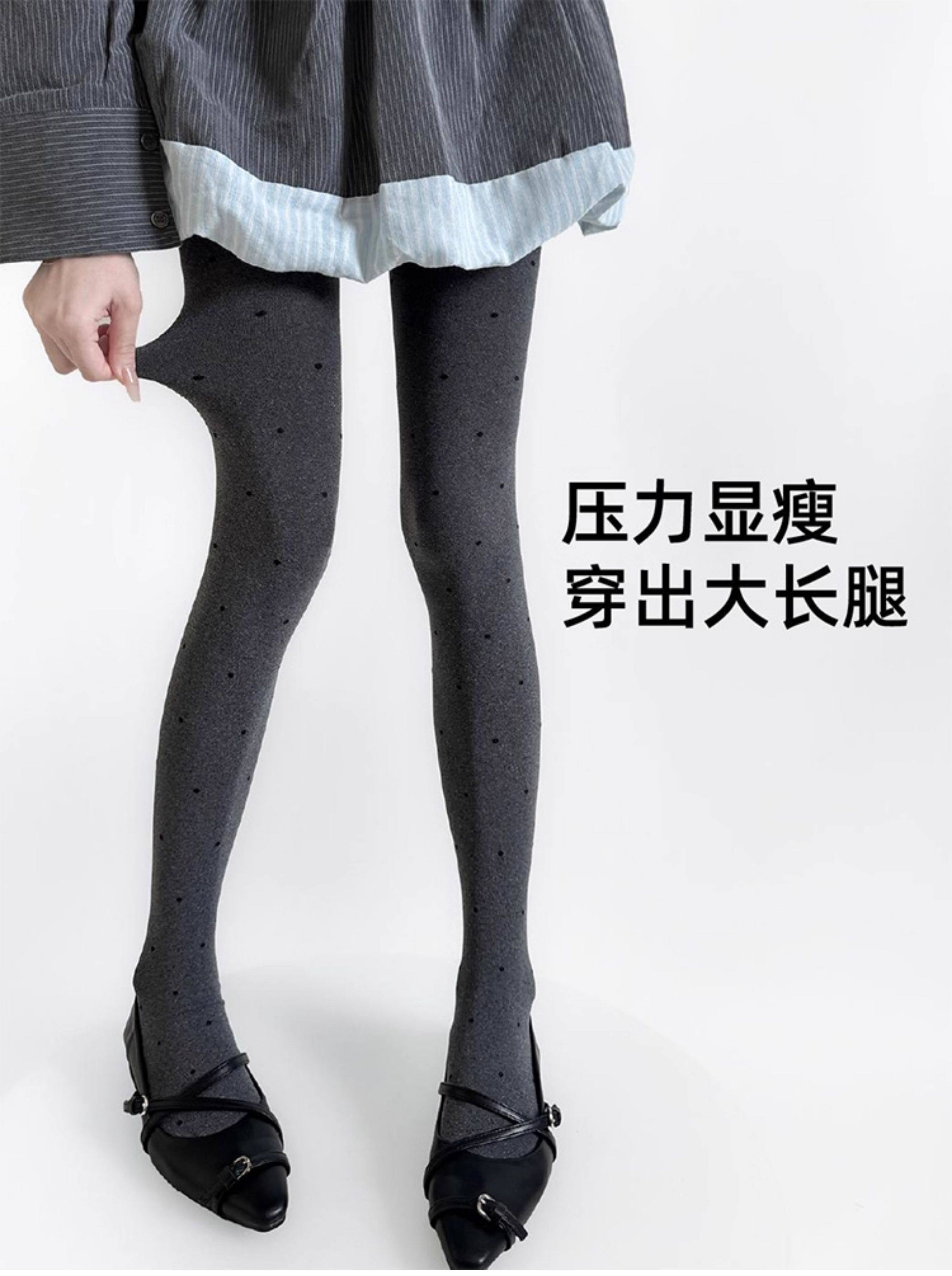 Gray Polka Dot Tights for Women, Spring and Autumn Thin Style, Retro Round Dot Gray Series, Outerwear Leggings, Versatile and Slimming