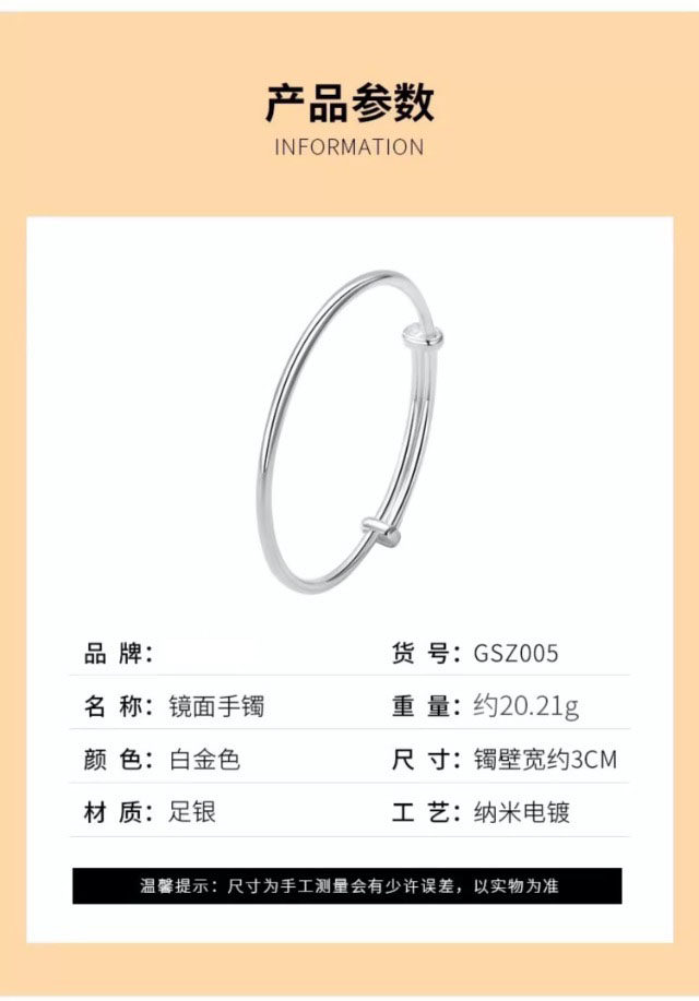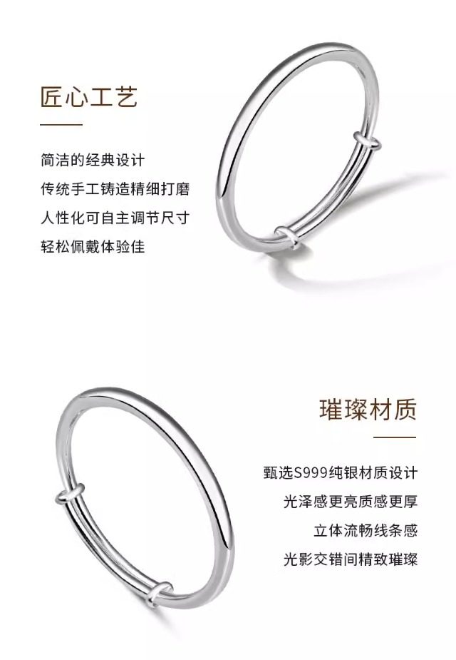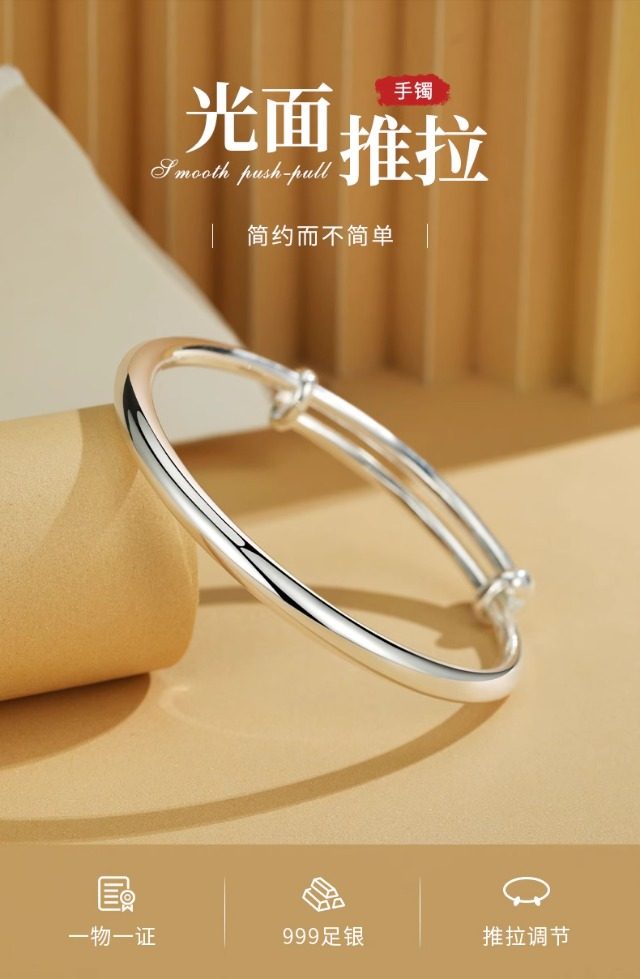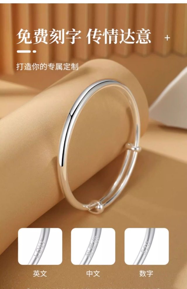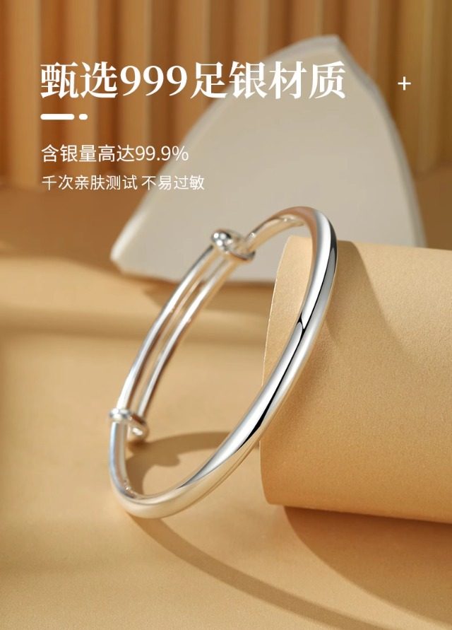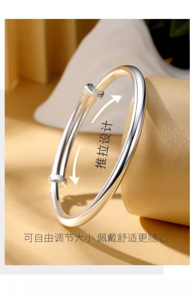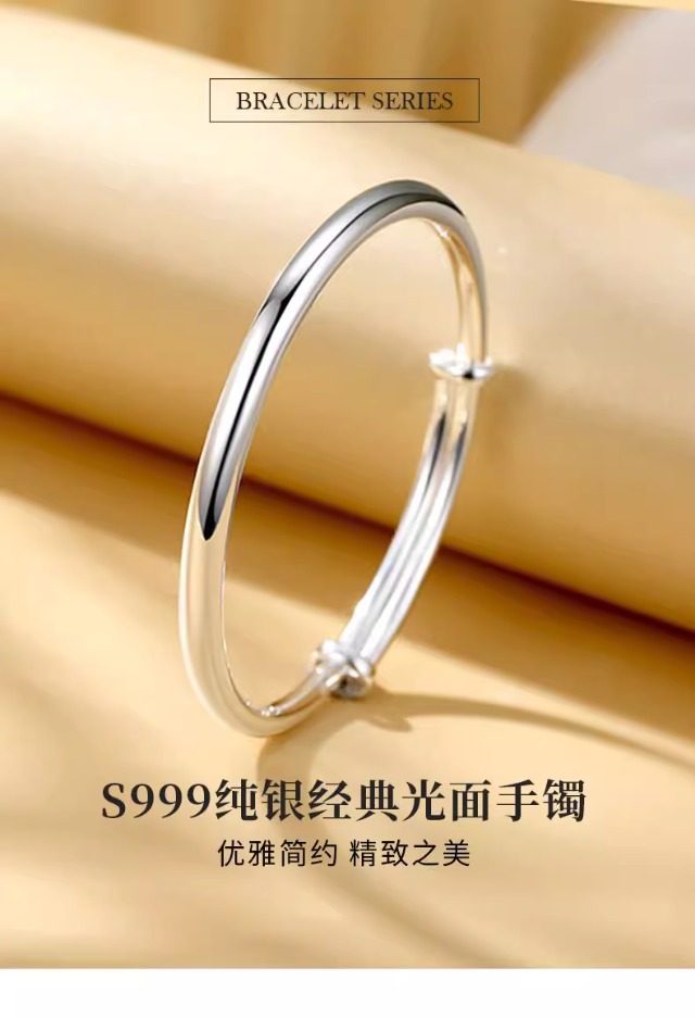 S999纯银手镯女高级精致感素圈光面实心年轻款镯子生日礼物送女友