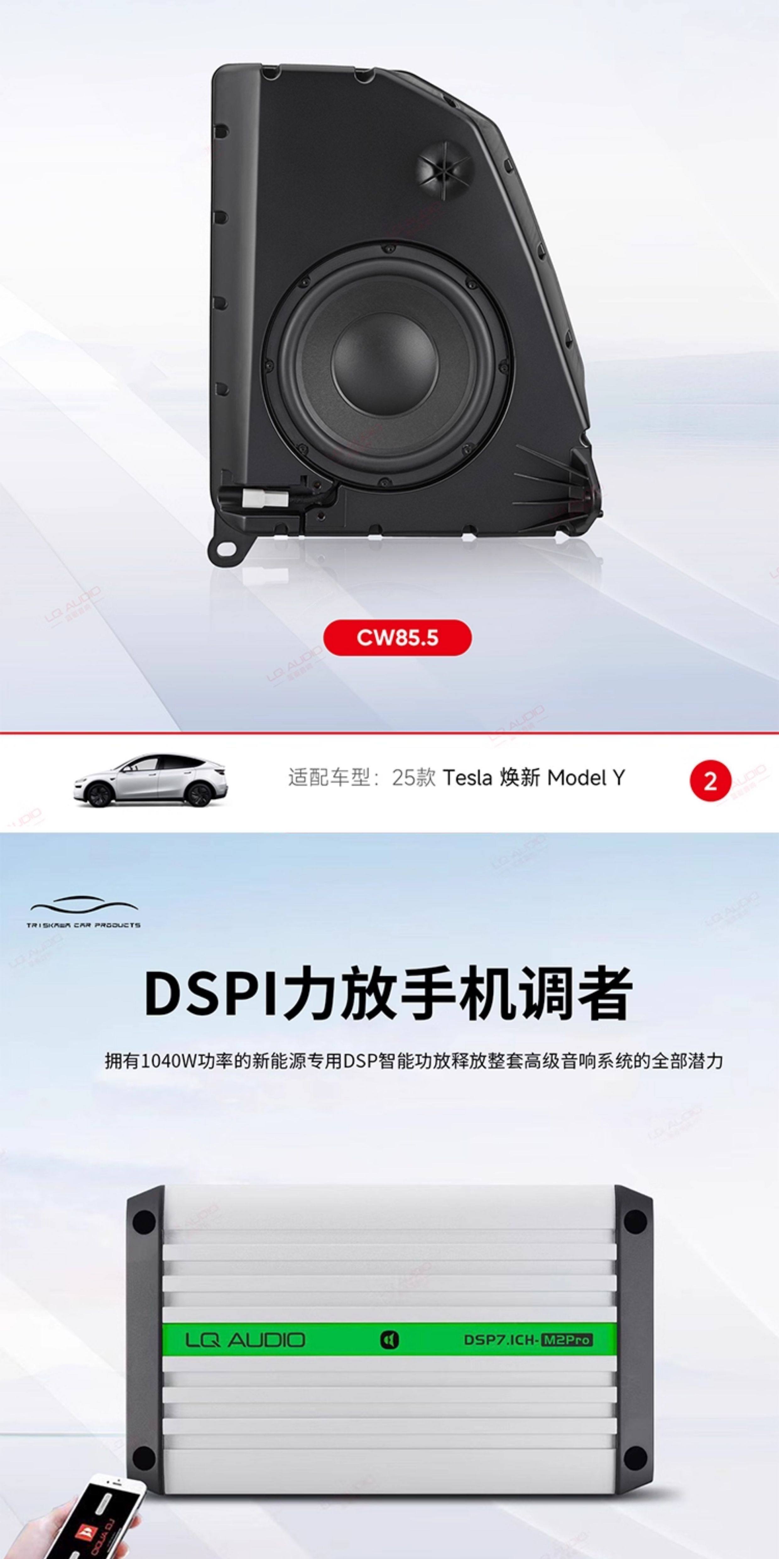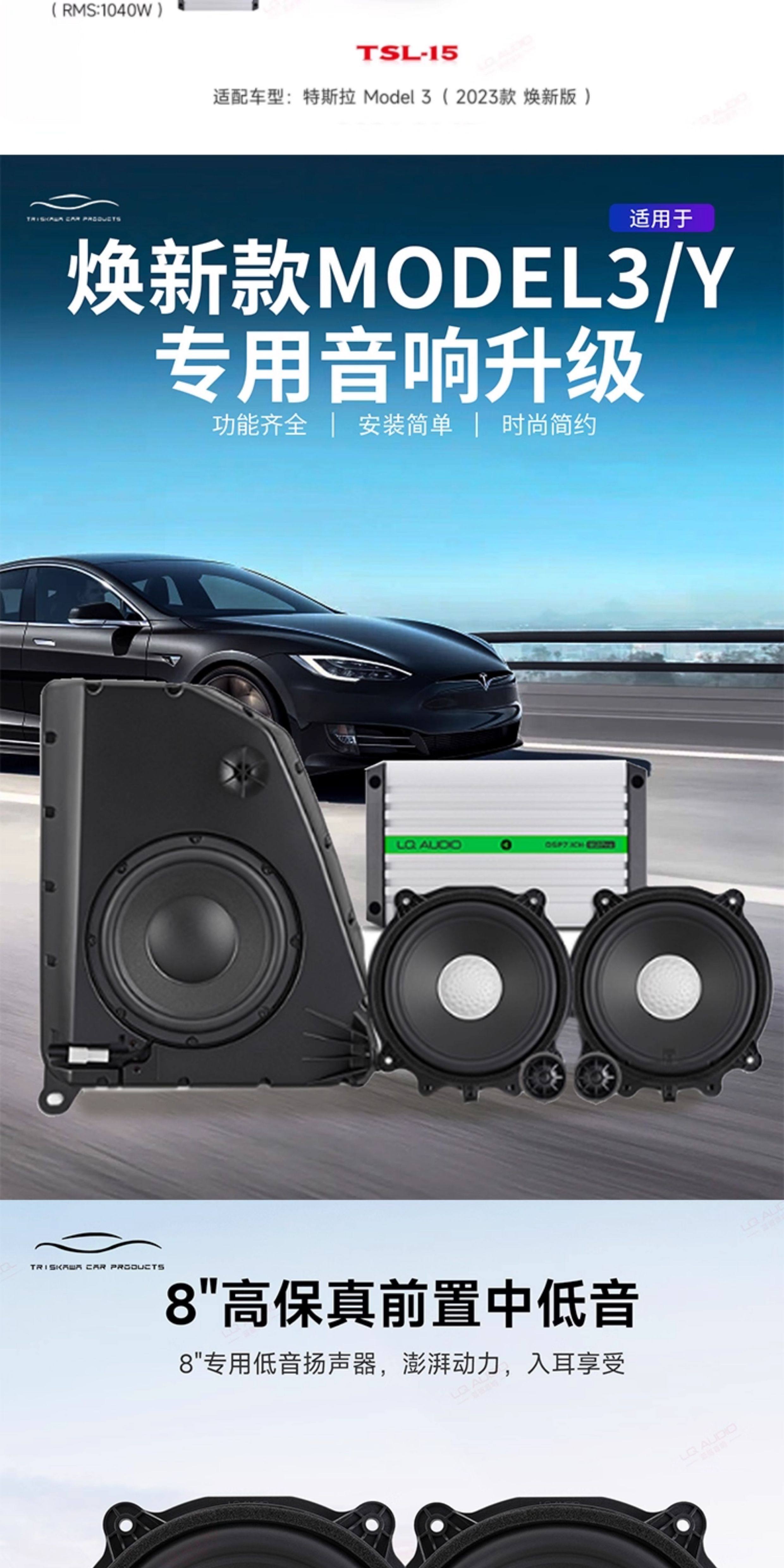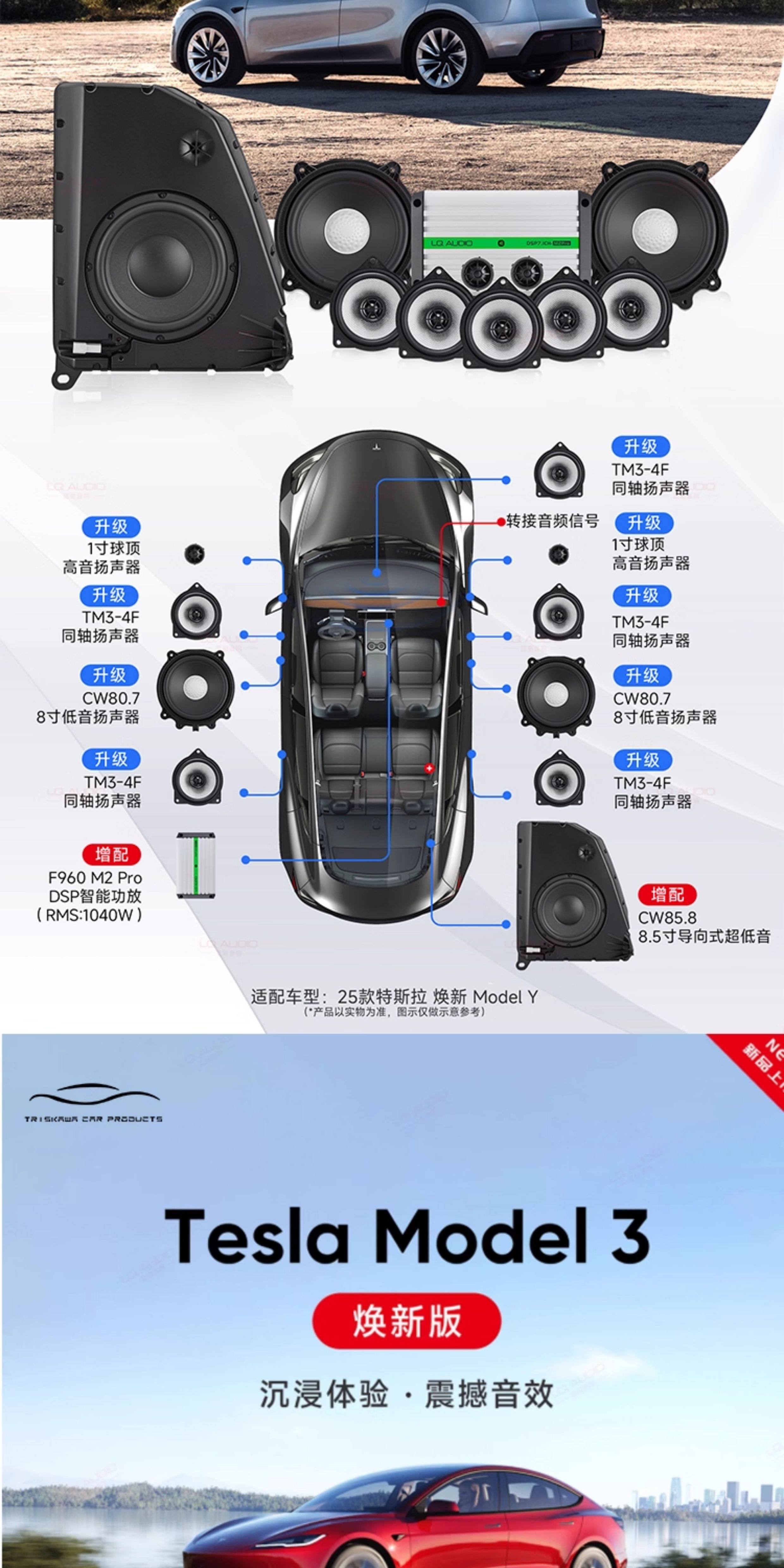 适用特斯拉焕新款Model3Y蓝驱音响喇叭激活线DSP功放升级专用改装