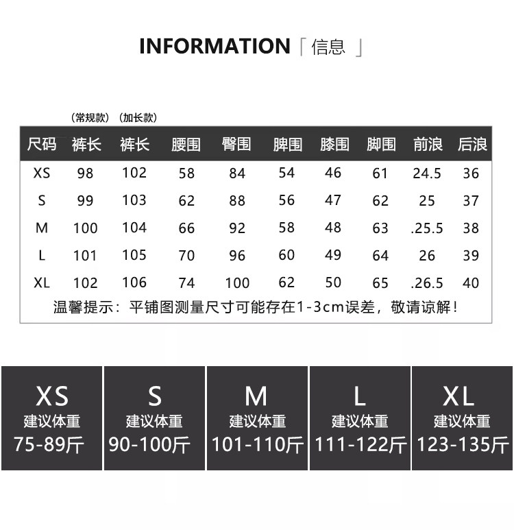 Outseam (cm) 99 cm 101.5 cm 104 cm 106.5 cm 109 cm