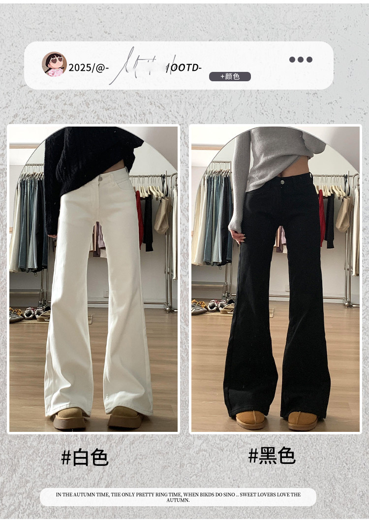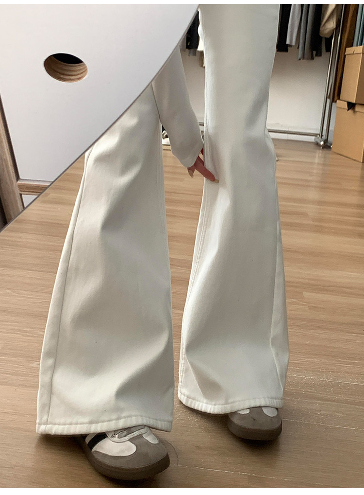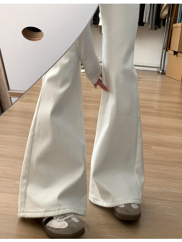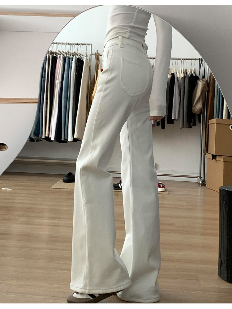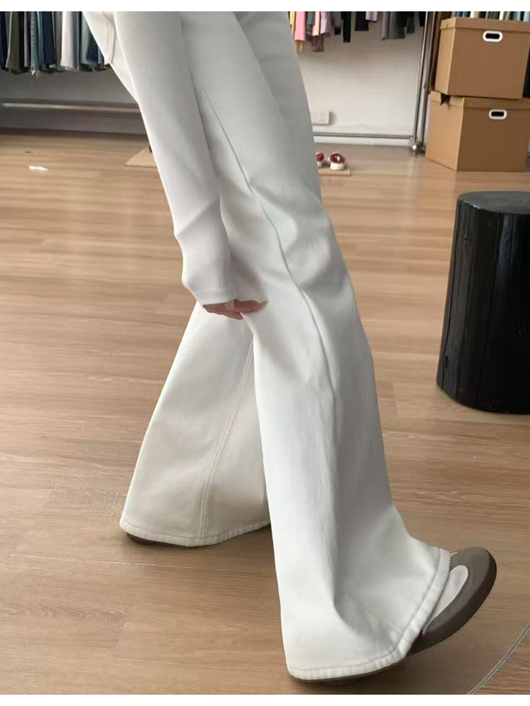 Weiße Bootcut-Jeans für Damen, Herbst 2025, neuer Stil, zierliche, schlanke, niedrige Taille, heiße, schmale, bodenlange Schlaghose für Mädchen