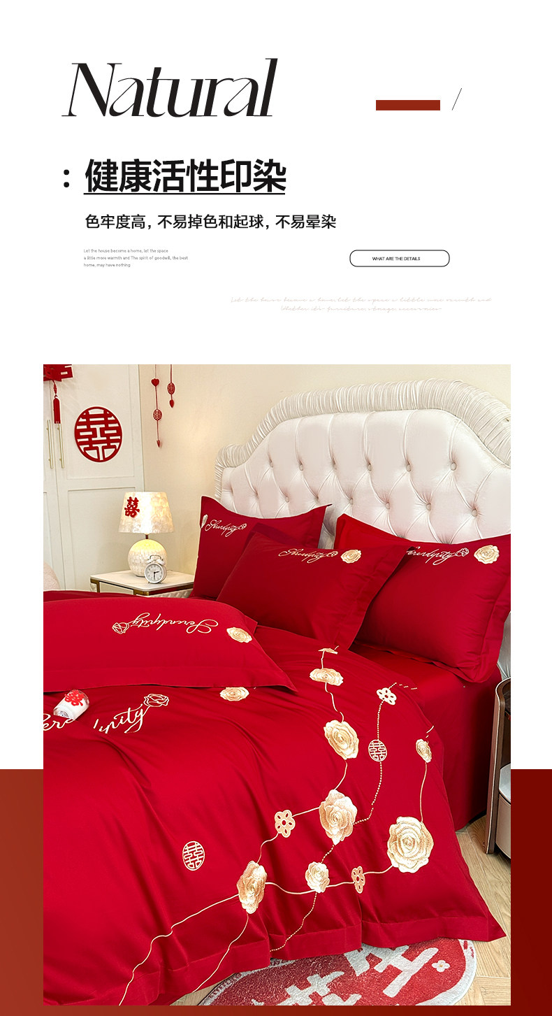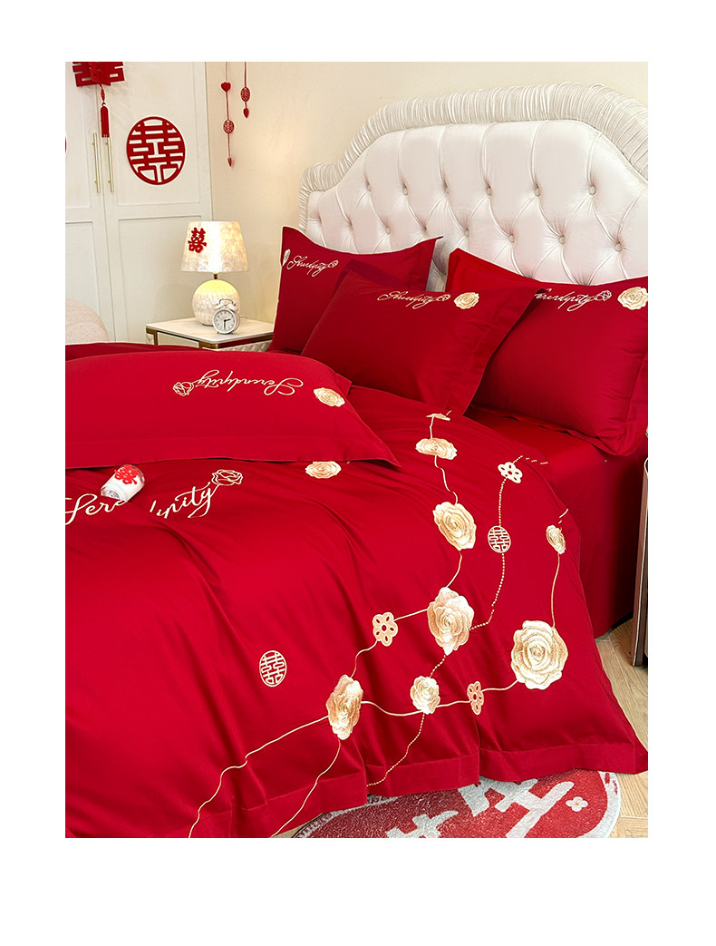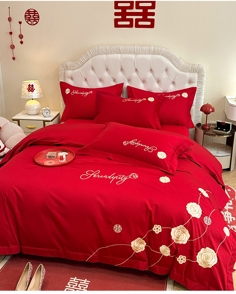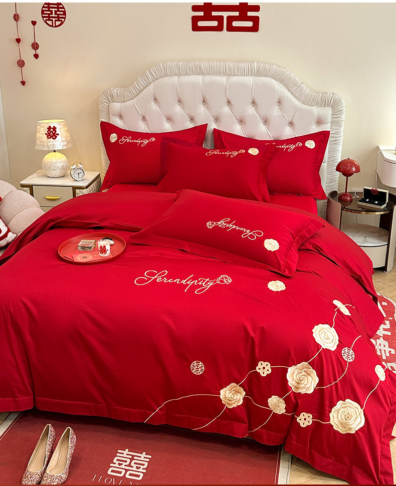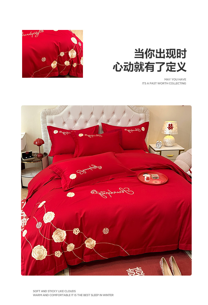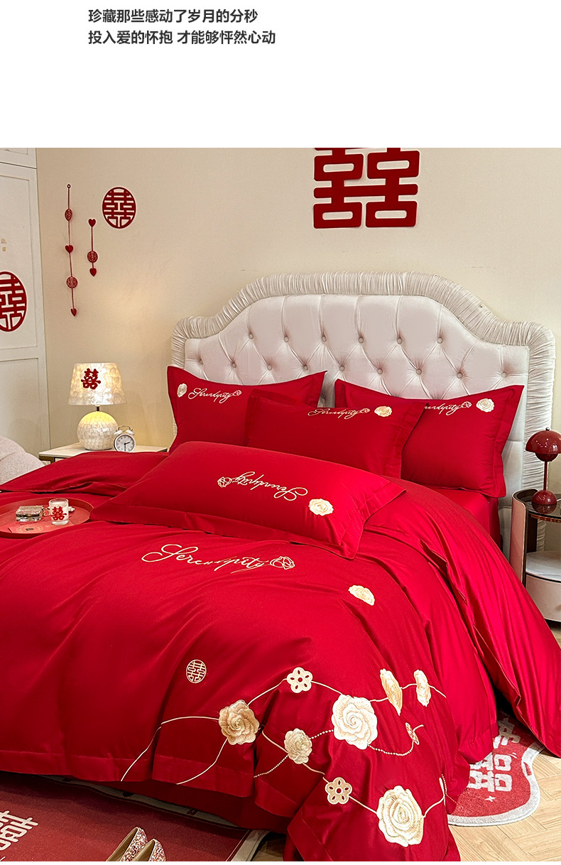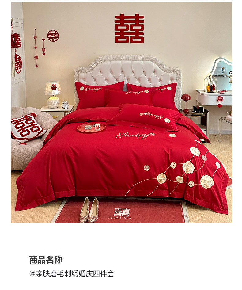 猫人婚庆床上四件套结婚亲肤棉床单被套2025新款红色新婚婚嫁床品