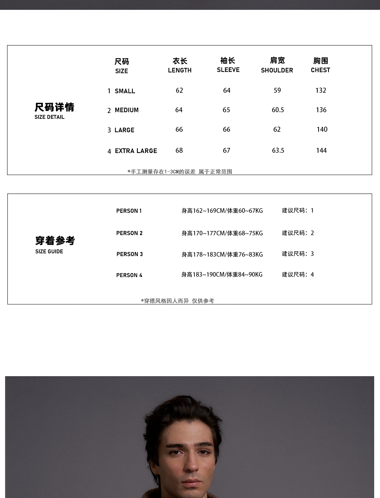 China (cm) 165 / 88-90 170 / 96-98 175 / 108-110 180 / 118-122 185 / 126-130