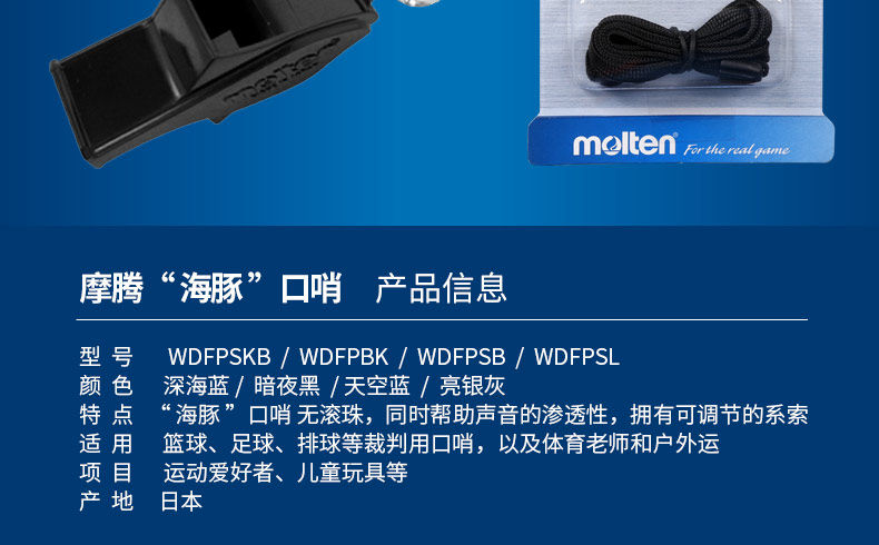 molten摩腾口哨篮球裁判哨子0080足球排球体育老师魔腾海豚哨0070
