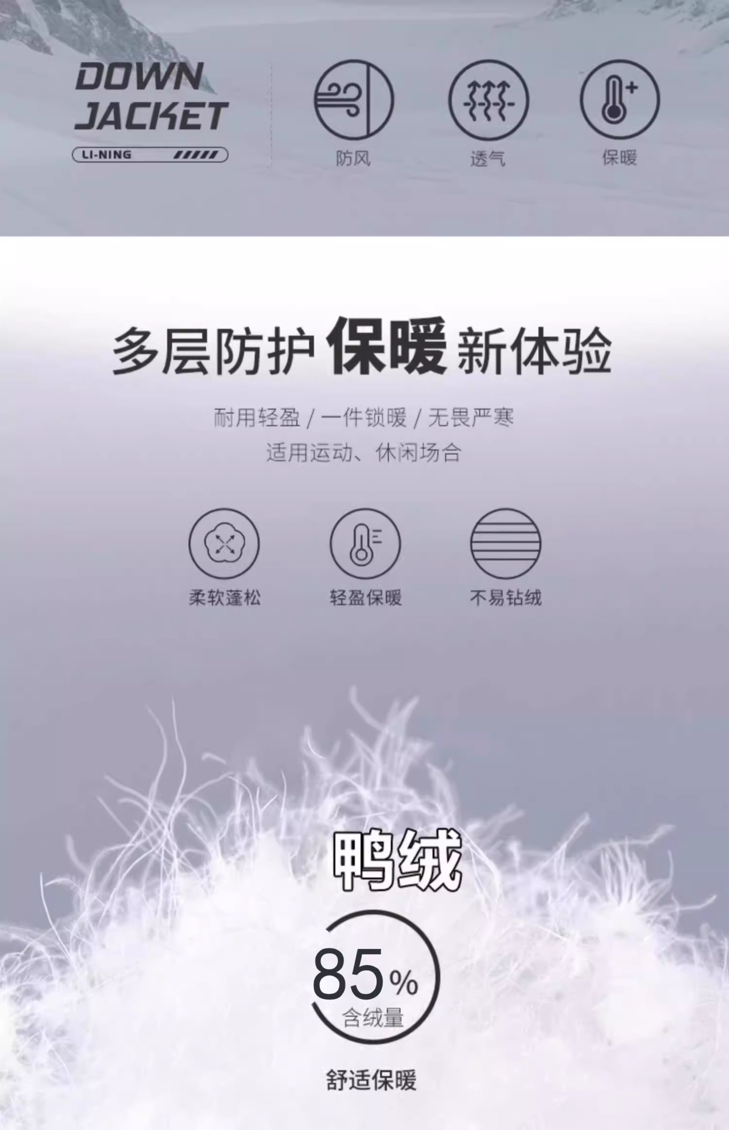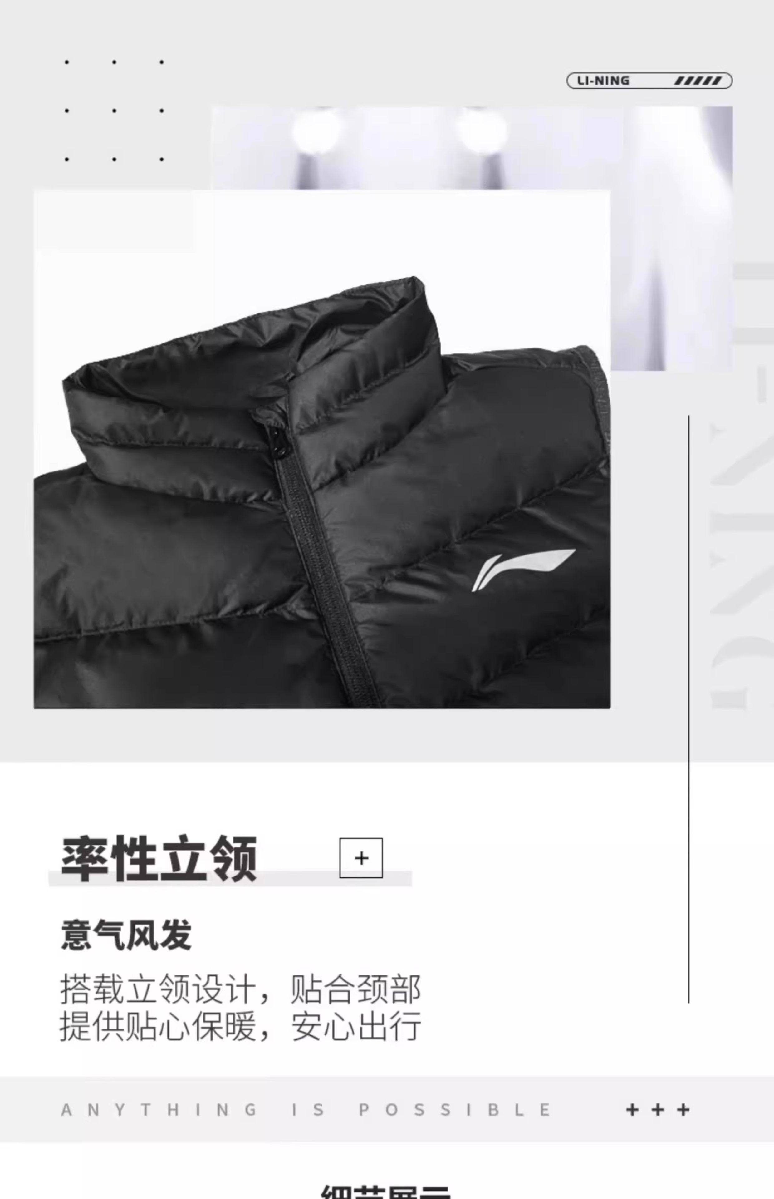 Мужской зимний пуховик Li Ning, новый, черный, с воротником-стойкой, на утином пуху, ветрозащитный, теплый, спортивный пуховик