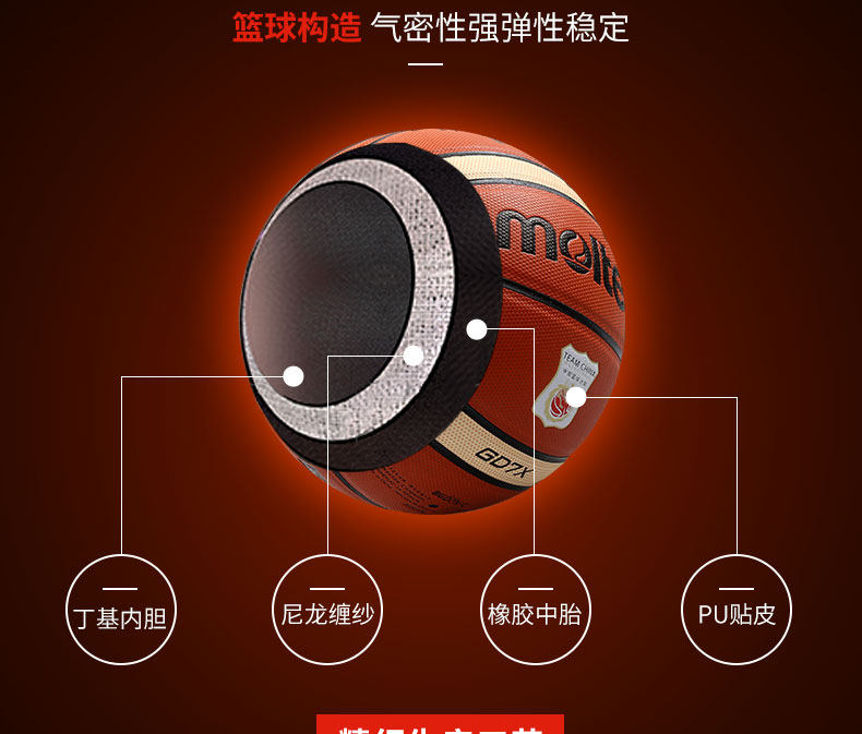[National Team Special Edition] Molten Basketball No. 7 Wear-Resistant Cement Floor Indoor Student Basketball Gd7X