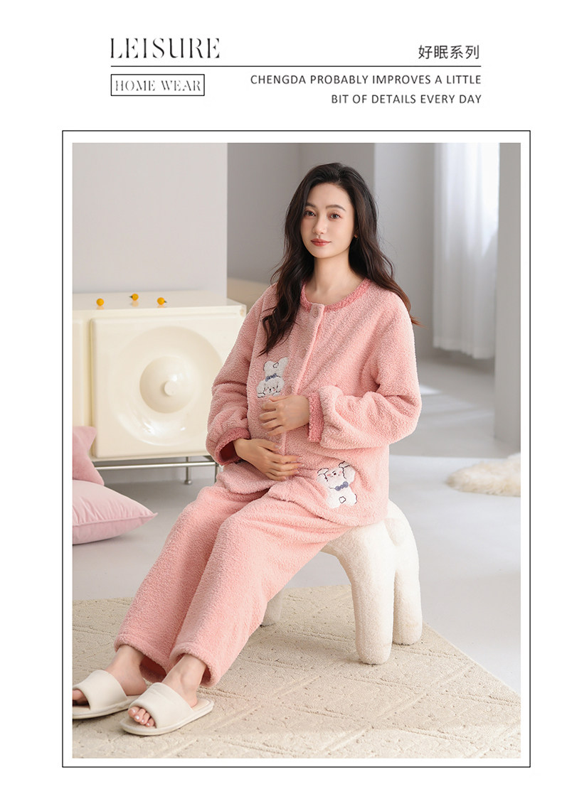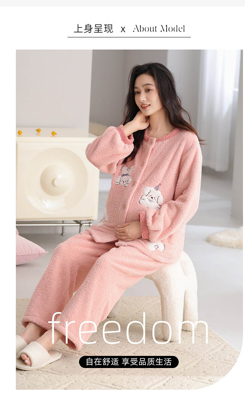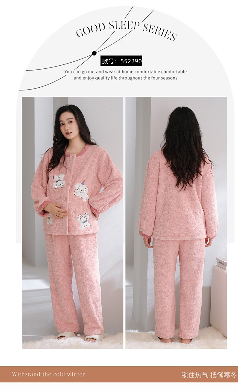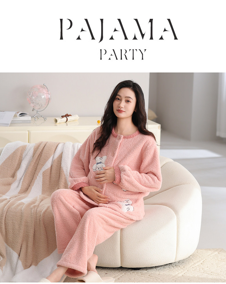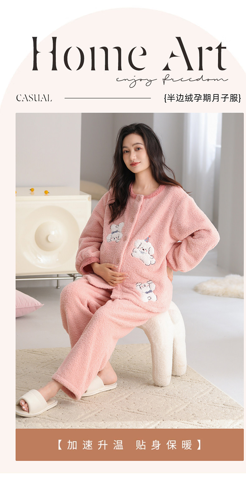 Half-Velvet Maternity Pajamas for Autumn and Winter, Thickened Version for Postpartum Nursing, Maternity Sleepwear for Winter, Suitable for Wearing Outside during Pregnancy, Home Wear