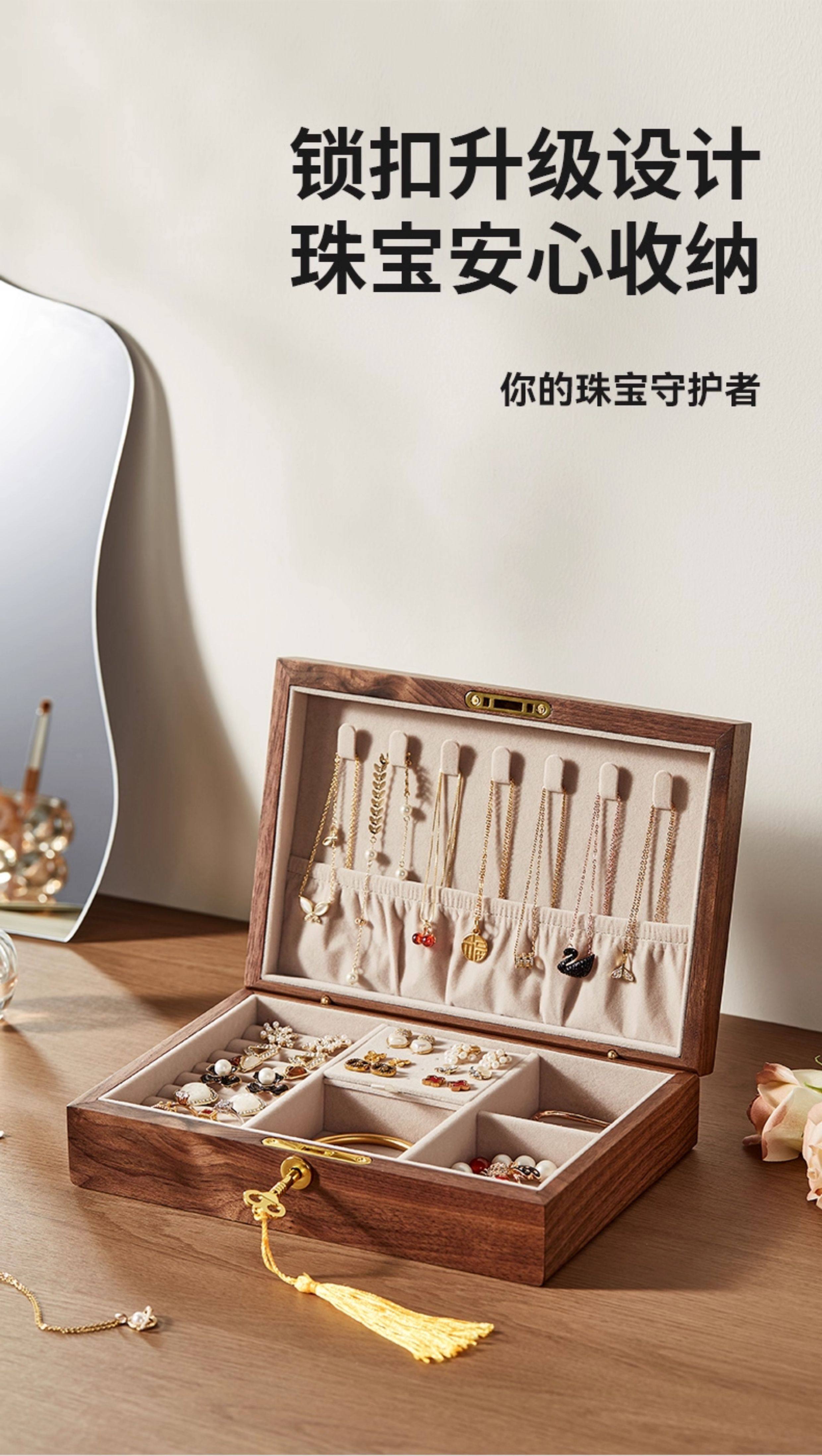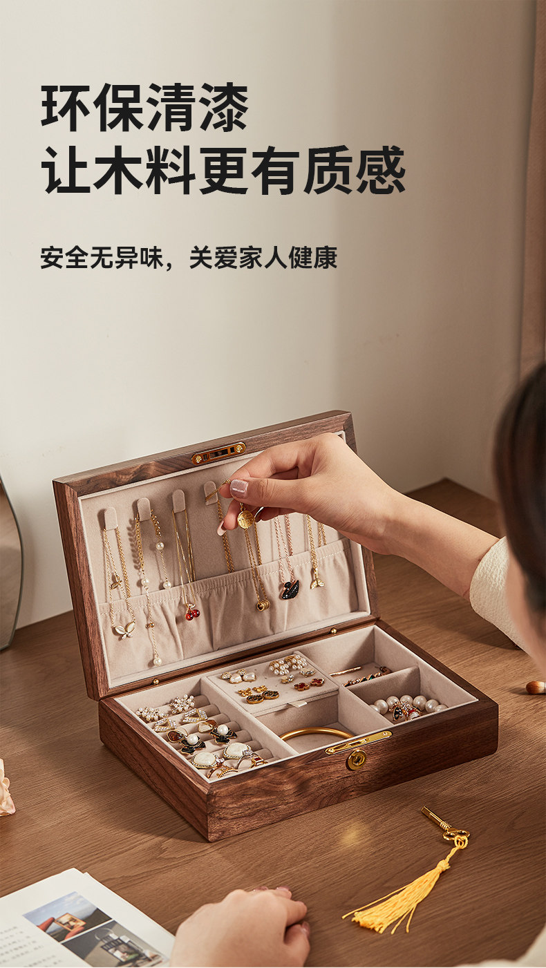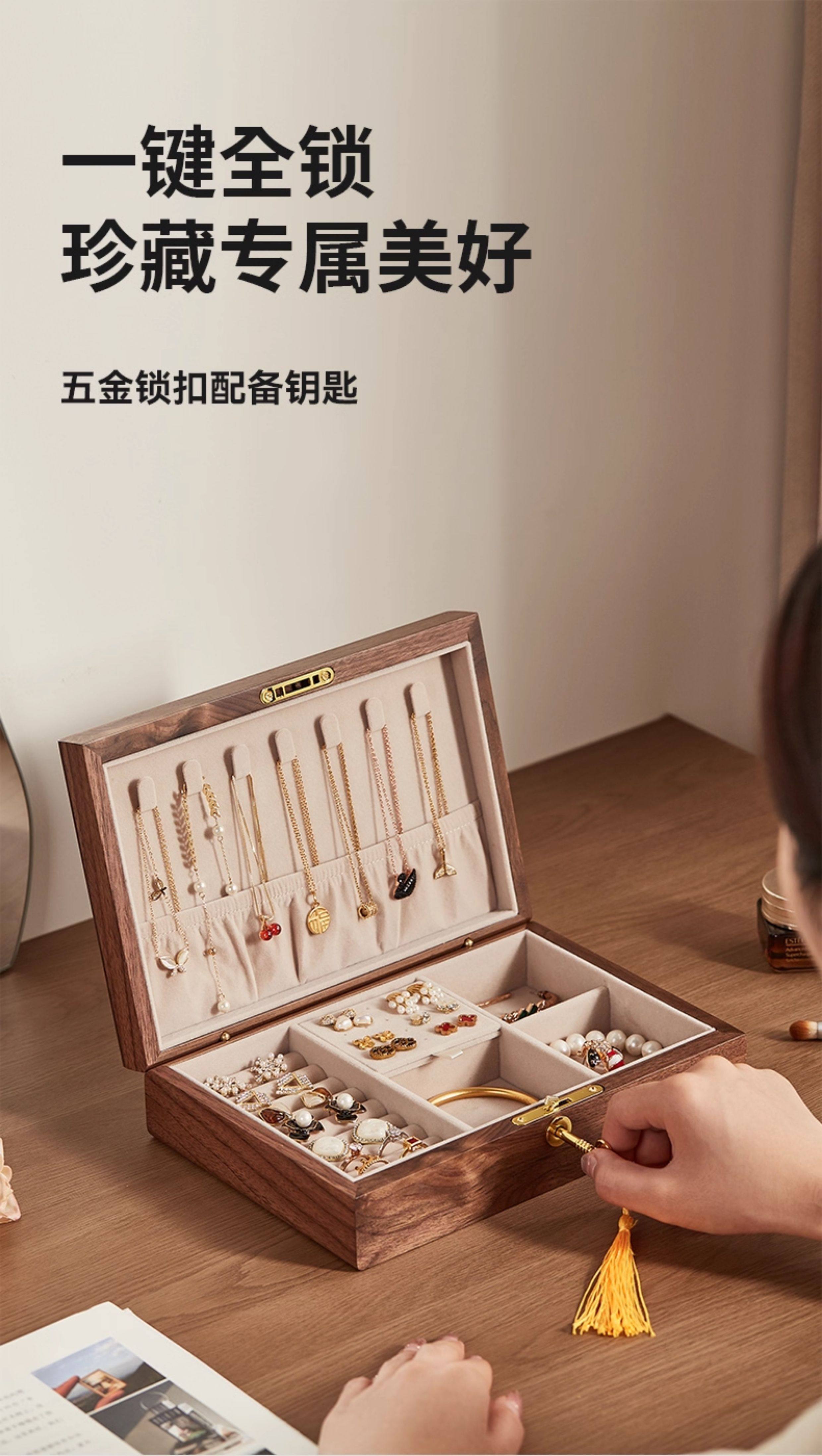 Color Classification Walnut Single Layer Jewelry Box,Mahogany Single-Layer Jewelry Box (Walnut Color),[with Lock] Walnut Single-Layer Jewelry Box,Walnut Double-Layer Jewelry Box [with Tray]