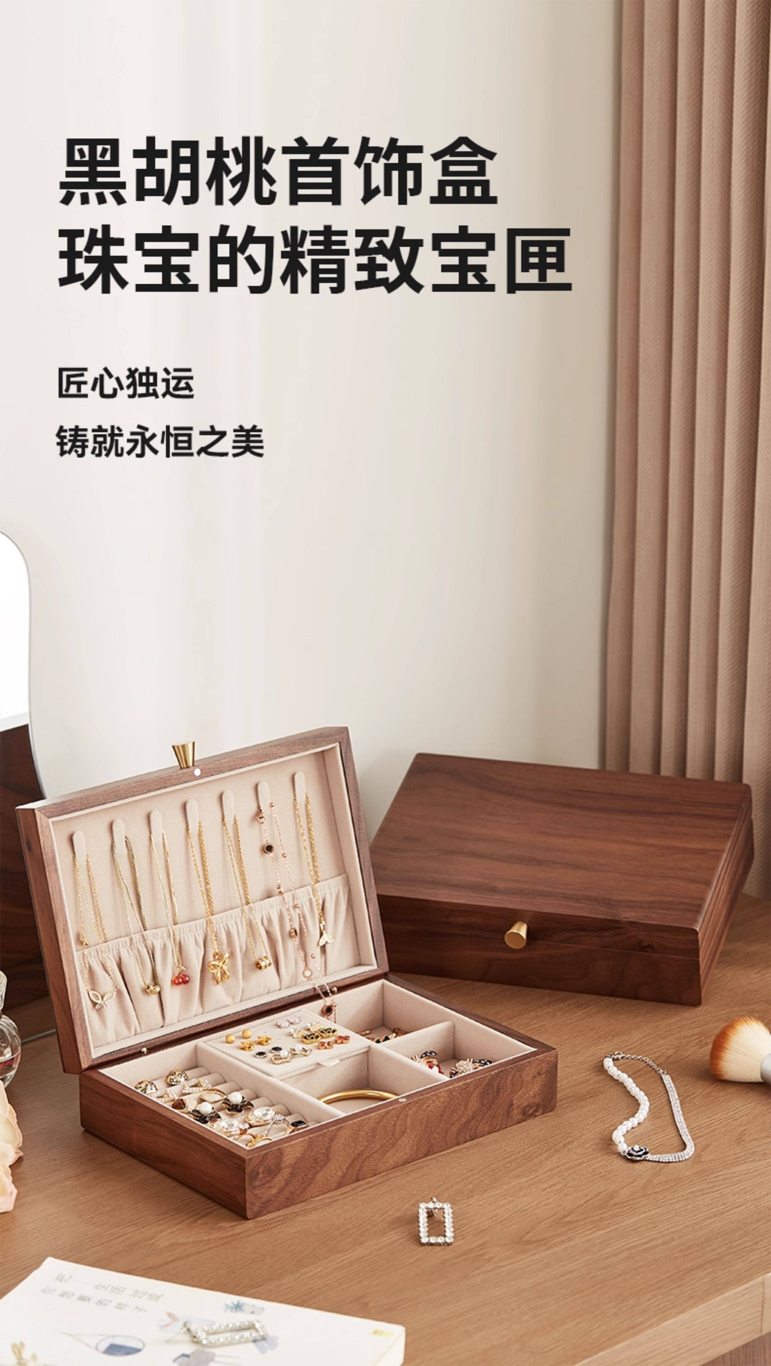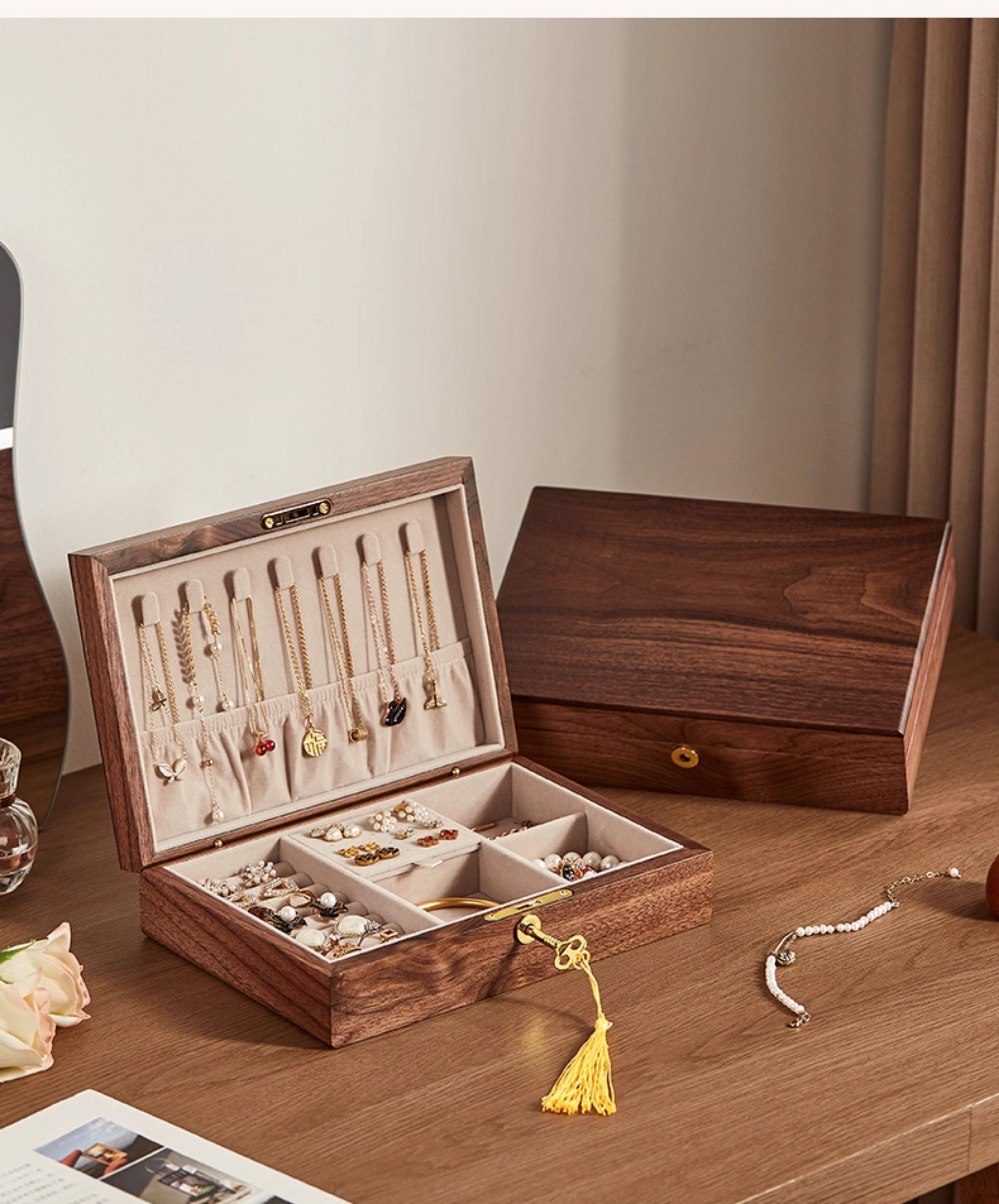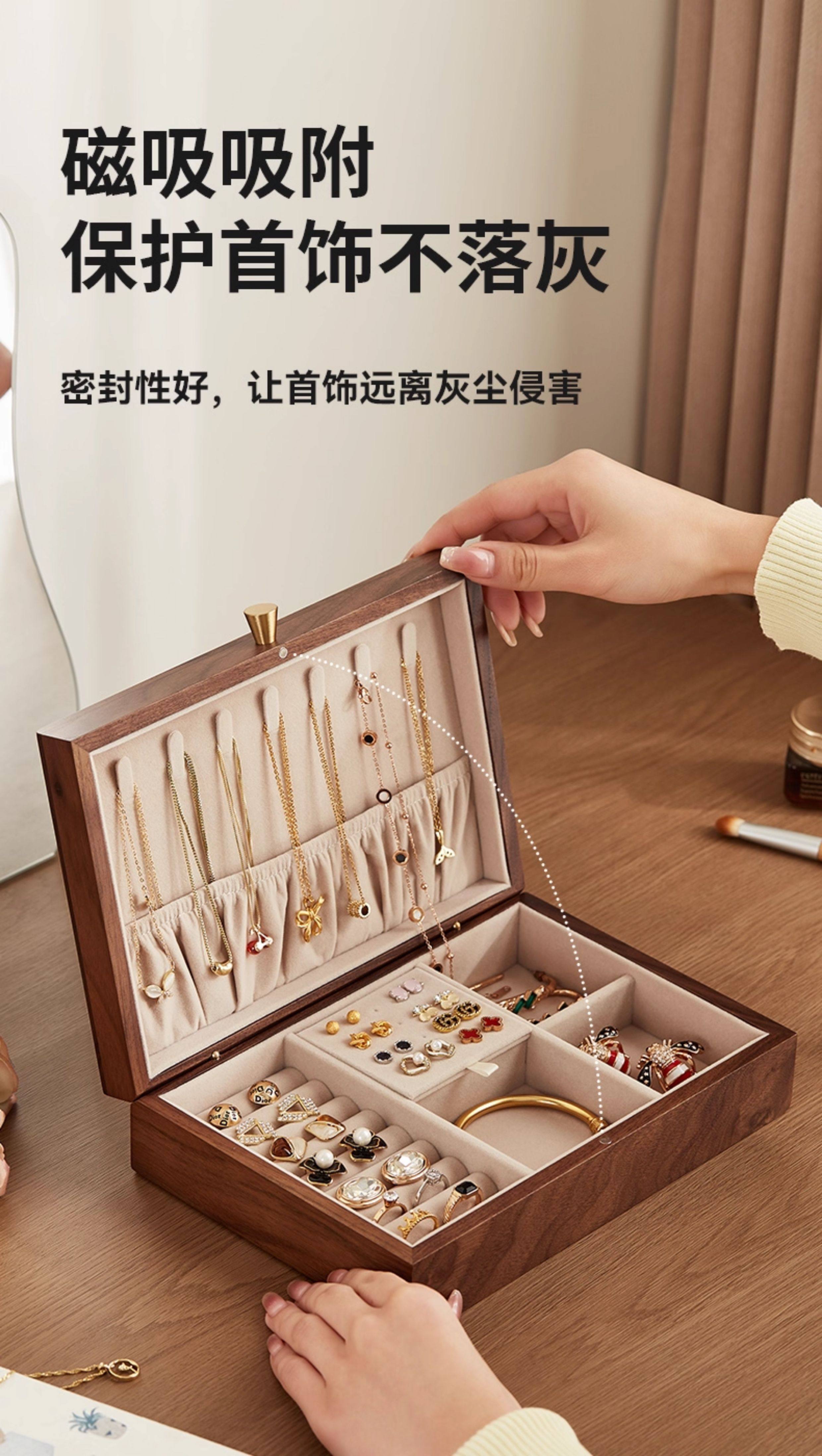 Walnut Solid Wood Jewelry Box, High-End Flip-Top Jewelry Storage Box, Birthday and New Year Gift for Best Friend, Girlfriend, Wife